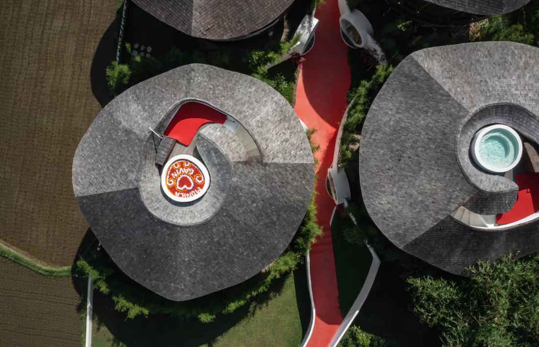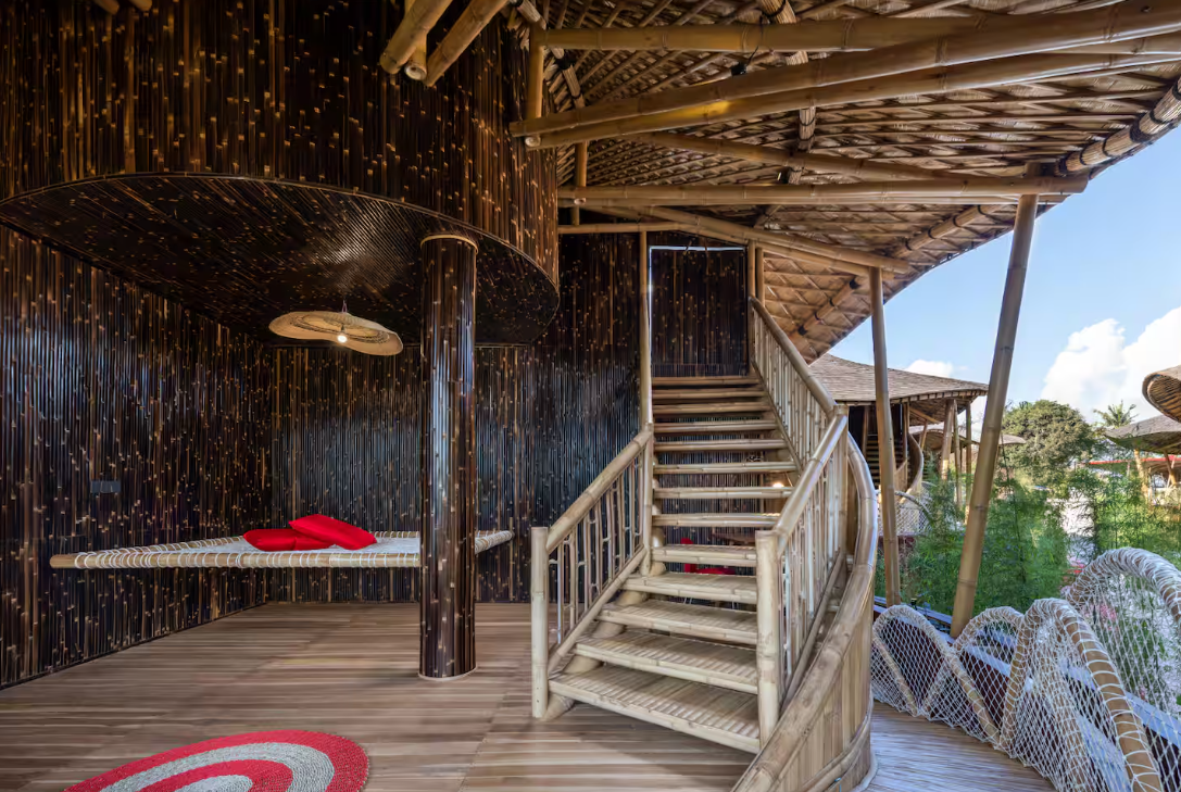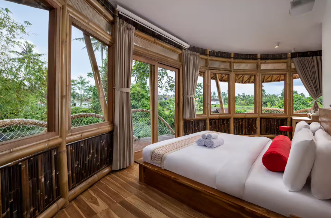 This bamboo boutique hotel consists of 6 beautifully crafted villas, each featuring 2 bedrooms, all with ensuite bathrooms and fully furnished interiors. Designed as a turnkey business, the resort is ready to operate from day one. One of its signature attractions is the Lovers Room series, famous for its distinctive “red room” concept. Built in 2024, this unique bamboo architectural vision emerged after identifying a gap in Bali’s honeymoon market—where couples sought deeper privacy, intimacy, and freedom of expression, yet found few places that offered truly exclusive spaces.