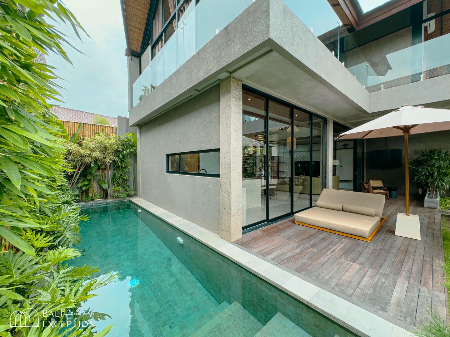 Designed in a tropical eco-style, the villa features a wooden structure with natural finishes, blending traditional Balinese charm with modern comfort. It includes spacious bedrooms, an open-concept living area, and a beautifully designed semi-outdoor bathroom.