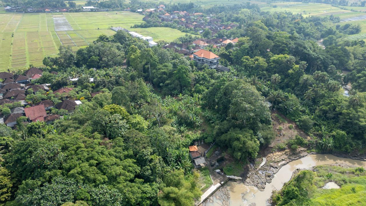 The land offers beautiful panoramic views of rice paddies, tropical greenery, and a gentle river flowing nearby, creating a tranquil and naturally refreshing atmosphere. The area captures the authentic Balinese charm with ocean breezes and vibrant green landscapes all around.