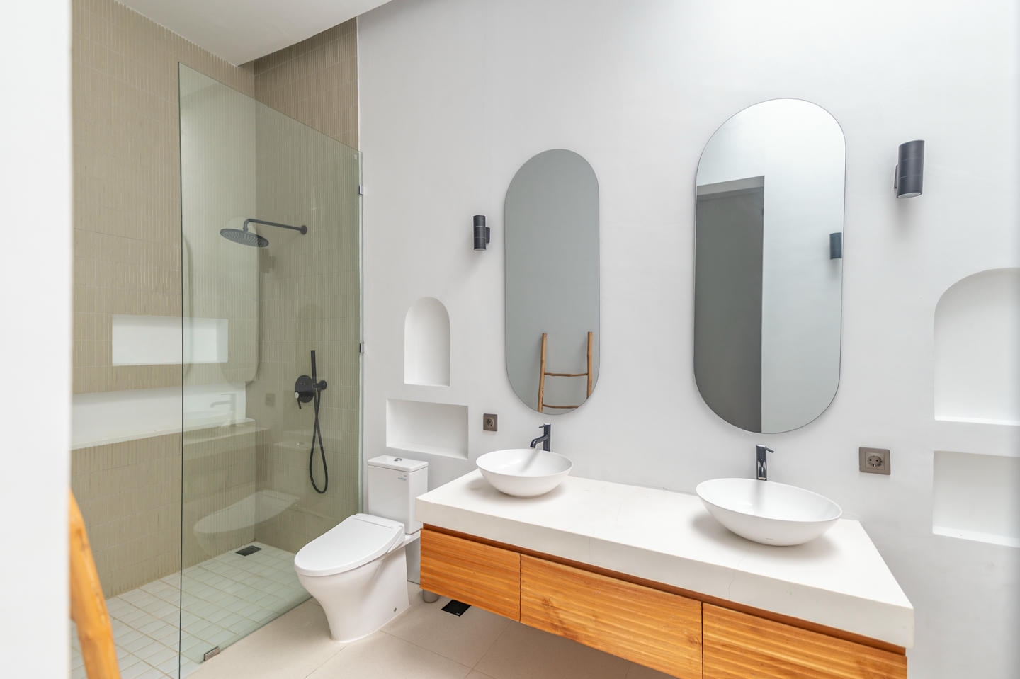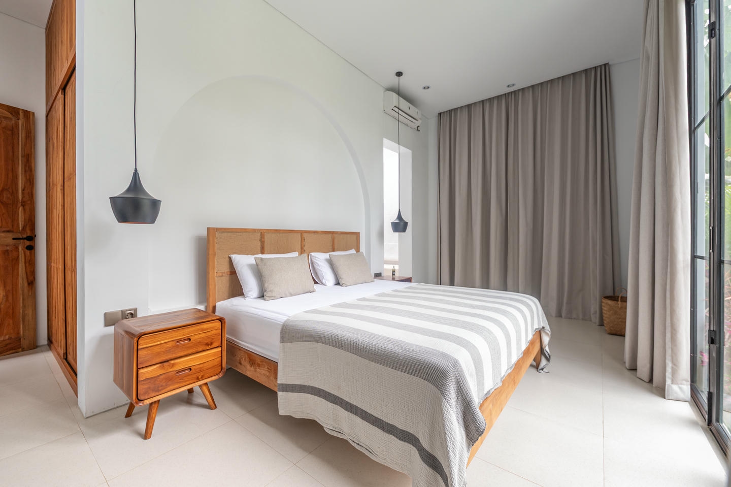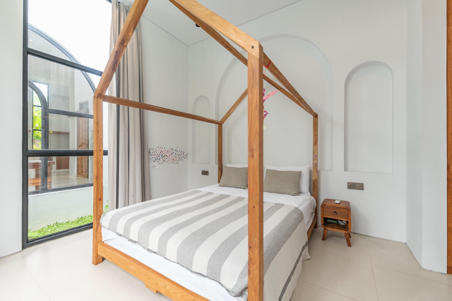 Step outside to your private swimming pool complemented by a mini garden, offering a tranquil tropical retreat.
