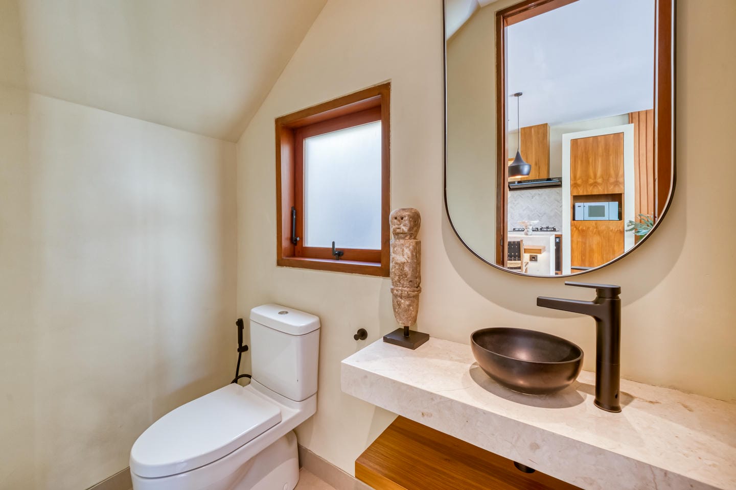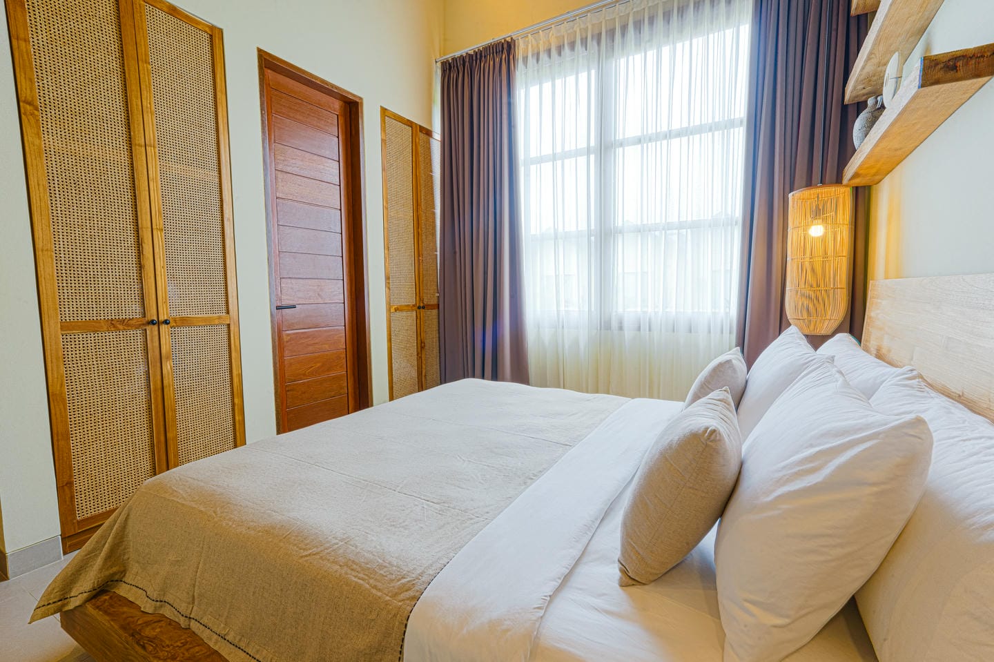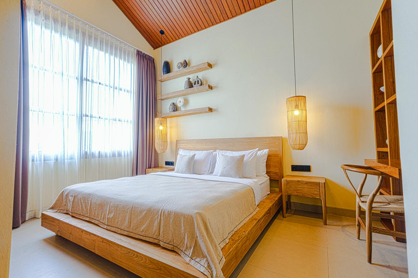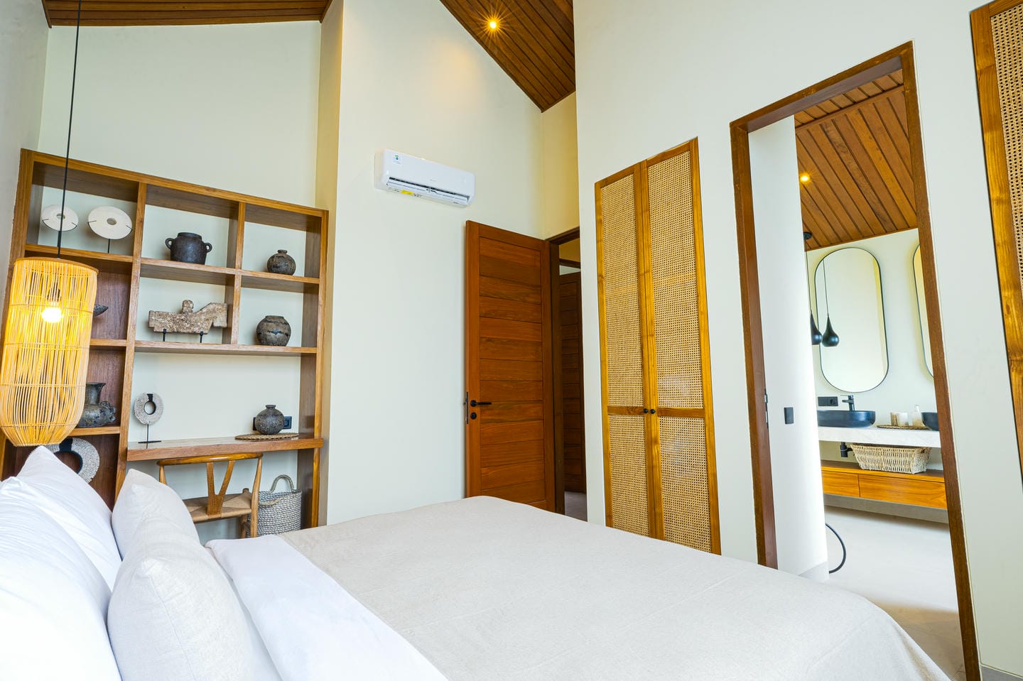 Outside, the villa opens to a private swimming pool surrounded by lush tropical greenery, offering a peaceful and private setting. The seamless indoor-outdoor flow makes it perfect for relaxing, entertaining, or enjoying Bali’s year-round climate.