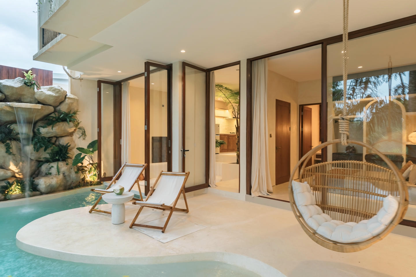 Step outside to your private swimming pool with a comfortable lounge area, creating a perfect outdoor retreat.
