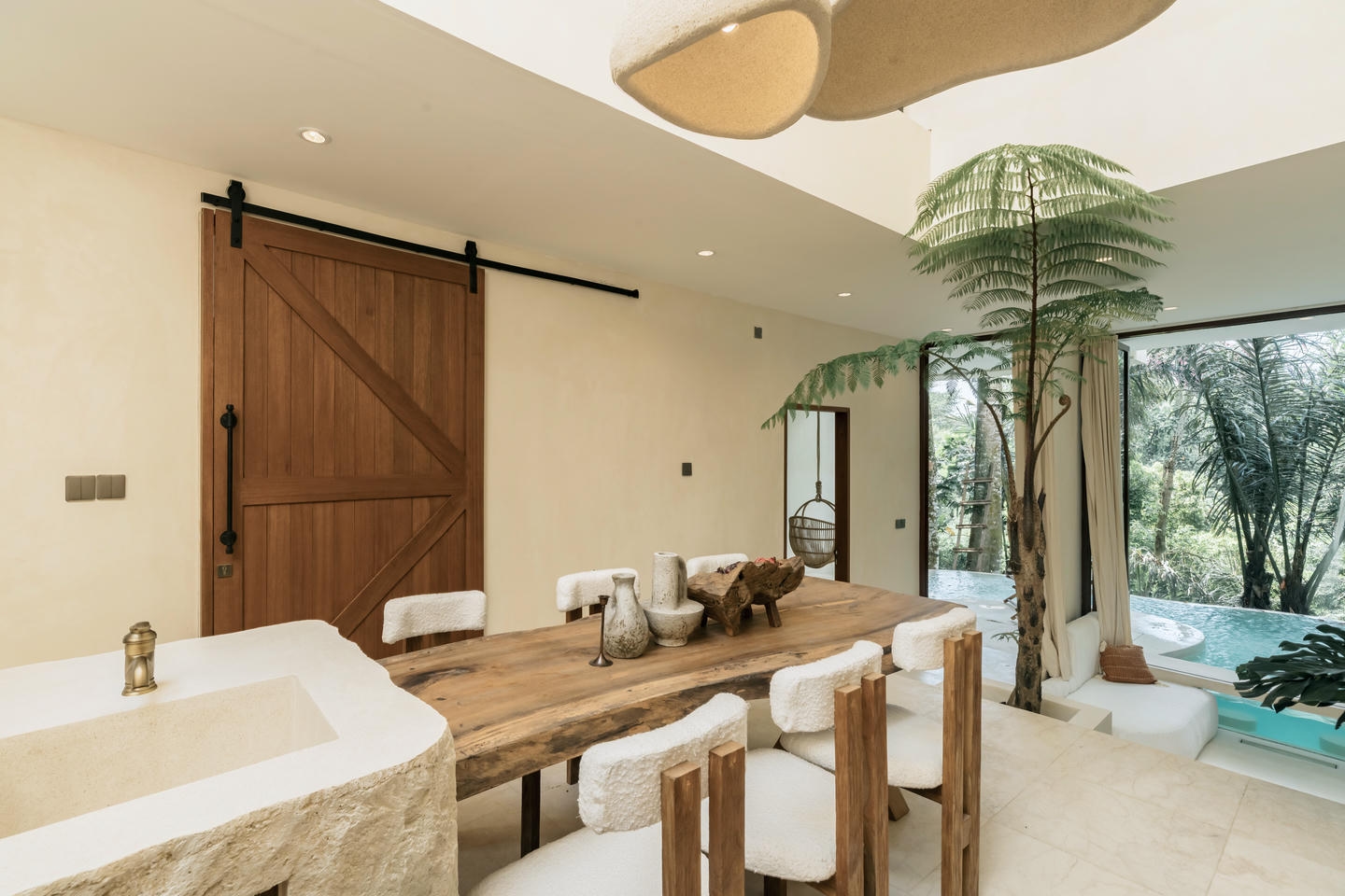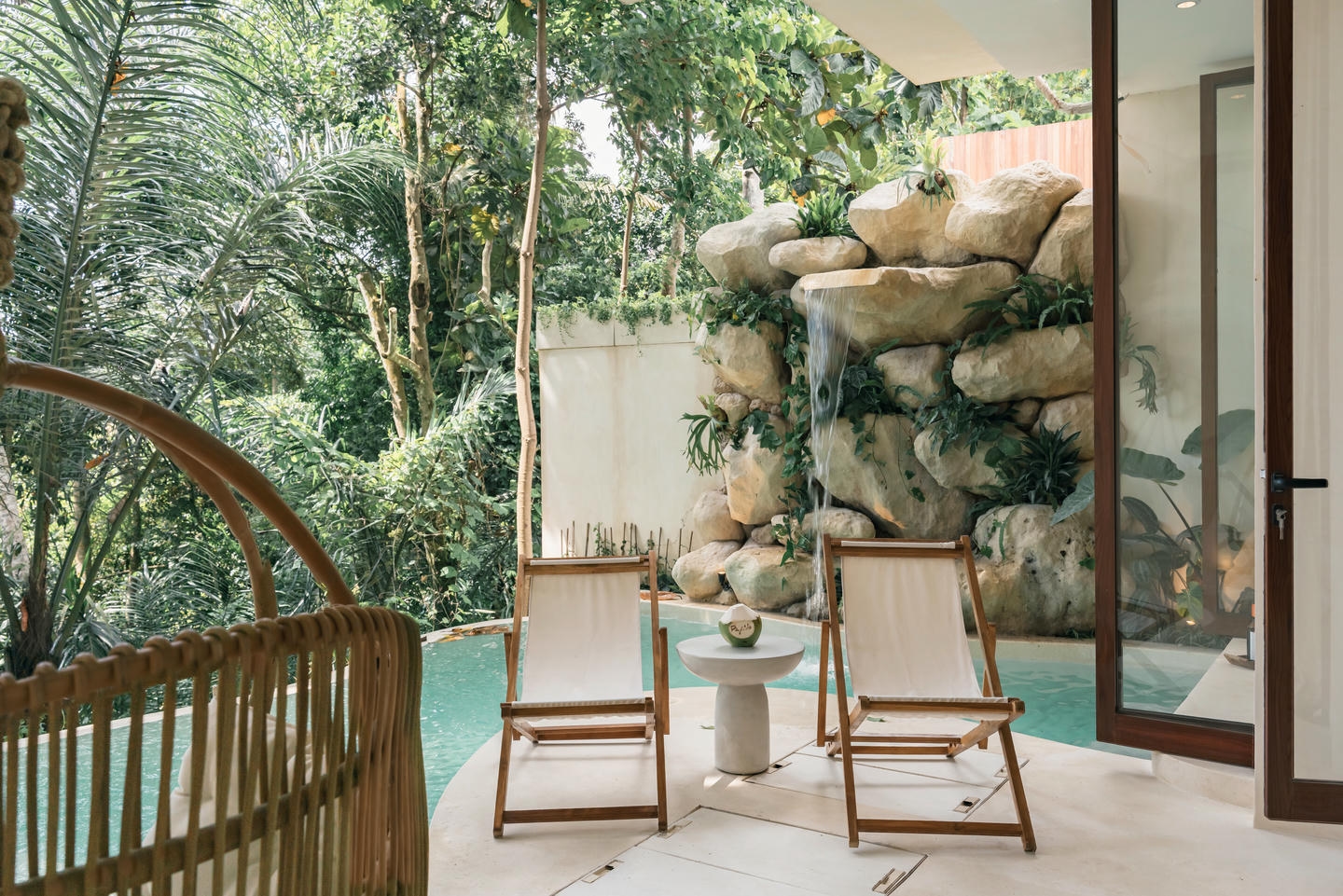 The pool, garden, and lounge area