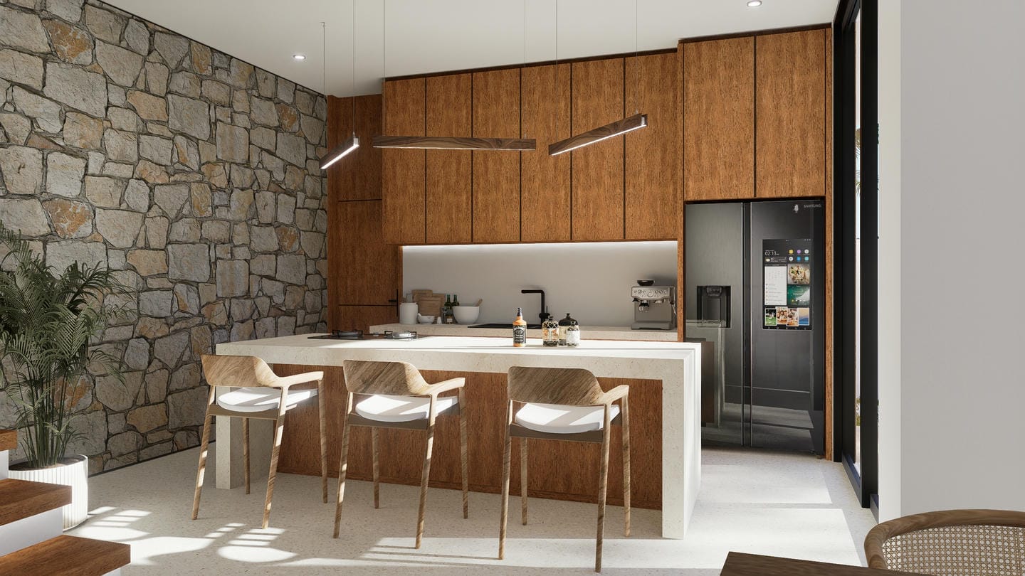 This three-bedroom villa, each with its own ensuite bathroom, comes semi furnished and thoughtfully styled. It features a spacious living room filled with natural light and garden views. The open-plan design connects seamlessly to a fully equipped kitchen and dining area, creating a warm and functional space ideal for gatherings or entertaining. Every detail has been carefully selected to balance comfort with modern aesthetics, offering a true sense of home.