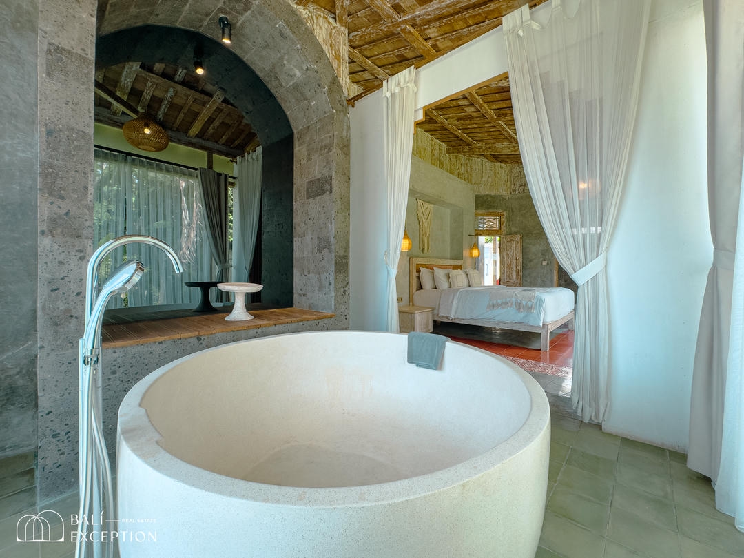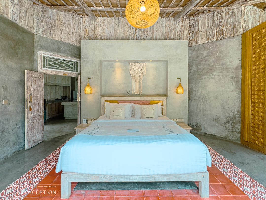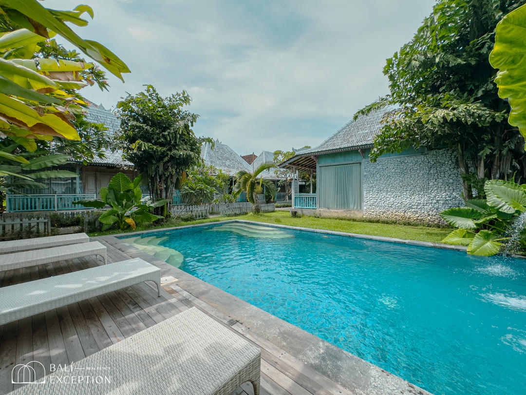 The complex features a total of 12 uniquely designed bedrooms, each villa crafted with its own distinct character and authentic charm. Guests can enjoy the flexibility of both private swimming pools and a shared pool, all complemented by elegant sunbeds and lounging areas, creating a relaxed yet upscale resort ambiance.