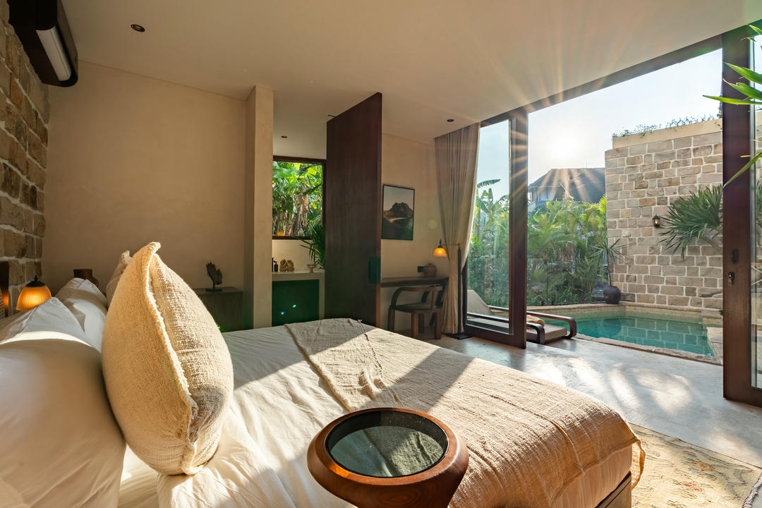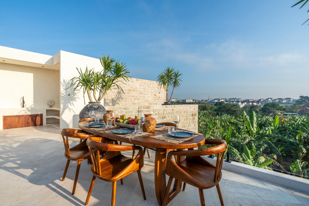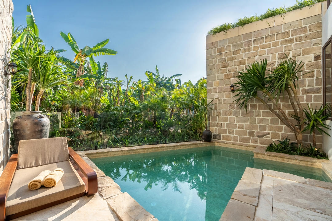 Outside, you’ll find a private pool with sunbeds and a rooftop with a dining table, where you can enjoy Bali’s golden sunsets.