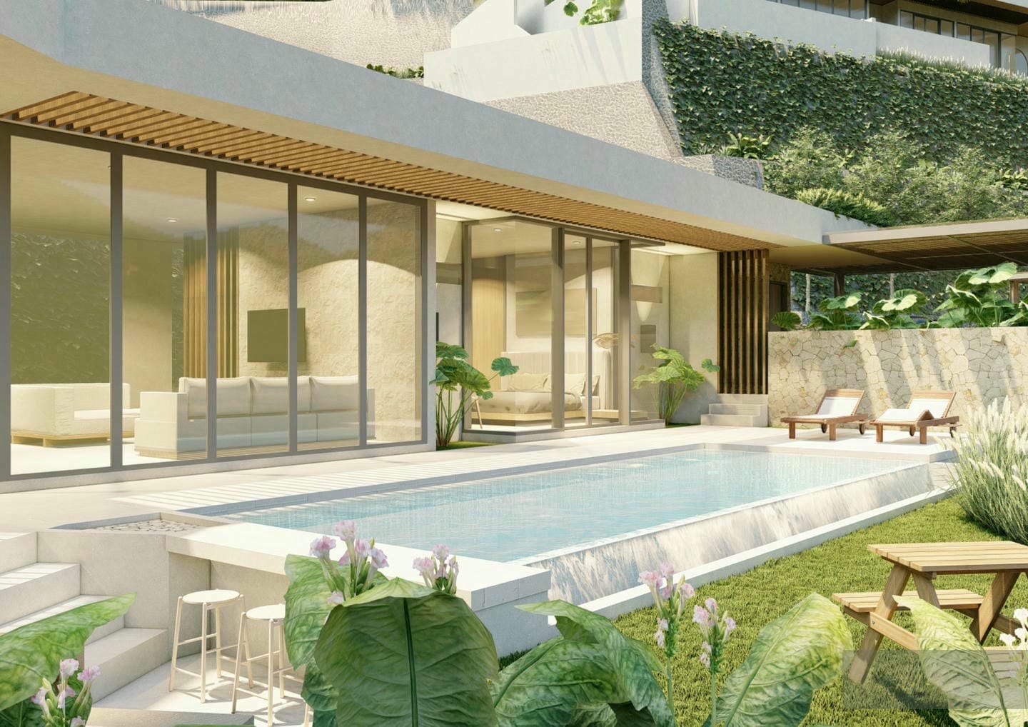 This exclusive development features 8 exceptional villas, thoughtfully crafted with a refined modern-tropical concept that blends natural elements, soft wooden finishes, and sleek minimalist lines. The interiors exude warmth and tranquility through gentle textures and neutral tones, while expansive glass openings invite abundant natural light and a seamless indoor–outdoor flow. Additionally, buyers have the rare option to acquire the land and design a bespoke villa tailored entirely to their vision, creating a truly personal sanctuary in paradise.