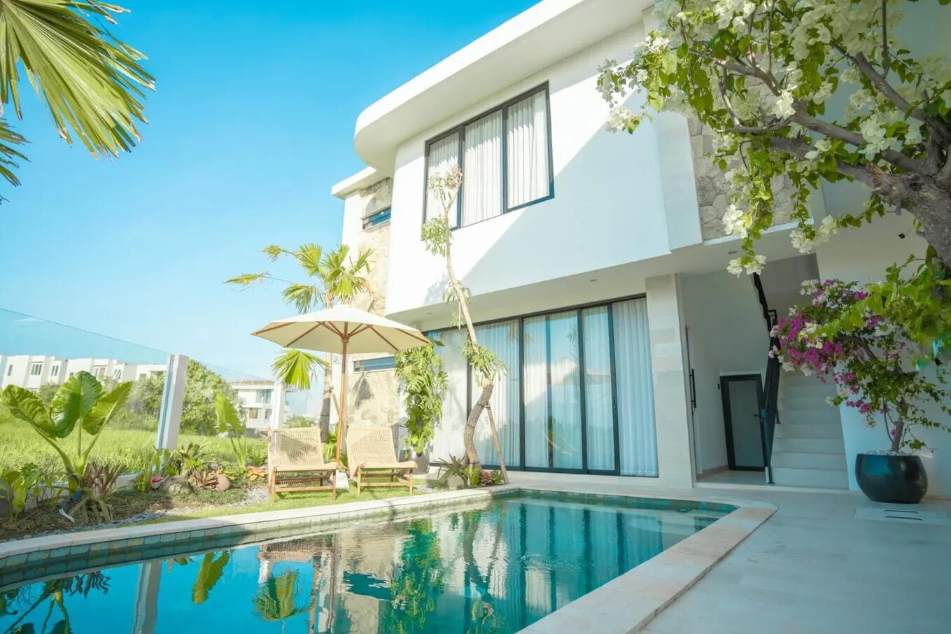 This stunning modern tropical villa is perfectly located in Cemagi, just minutes away from popular cafes, top-rated restaurants, and most importantly, the breathtaking Cemagi Beach—only 4 minutes by motorbike or a 15-minute scenic walk.