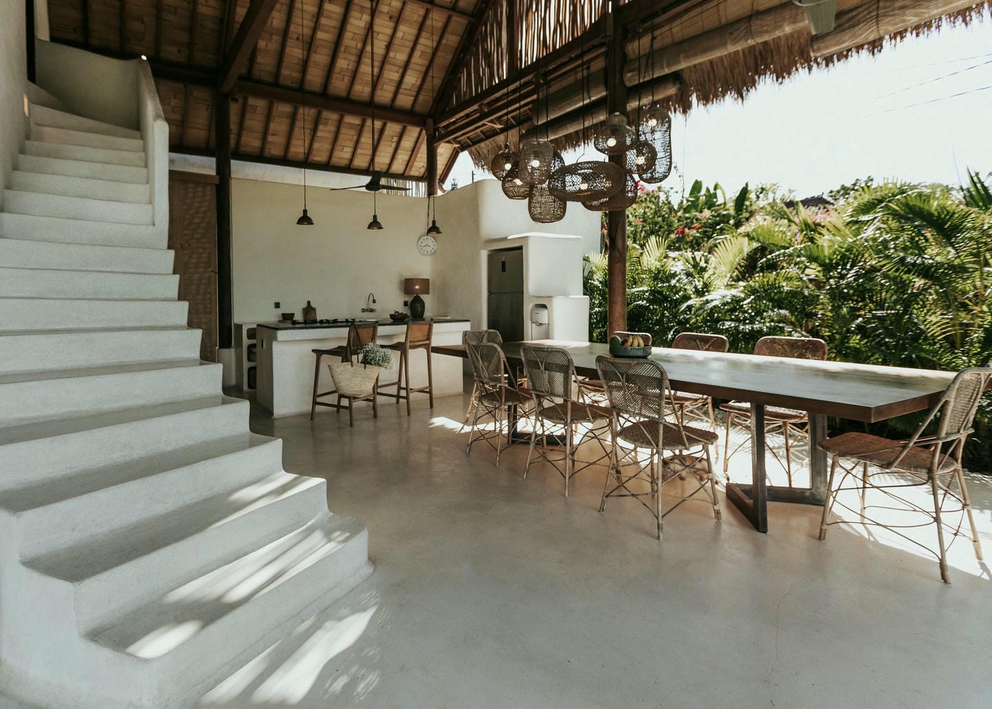 This villa showcases a beautiful tropical design with high ceilings and large openings that allow abundant natural light to create a warm and airy atmosphere. The open-plan living and dining area is seamlessly connected to two well-appointed kitchens, creating a spacious and functional setting that flows naturally to the outdoor space ideal for both daily living and entertaining. Designed for comfort and elegance, the villa comes with 4 bedrooms and 4 bathrooms, each thoughtfully arranged to provide privacy, natural light, and a relaxing tropical ambiance.