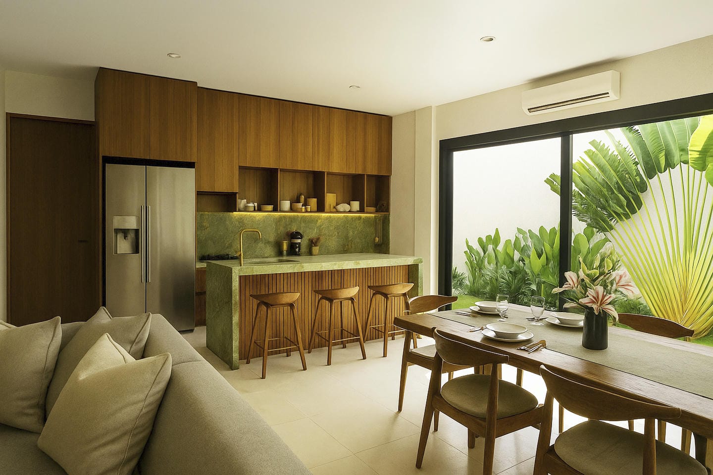This modern minimalist residence in Berawa is perfectly positioned between Canggu and Seminyak, offering effortless access to Bali’s best — from world-class dining and vibrant cafés to upscale fitness and wellness retreats, as well as the coastal charm of Berawa Beach.