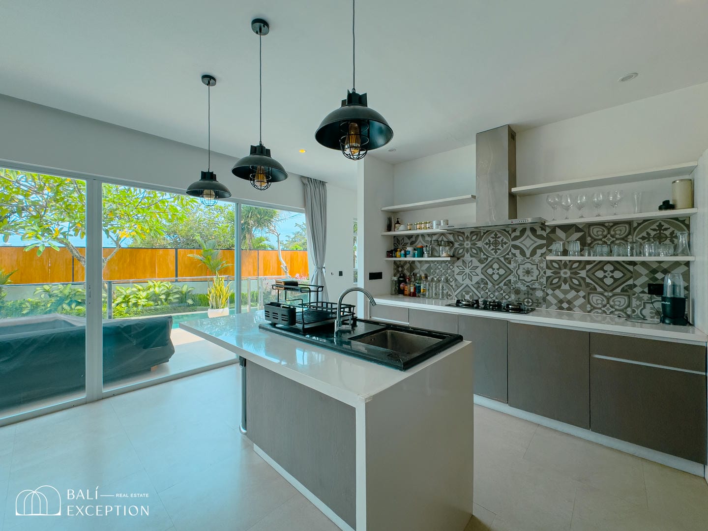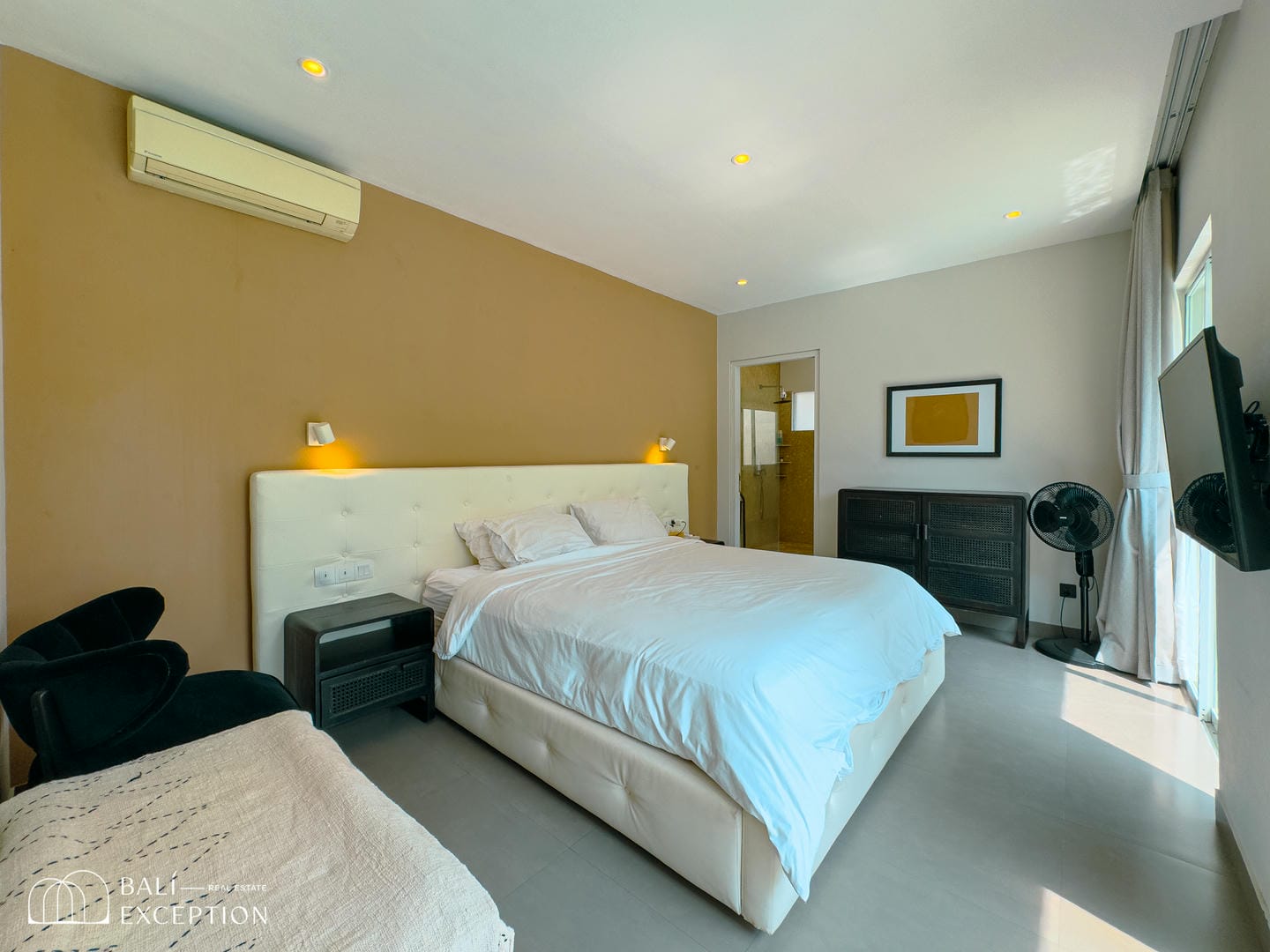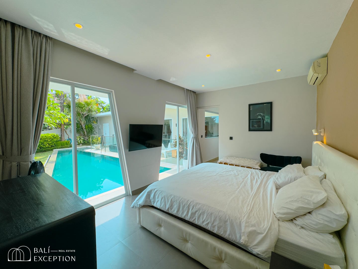 Step into the outdoor area and enjoy a large swimming pool and spacious terrace, surrounded by lush greenery that creates a relaxing and private atmosphere. This outdoor space is perfect for lounging, entertaining, or simply unwinding in a peaceful tropical setting.