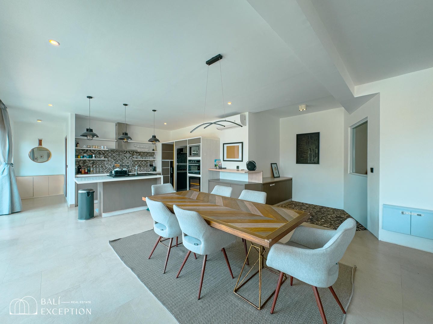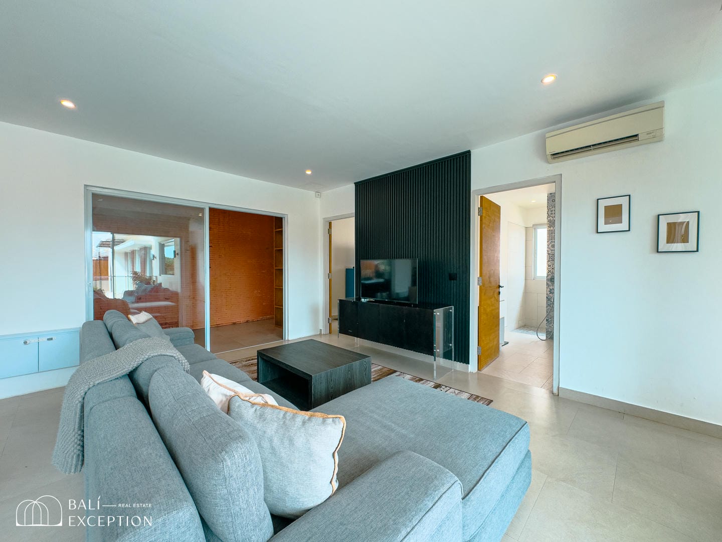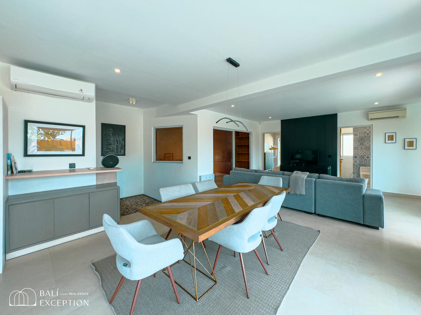 This villa offers a bright open-plan interior that seamlessly connects the living, dining, and kitchen areas into one spacious and comfortable living space. Large sliding glass doors fill the home with natural light and provide direct access to the outdoor area. The villa features one main bedroom, a children’s bedroom, two bathrooms, and a dedicated kids’ play area, making it an ideal home for families. Modern furnishings and clean, neutral tones create a stylish and welcoming atmosphere throughout.