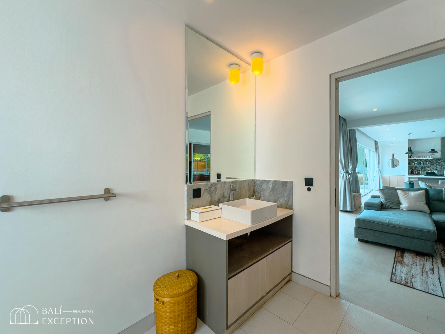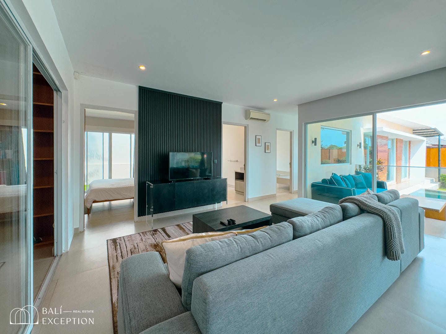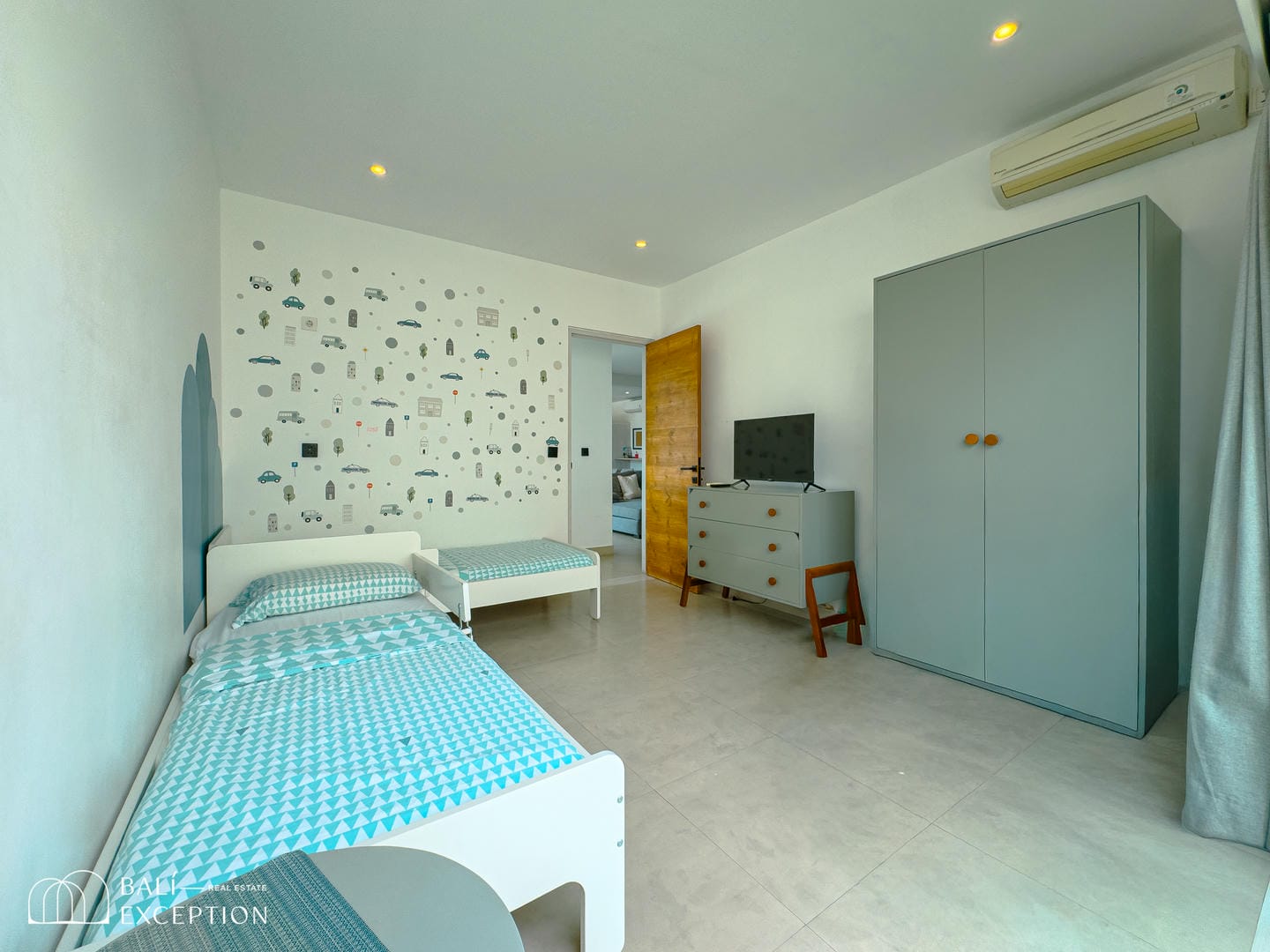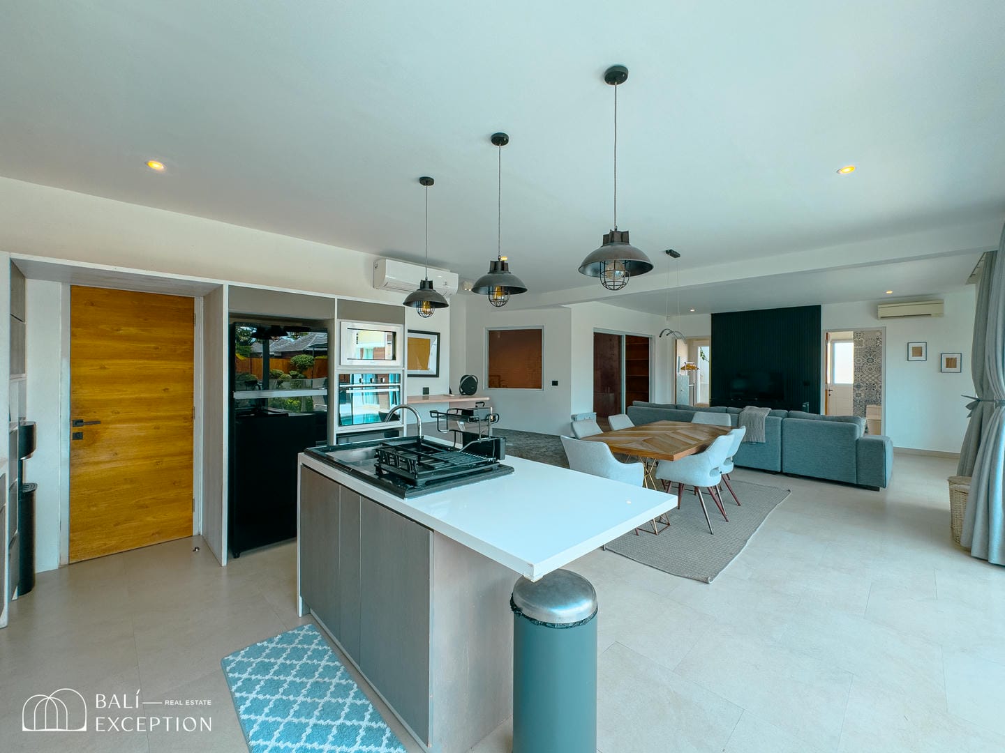 This villa offers a bright open-plan interior that seamlessly connects the living, dining, and kitchen areas into one spacious and comfortable living space. Large sliding glass doors fill the home with natural light and provide direct access to the outdoor area. The villa features one main bedroom, a children’s bedroom, two bathrooms, and a dedicated kids’ play area, making it an ideal home for families. Modern furnishings and clean, neutral tones create a stylish and welcoming atmosphere throughout.