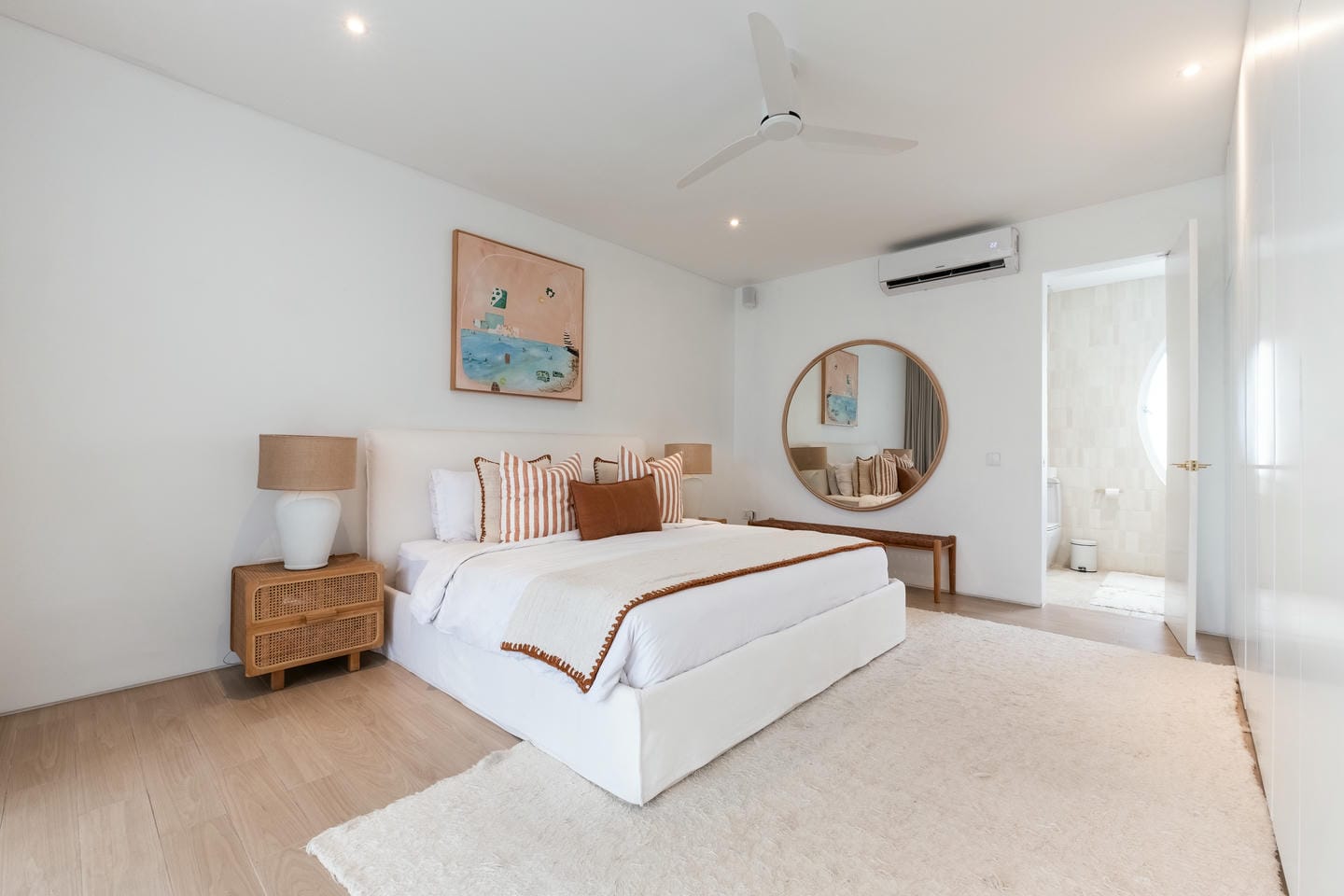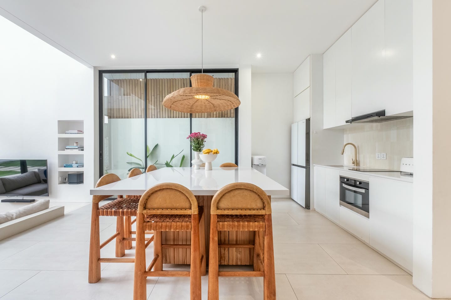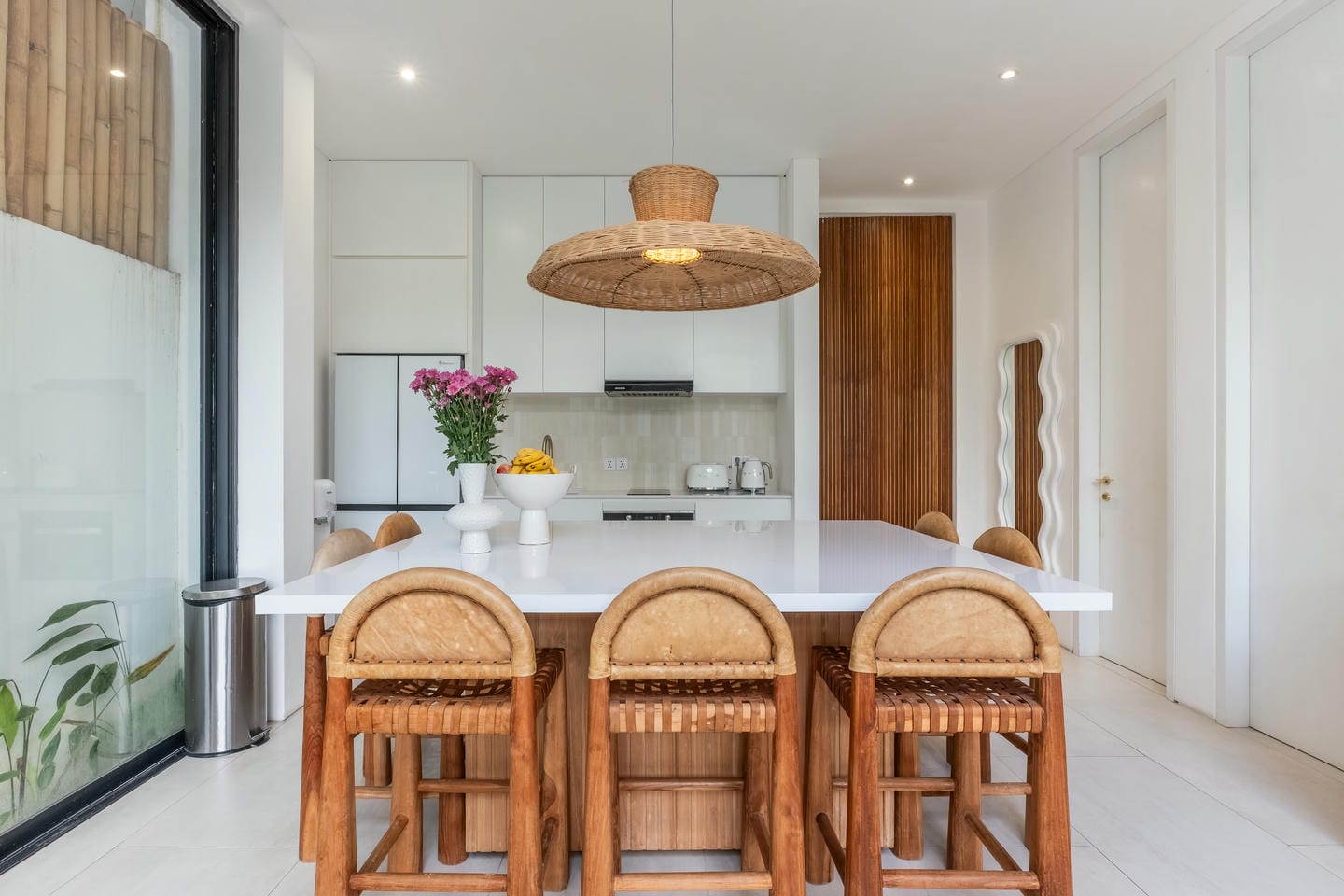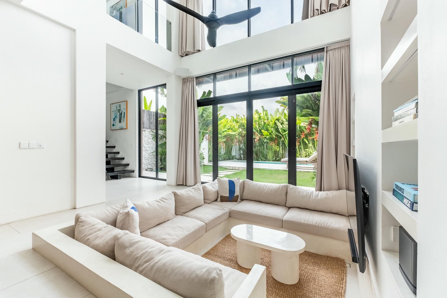 The villa is thoughtfully designed across three levels, featuring a modern tropical style that blends comfort with a relaxed island atmosphere. The interior includes three spacious bedrooms, creating a cozy and functional living space that is perfect for both living and entertaining. For added comfort and ambiance, the villa is equipped with Sonos speakers throughout, allowing you to enjoy high-quality sound in every area of the home.