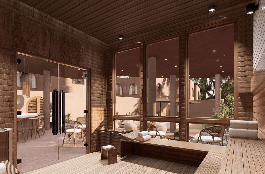 Outside, enjoy your own private pool with a comfortable lounge area. The resort also features dedicated wellness amenities, including a wellness area, pool bar, pool deck, and a dry sauna — perfect for relaxation and rejuvenation.