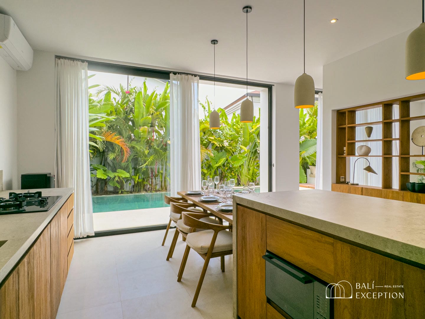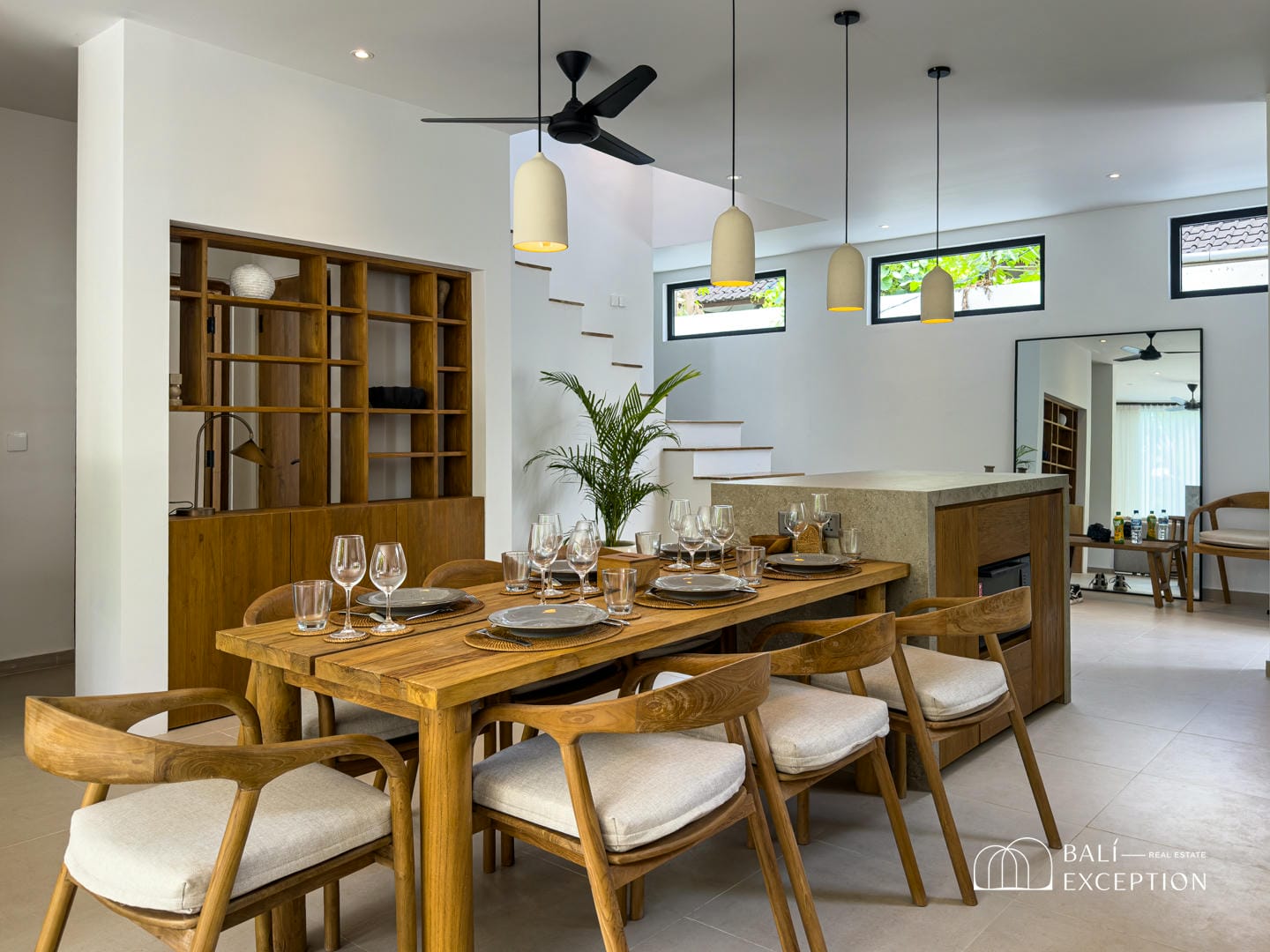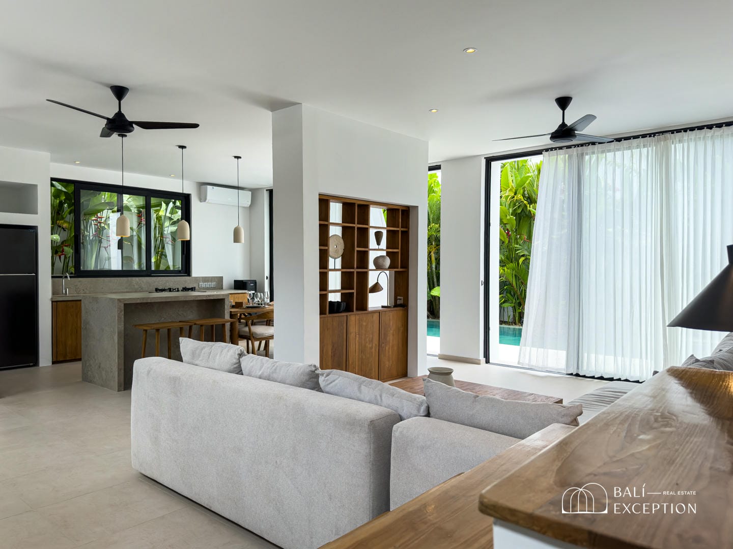 Located in the strategic and upcoming location of Babakan, a 10 minutes drive to the Beach, the area is renowned for popular cafes. It also offers easy access to trendy boutiques and world-class beach clubs, making it a perfect blend of relaxation and lifestyle. This stunning 3-bedroom villa epitomizes a modern and tropical design. Each spacious bedroom is complemented by its own ensuite bathroom, with an additional guest bathroom for added convenience. The villa showcases a bright, airy design accentuated by elegant wooden furnishings and carefully curated décor. The master bedroom opens to a private balcony, offering a serene retreat for relaxation. The open-plan layout includes a fully furnished dining area and a fully equipped kitchen, thoughtfully designed for effortless entertaining. The living space flows seamlessly outdoors, where a private swimming pool with a lounge bed invites you to soak up the sun or relax in tranquil privacy. With ample parking and a location in Canggu’s vibrant community, this property is an outstanding investment opportunity as well as an ideal property to live in !