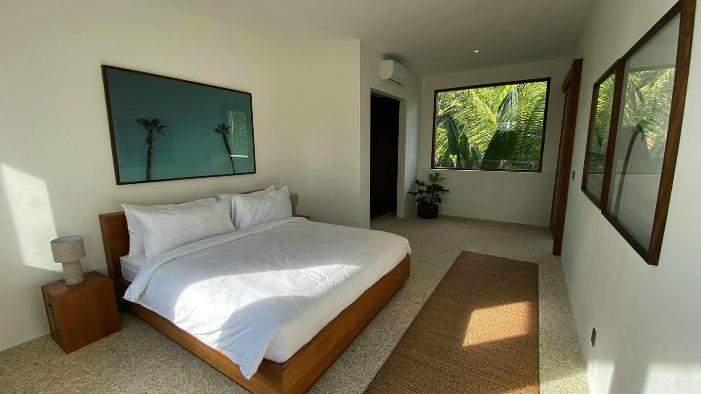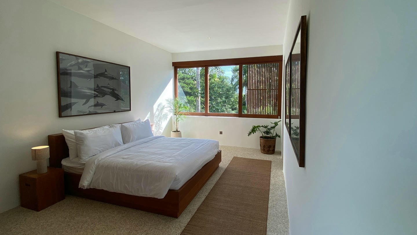 Designed in a refined modern tropical style and set on 933 sqm of land, the villa offers five to six spacious bedrooms, each with its own ensuite bathroom, as well as a guest bathroom. Fully furnished and thoughtfully appointed, the interiors combine generous proportions, natural materials, and abundant natural light. The balcony enhances the connection to the surrounding greenery, while the layout provides both comfort and flexibility for family living or entertaining. The property features two additional rooms suitable for a media room, or guest quarters.