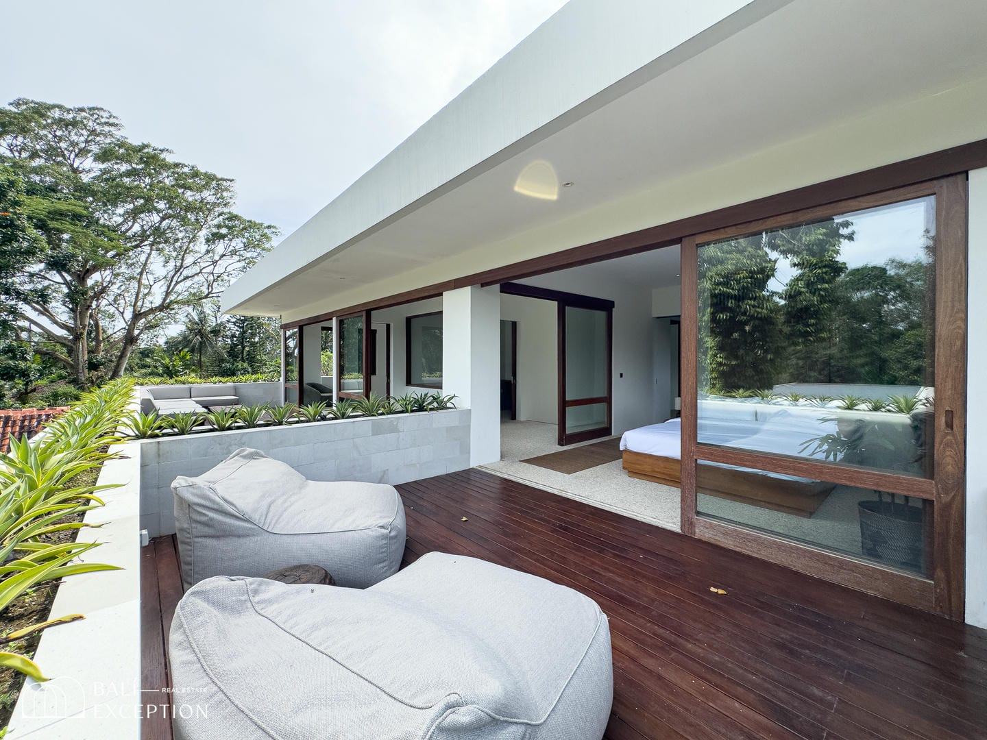 The outdoor space is equally impressive, featuring a 40 sqm swimming pool overlooking a calm garden, jungle surroundings, and tranquil river views.