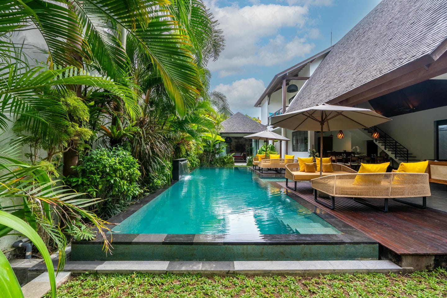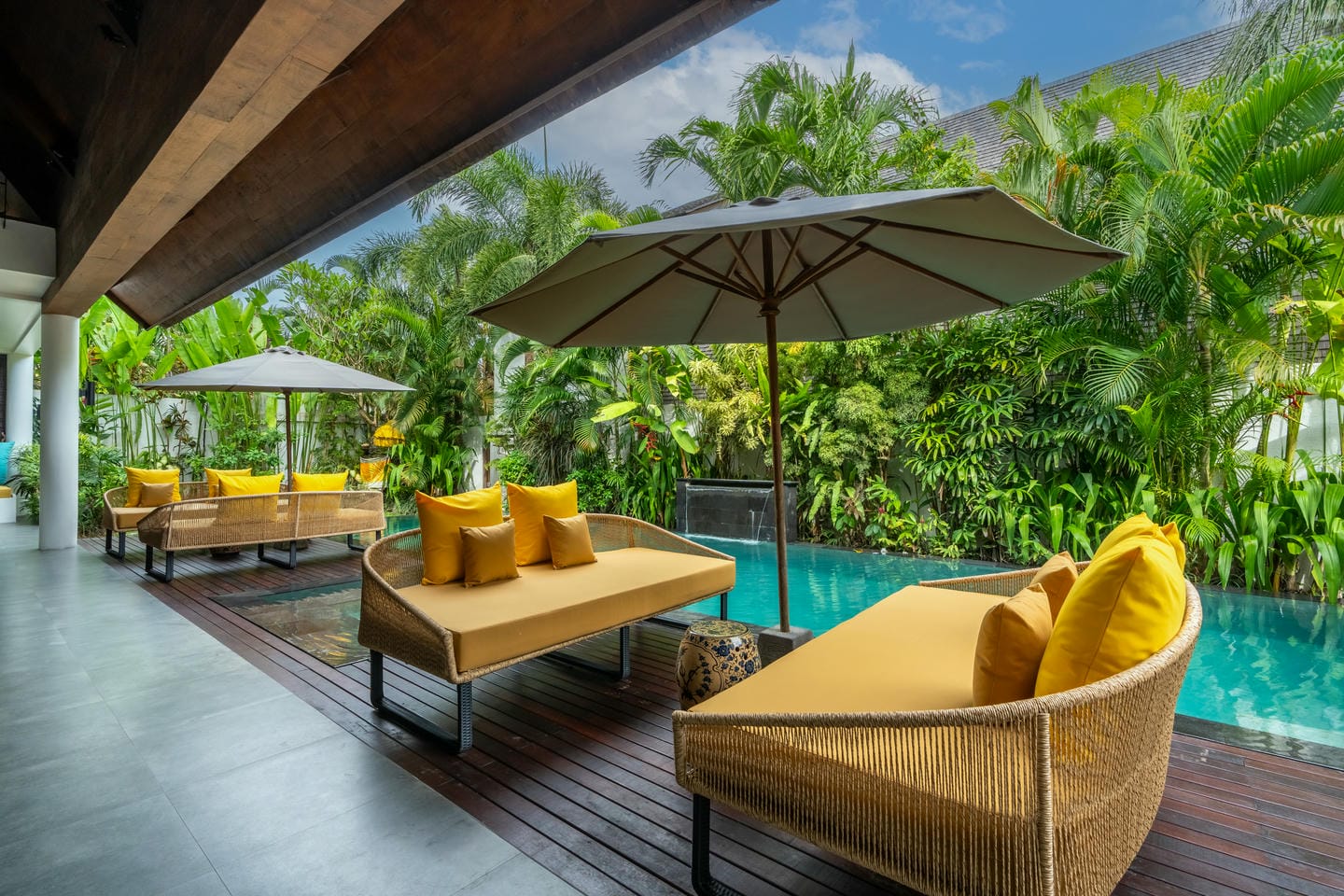A 48 sqm swimming pool serves as the villa’s centerpiece, complemented by comfortable lounge sofas that create the perfect spot for relaxing under the Bali sun.
