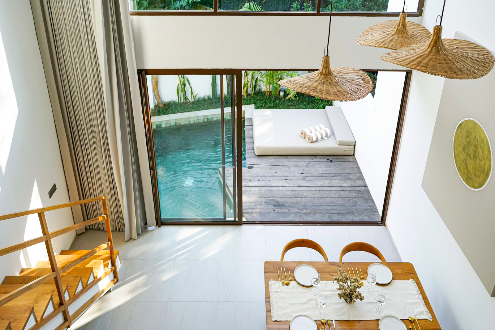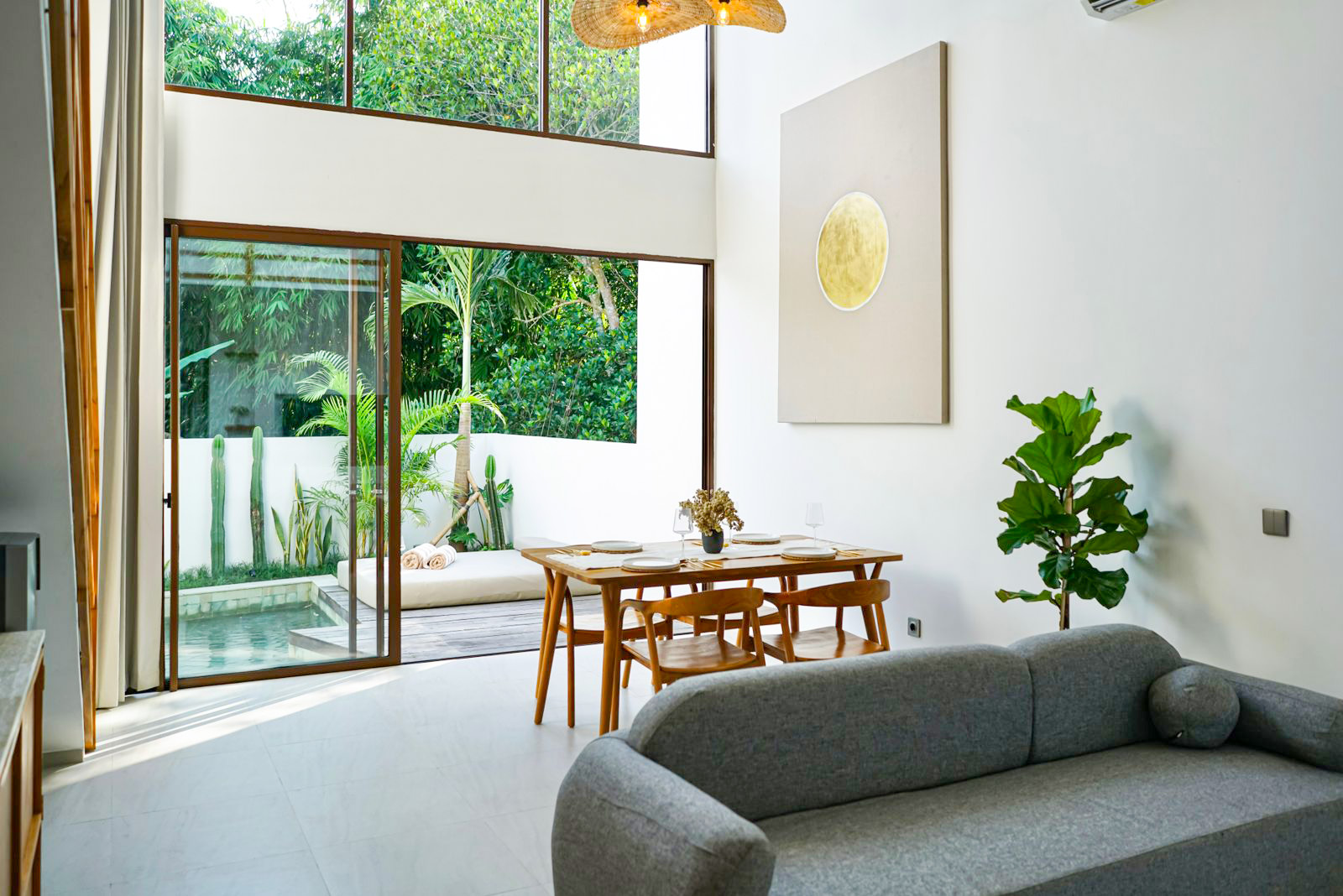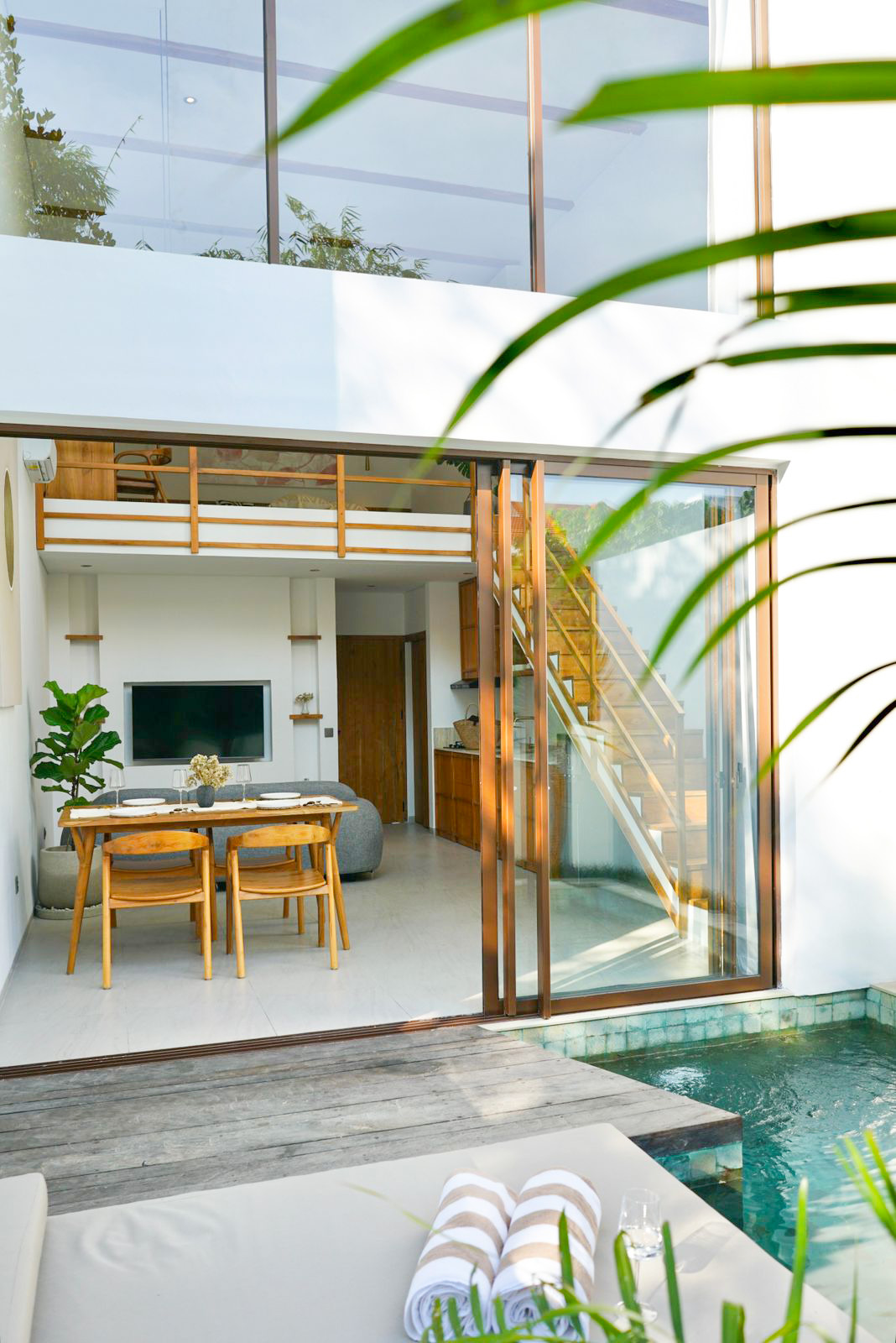Outside, enjoy your private pool with a relaxing lounge area, perfect for unwinding in the tropical setting.