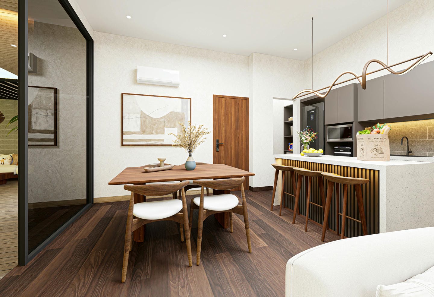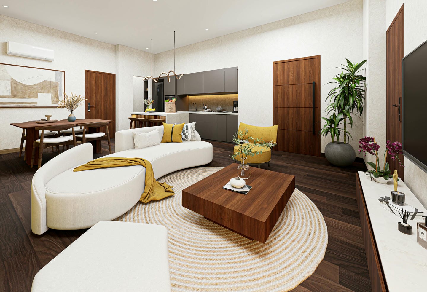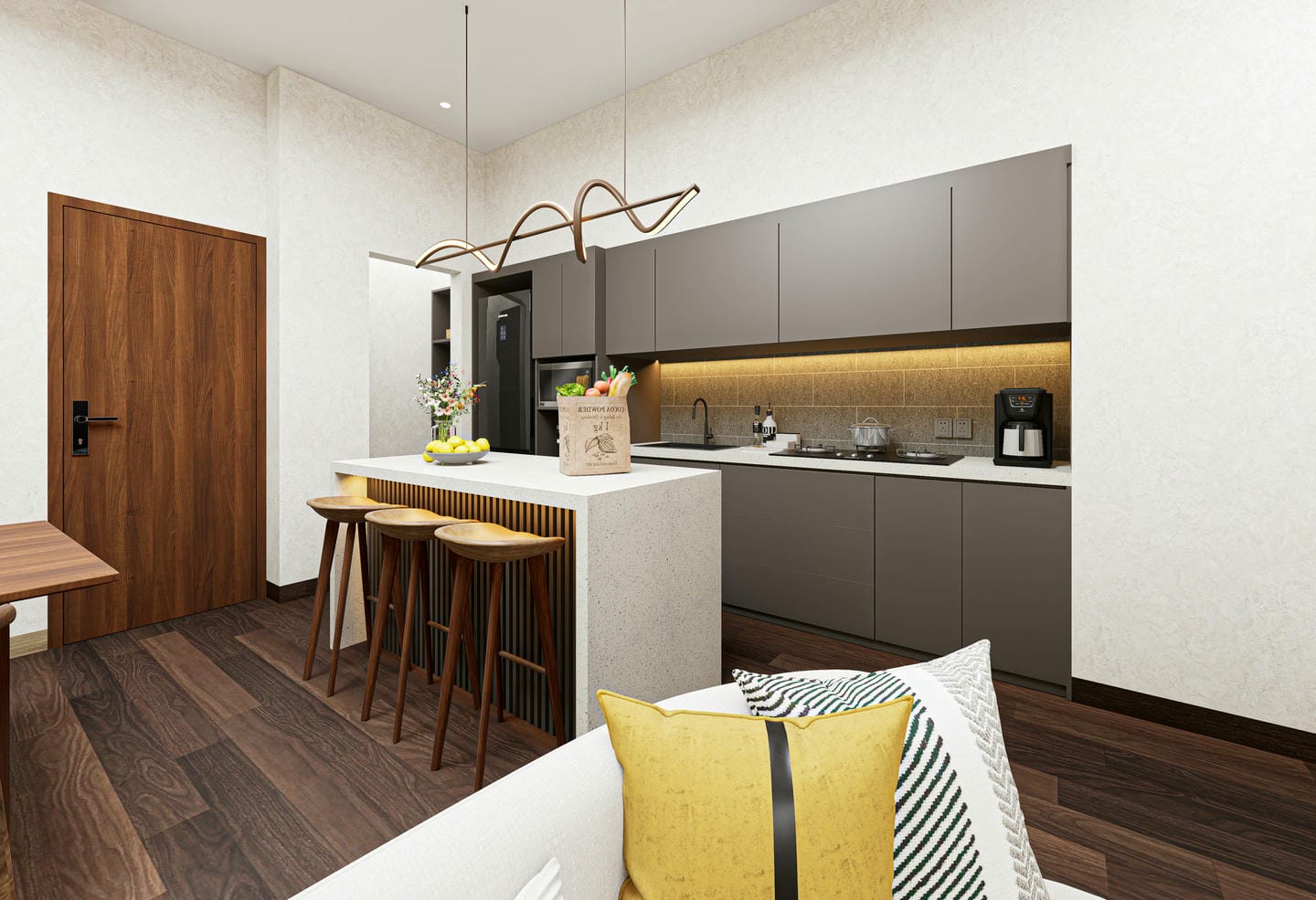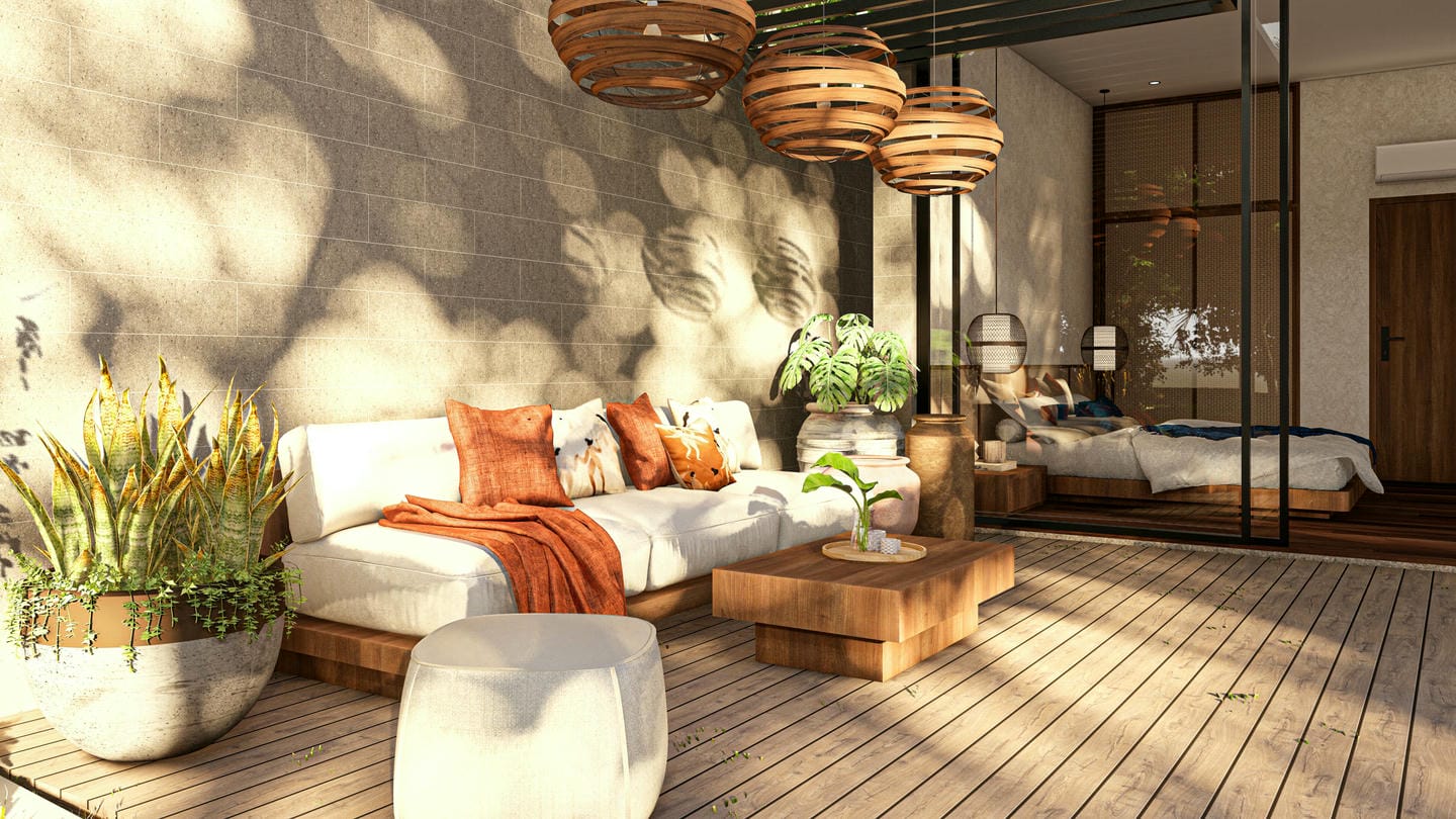 Designed semi-furnished, the villa offers two spacious bedrooms with private ensuite bathrooms and an extra guest bathroom. Its open-plan layout features large windows that bring in natural light and connect indoor and outdoor spaces. At the center of the home is a cozy living area, a modern fully equipped kitchen, and a comfortable dining area.