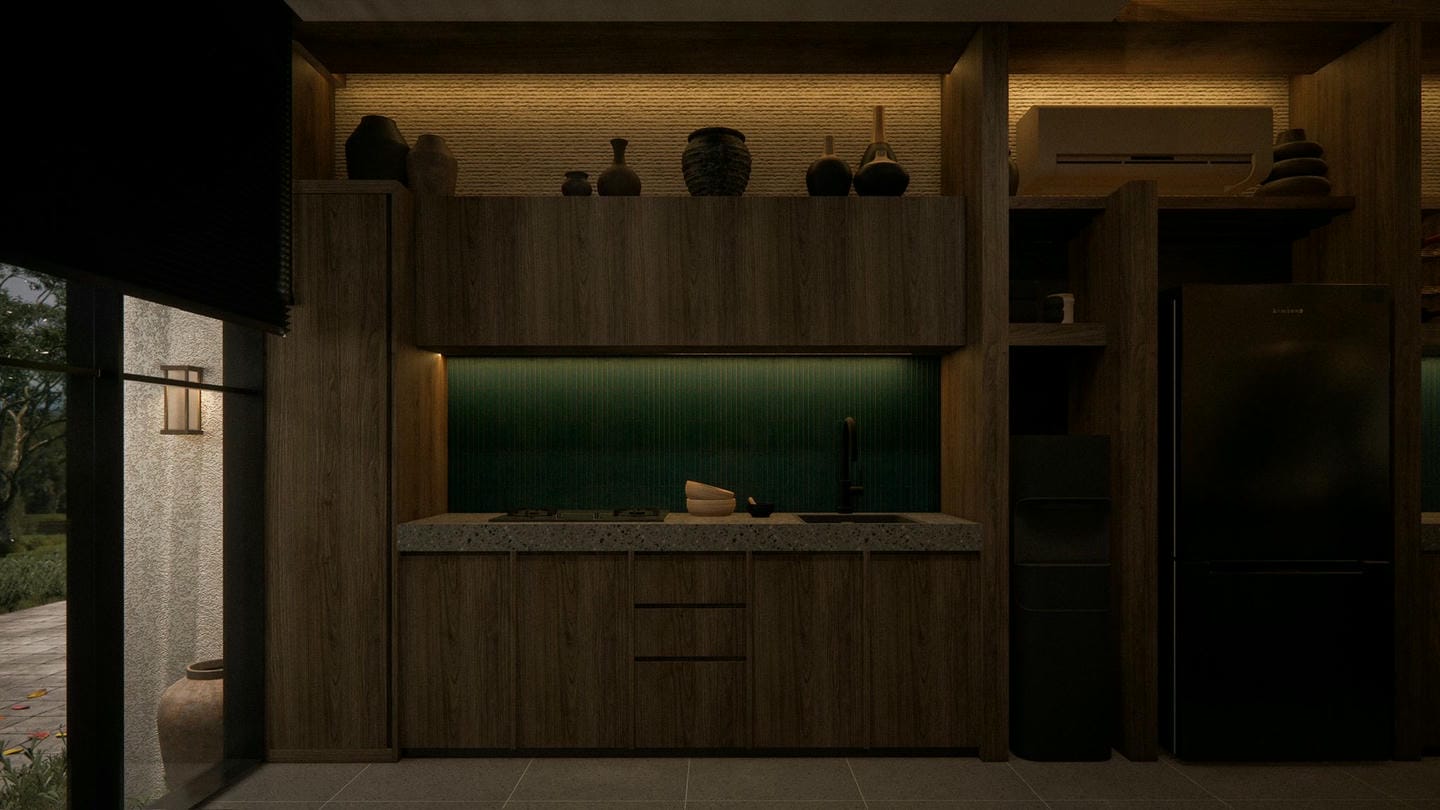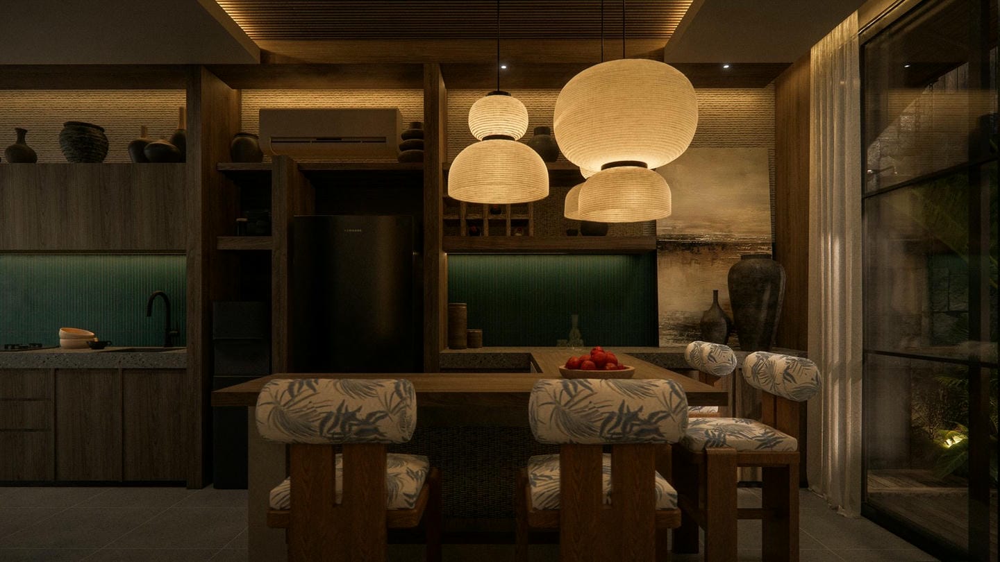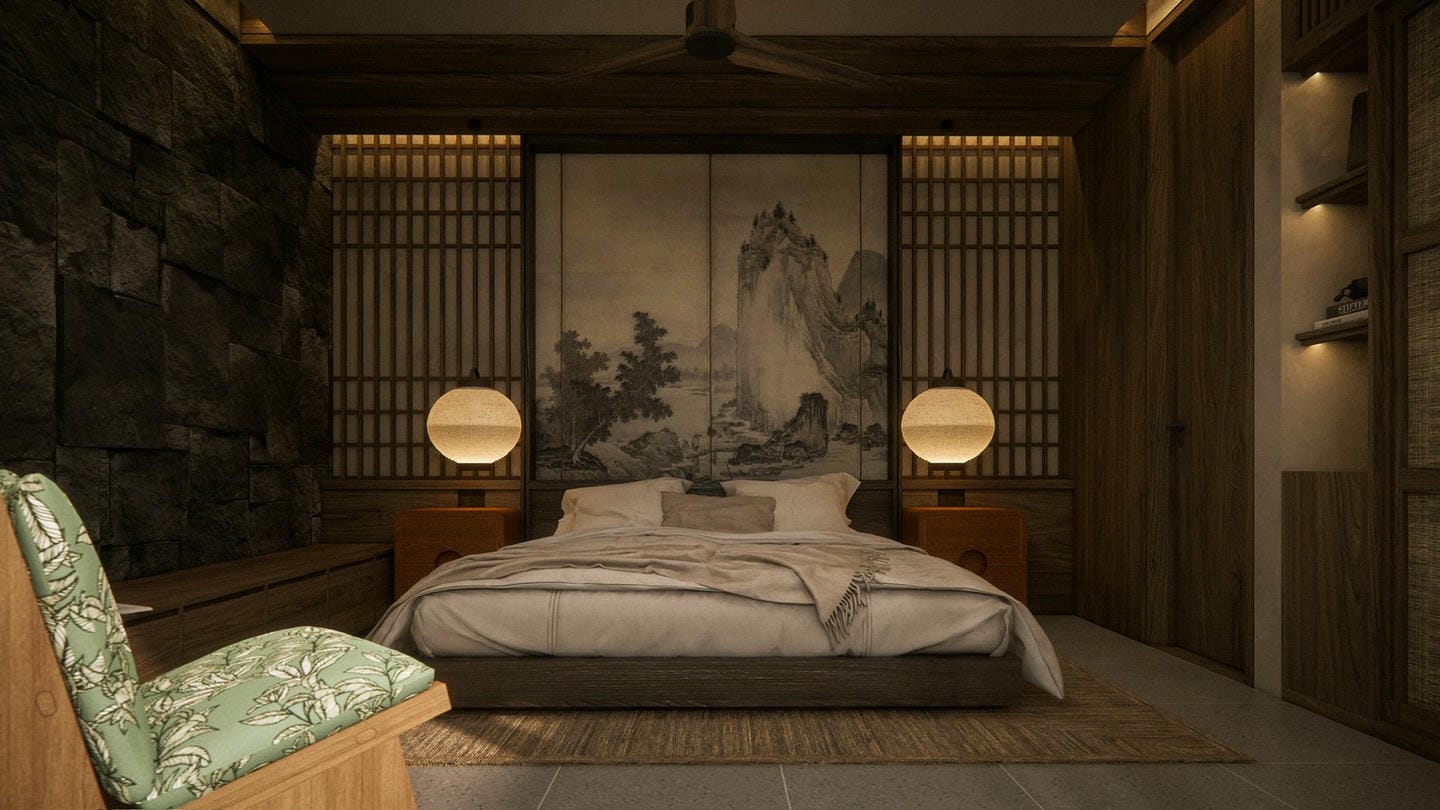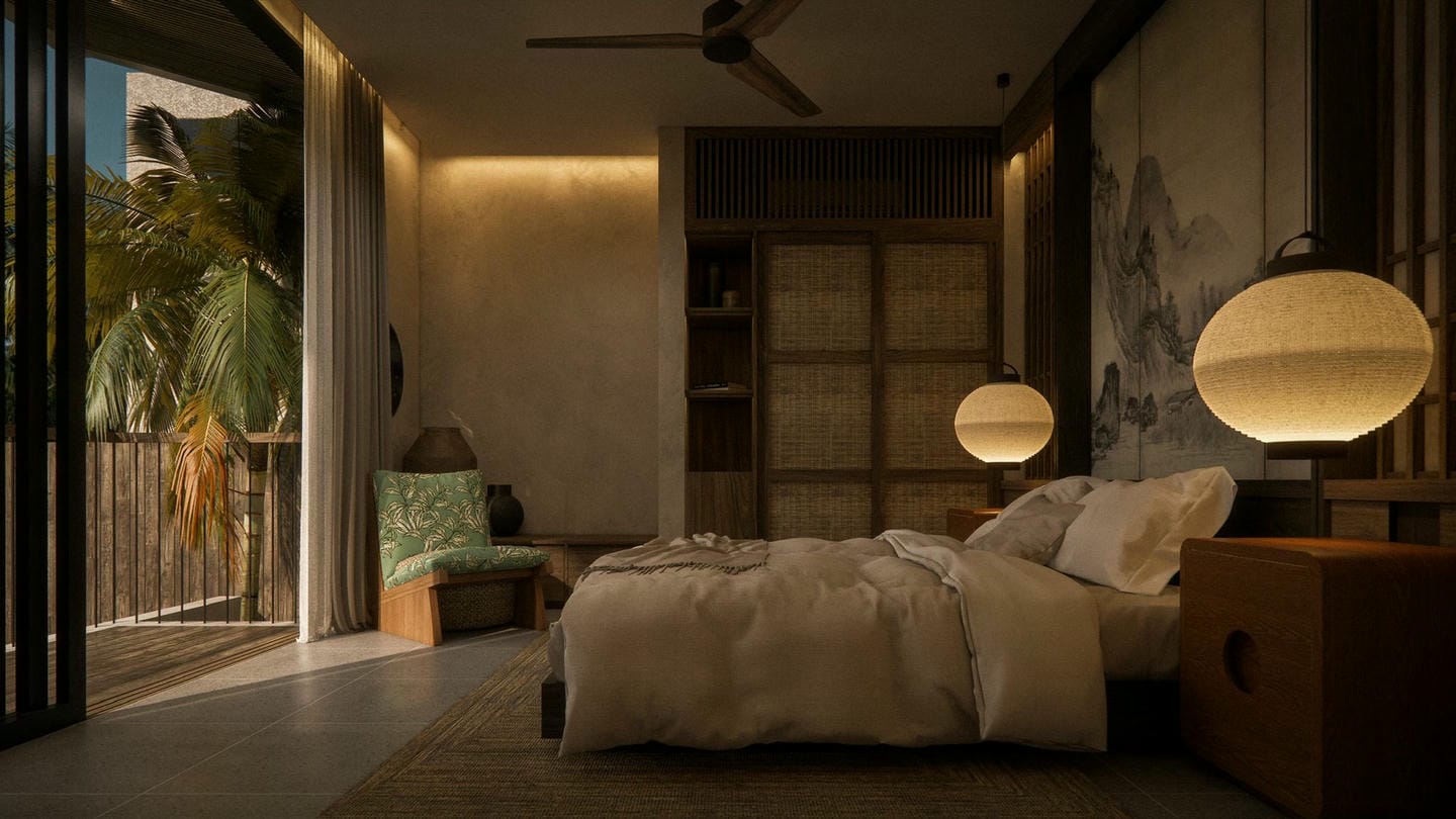 Welcoming you at the entrance is a beautiful Japandi statue. This Japandi-style home features 2 bedrooms with ensuite bathrooms, a powder room, and a bright, open living area with high ceiling windows that let in natural light all day long. The space is fully furnished with tasteful, minimalist décor and warm natural tones, blending Japanese simplicity with Scandinavian functionality. The kitchen is fully equipped and ready for you to move in.
