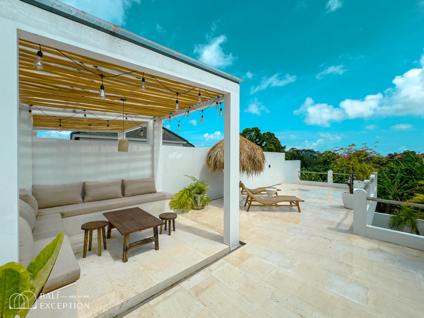 Outdoors, the property offers a private swimming pool designed for relaxation and enjoyment under the Bali sun. A rooftop area adds an additional highlight, providing the perfect space to unwind, entertain guests, or enjoy sunset views.