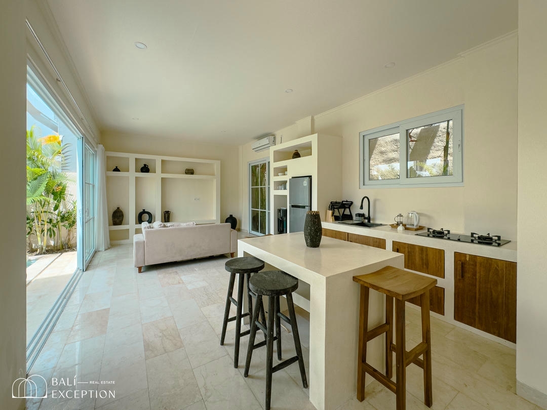 Upon entering the villa, guests are greeted by a welcoming swimming pool and a cozy sheltered space. Additionally, there is a relaxing area adjacent to the pool, allowing guests to unwind while enjoying a book with a view of the pool. As you step inside the villa, you’ll discover a beautifully appointed living room, kitchen, and dining area, providing a comfortable and inviting space for relaxation and enjoyment.
