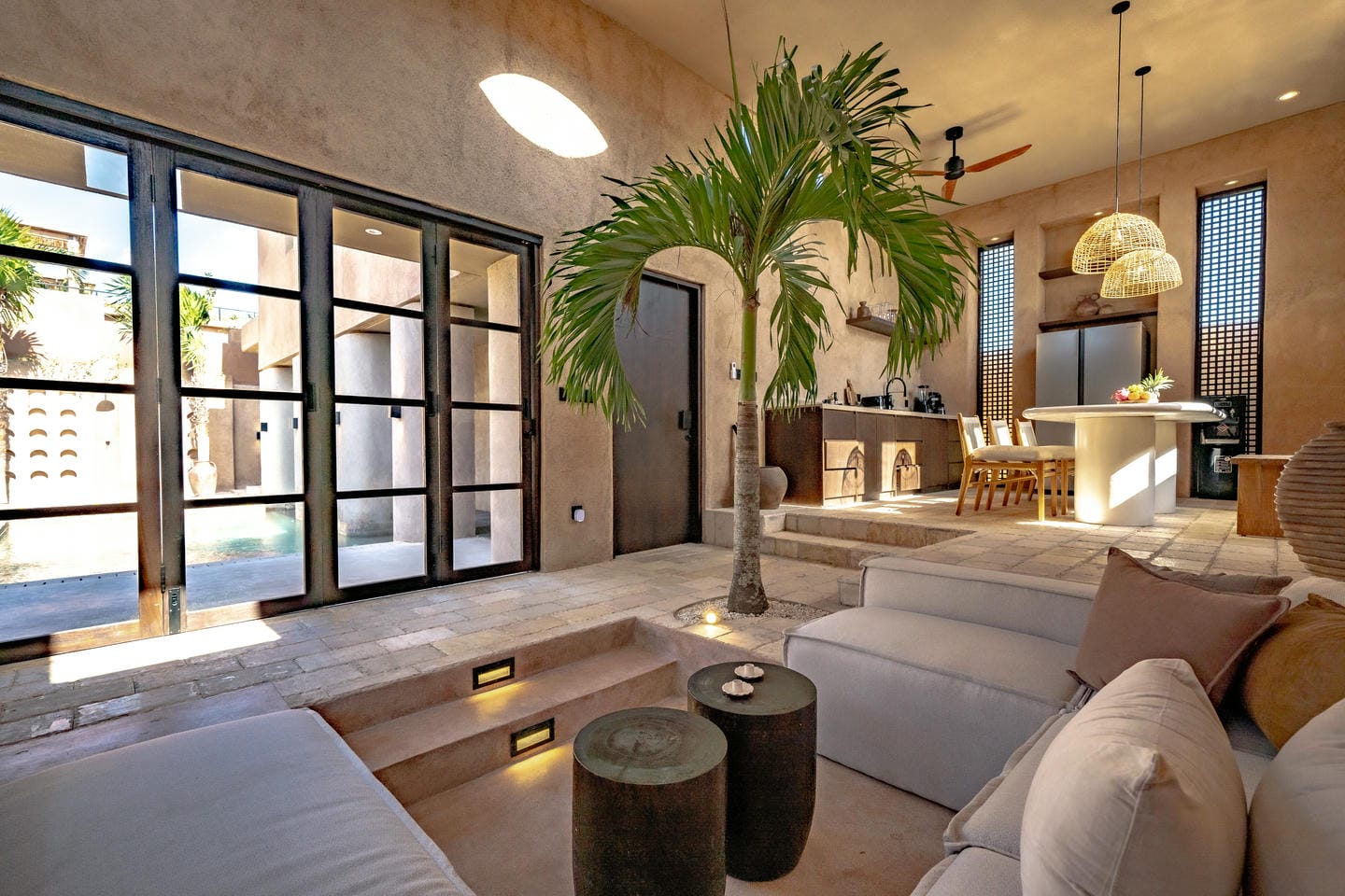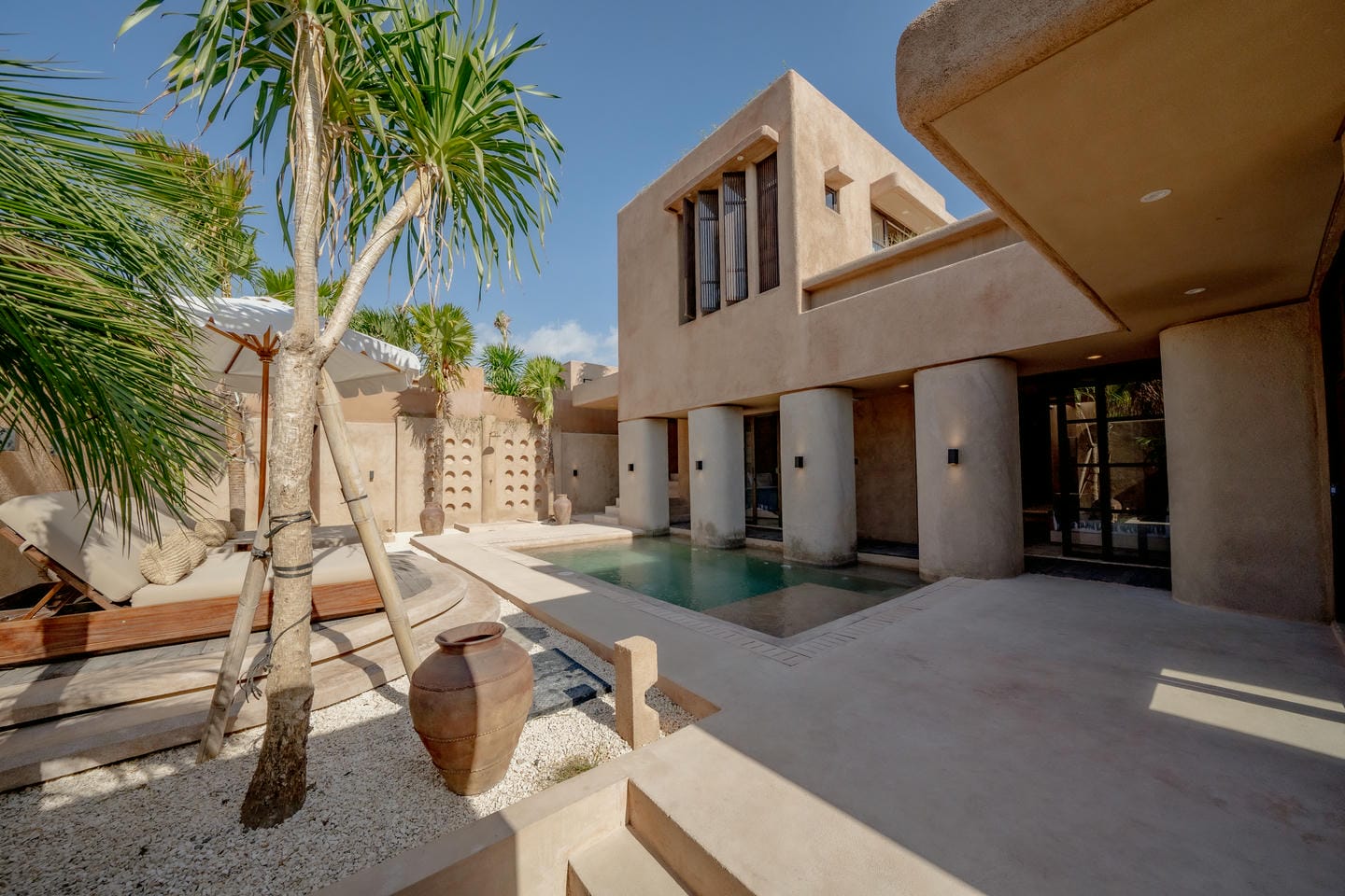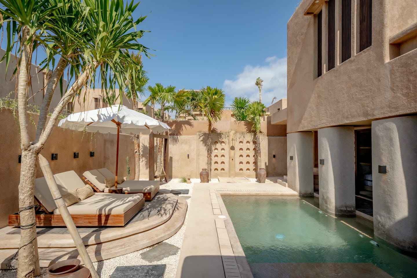 Outside, the villa boasts a 15 sqm private pool surrounded by a minimalist tropical garden and inviting sun loungers.
