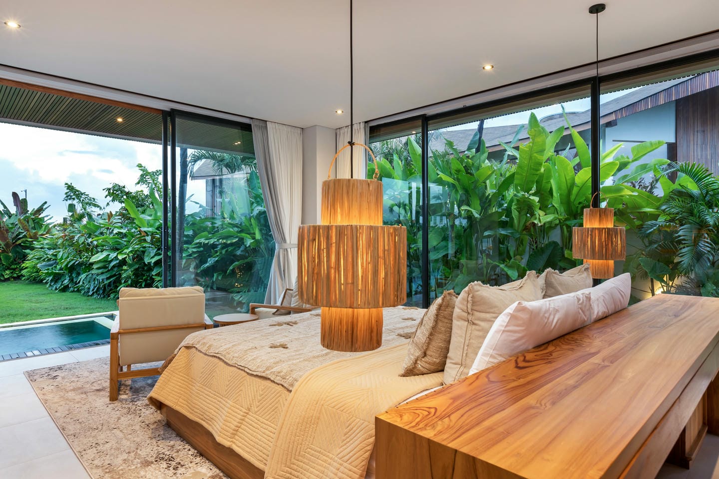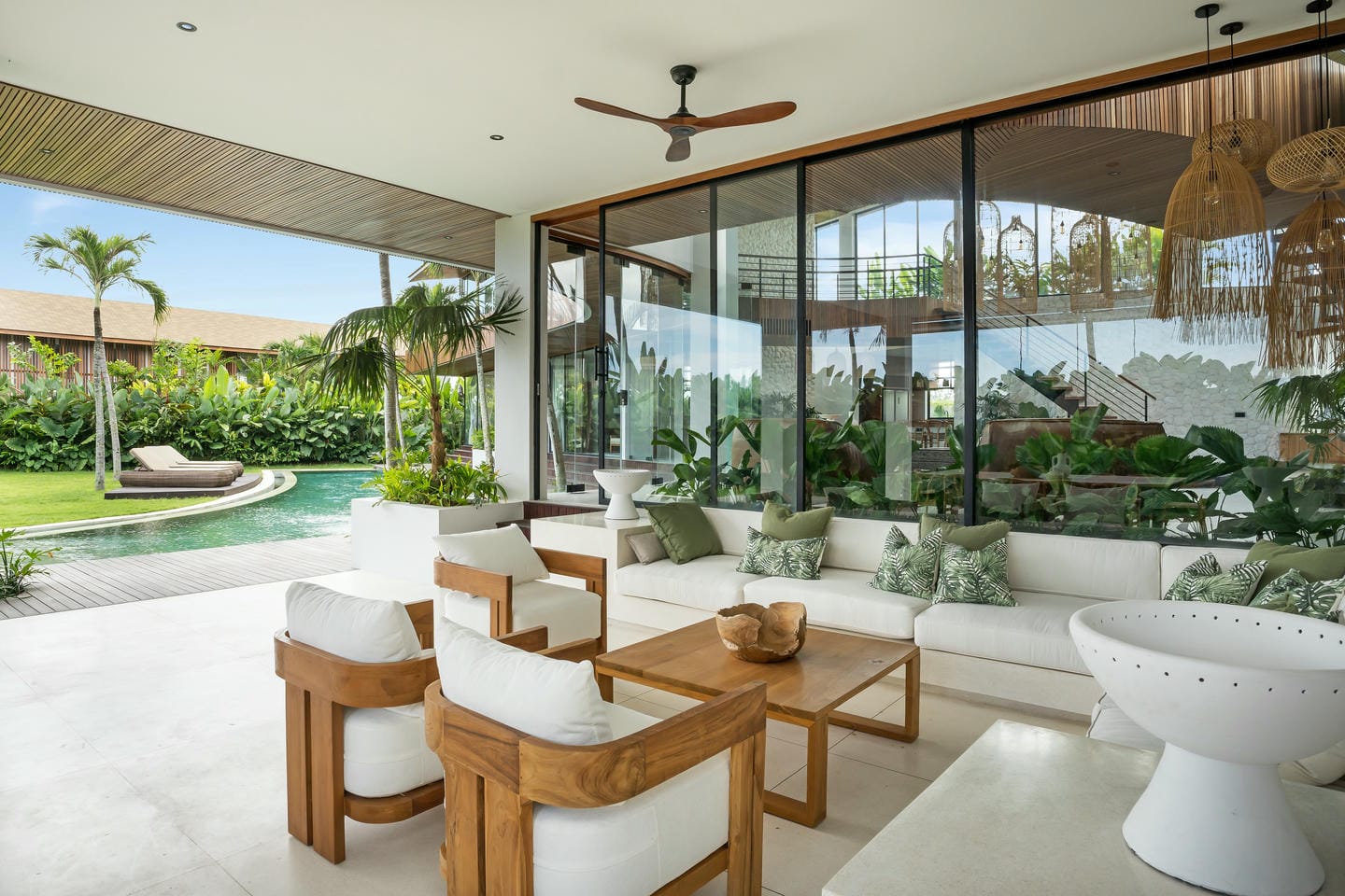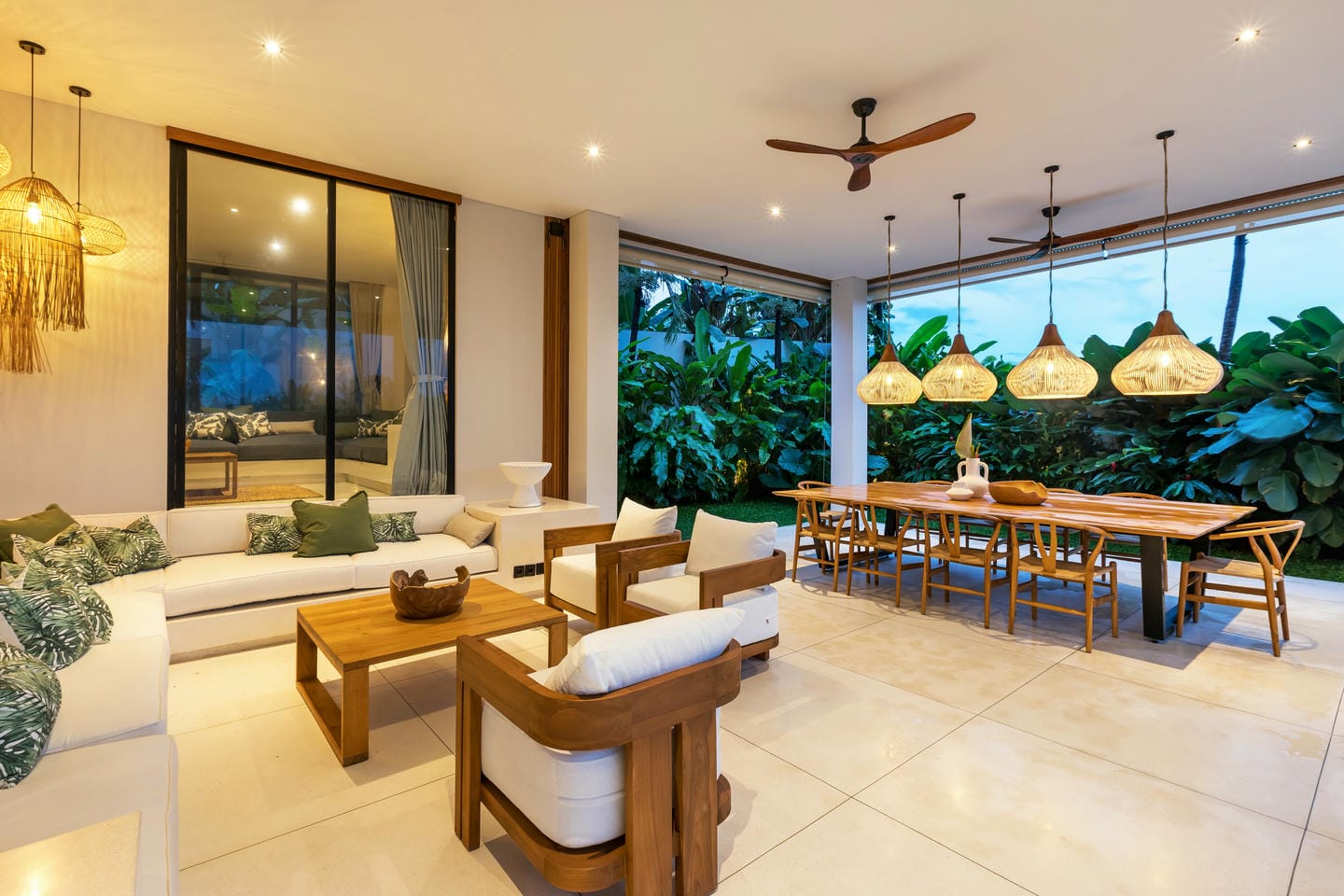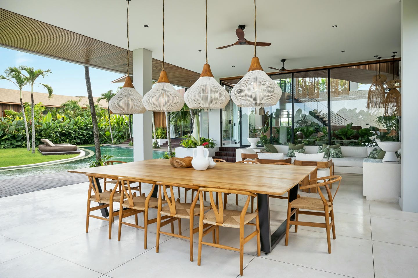 High ceilings, designer pendant lighting, and refined material selections create an atmosphere that is both grand and inviting. The indoor and outdoor living areas flow effortlessly, embracing Bali’s tropical lifestyle.