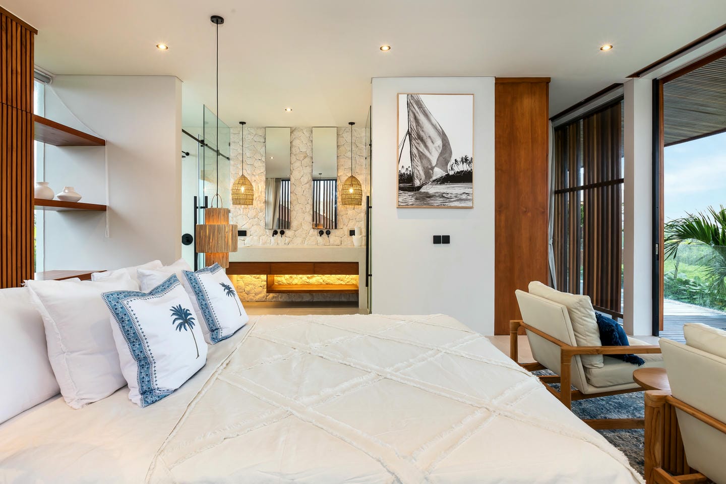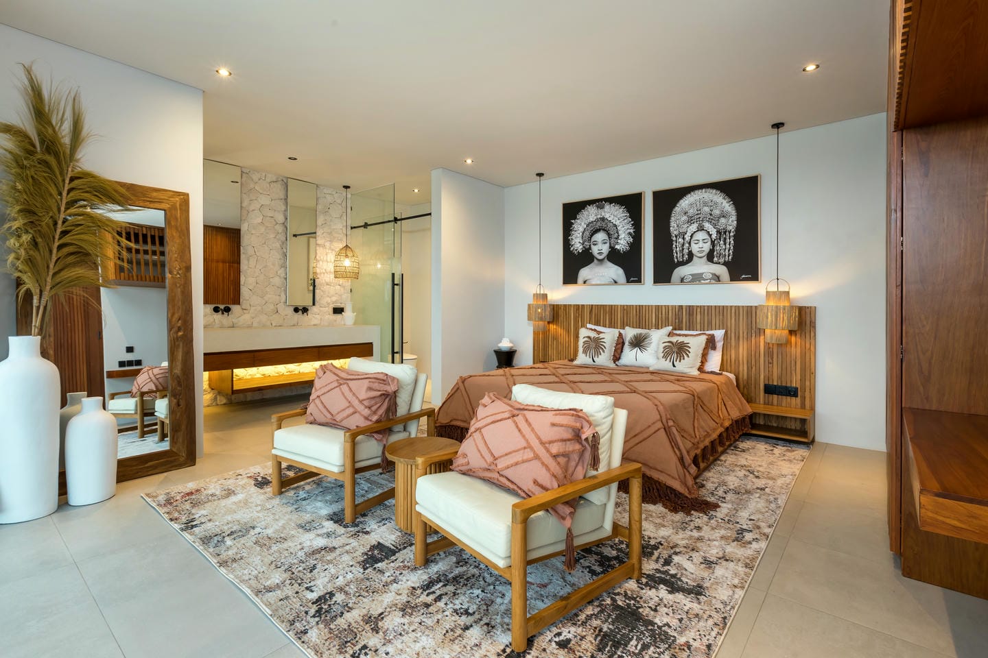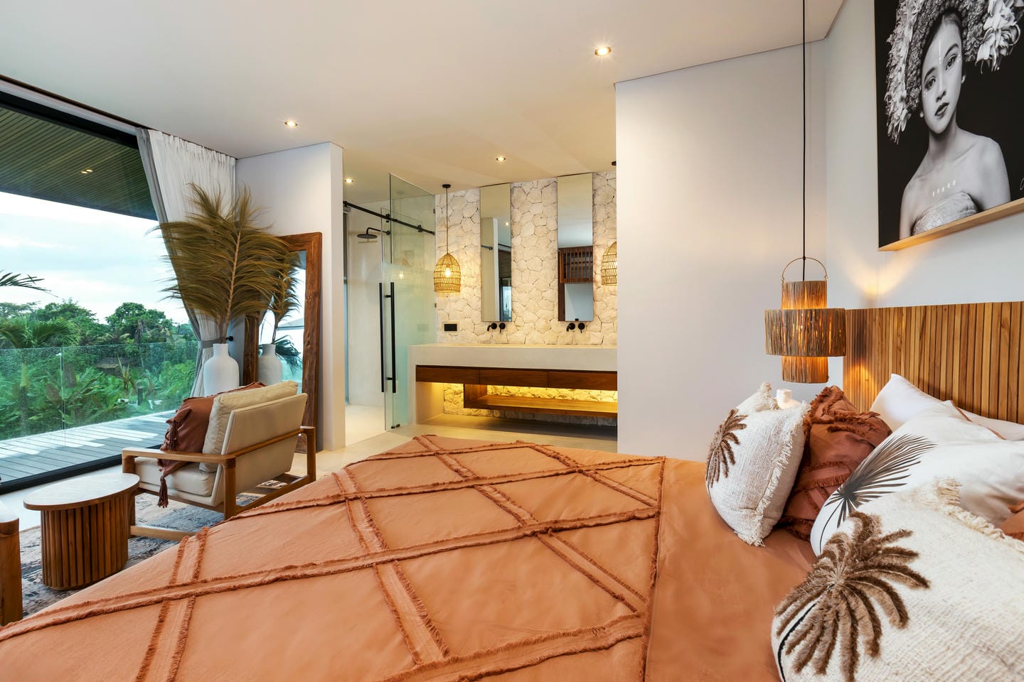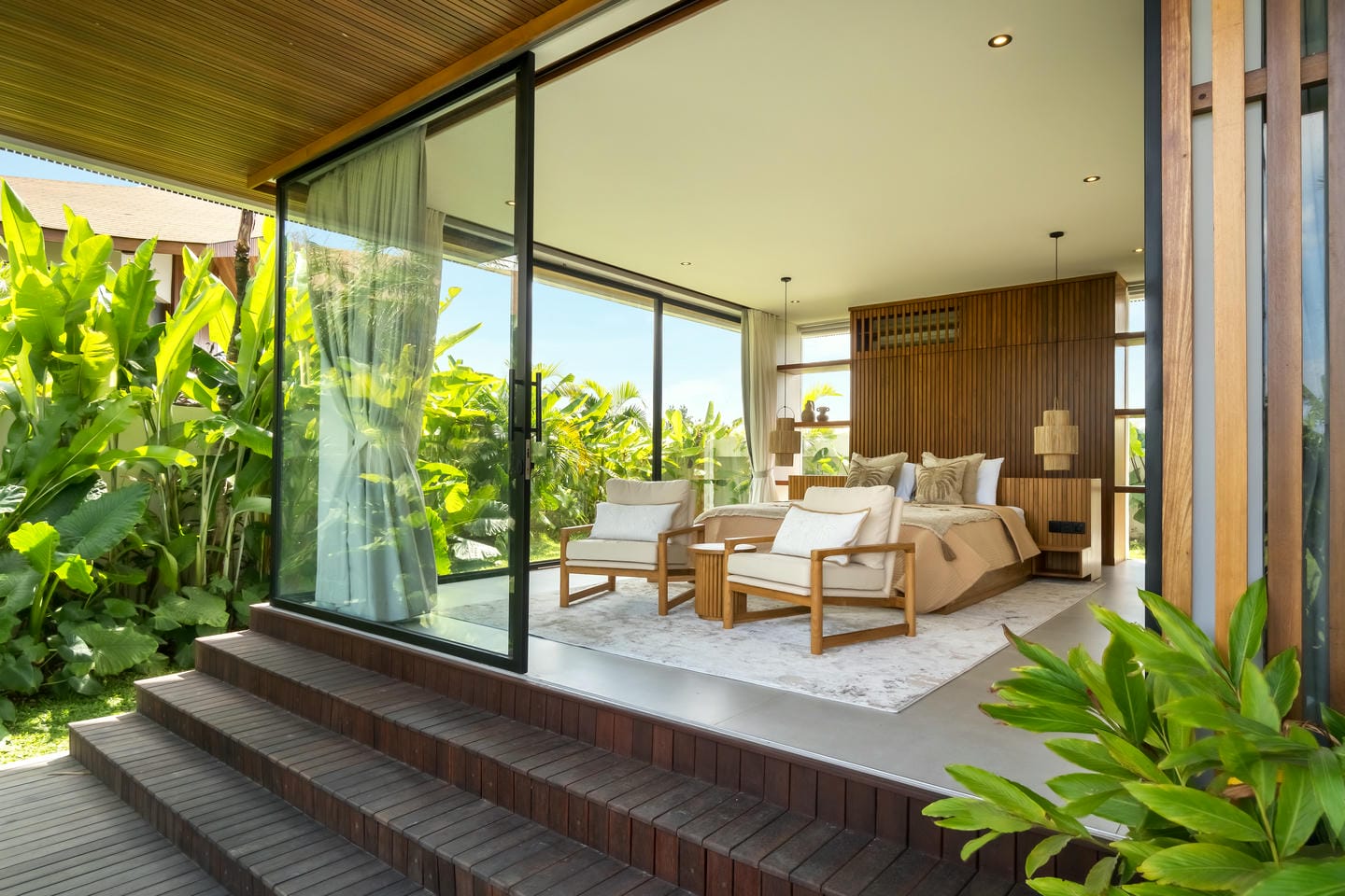 High ceilings, designer pendant lighting, and refined material selections create an atmosphere that is both grand and inviting. The indoor and outdoor living areas flow effortlessly, embracing Bali’s tropical lifestyle.