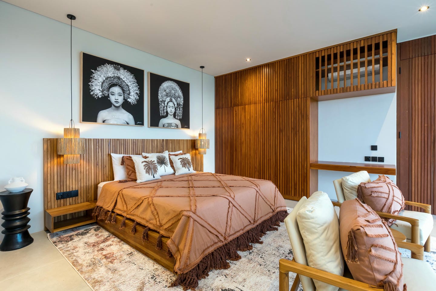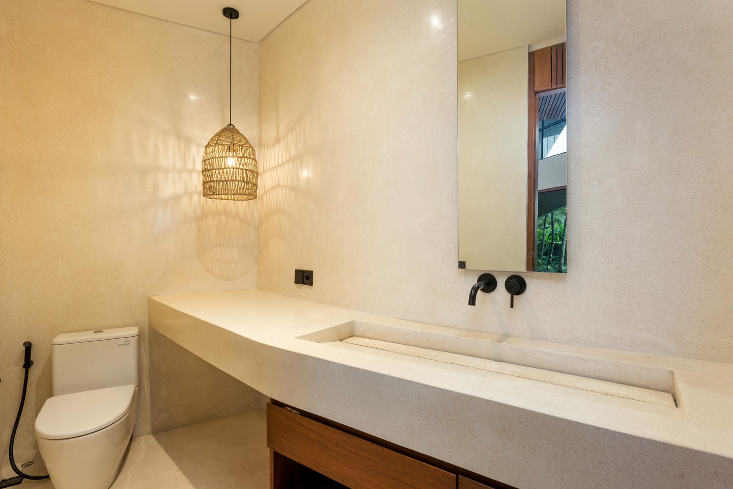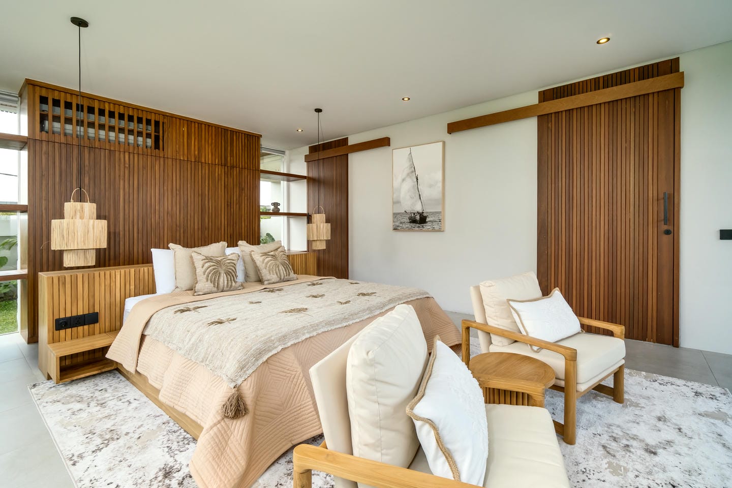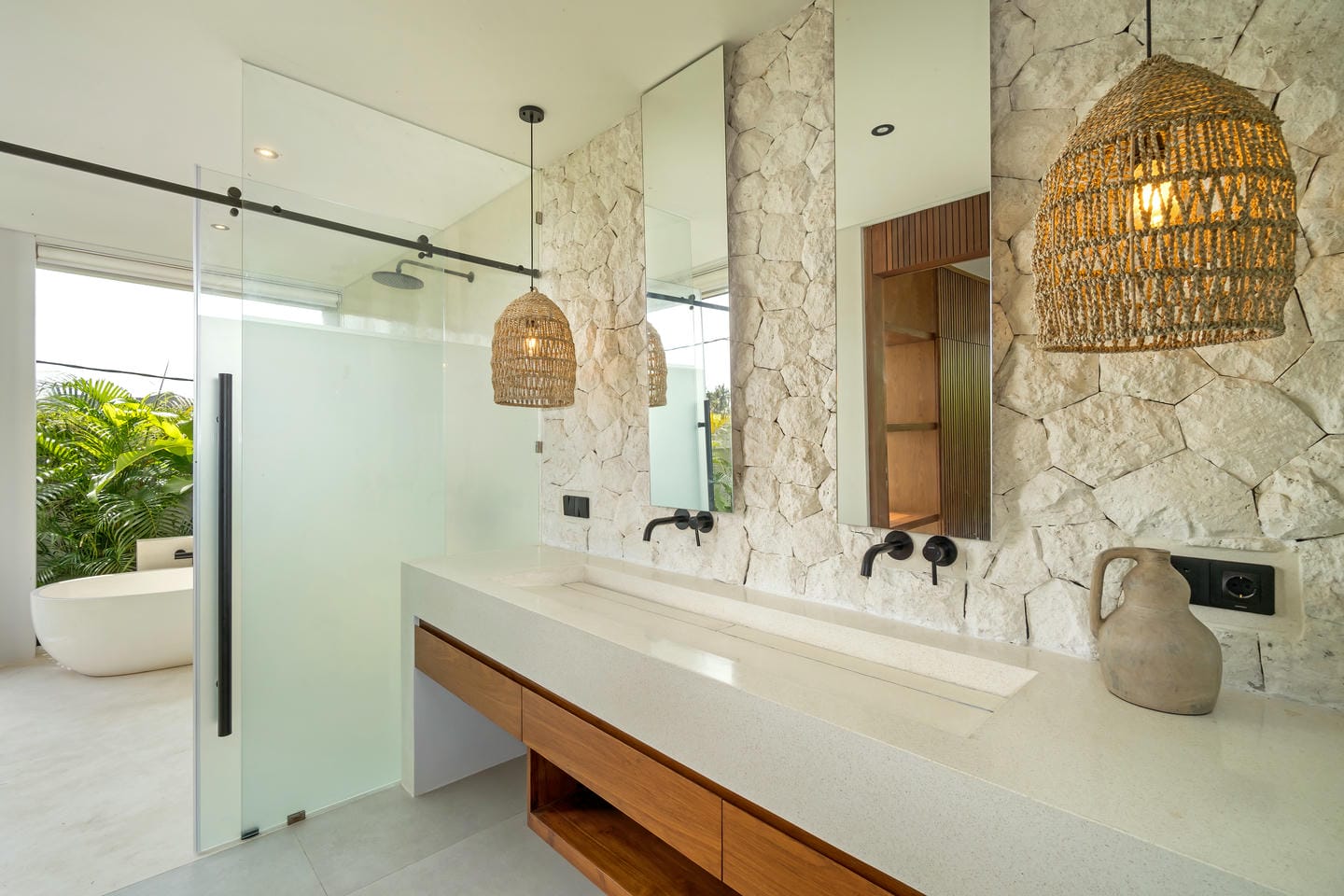 High ceilings, designer pendant lighting, and refined material selections create an atmosphere that is both grand and inviting. The indoor and outdoor living areas flow effortlessly, embracing Bali’s tropical lifestyle.