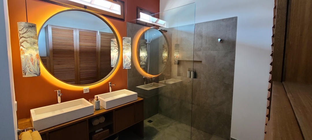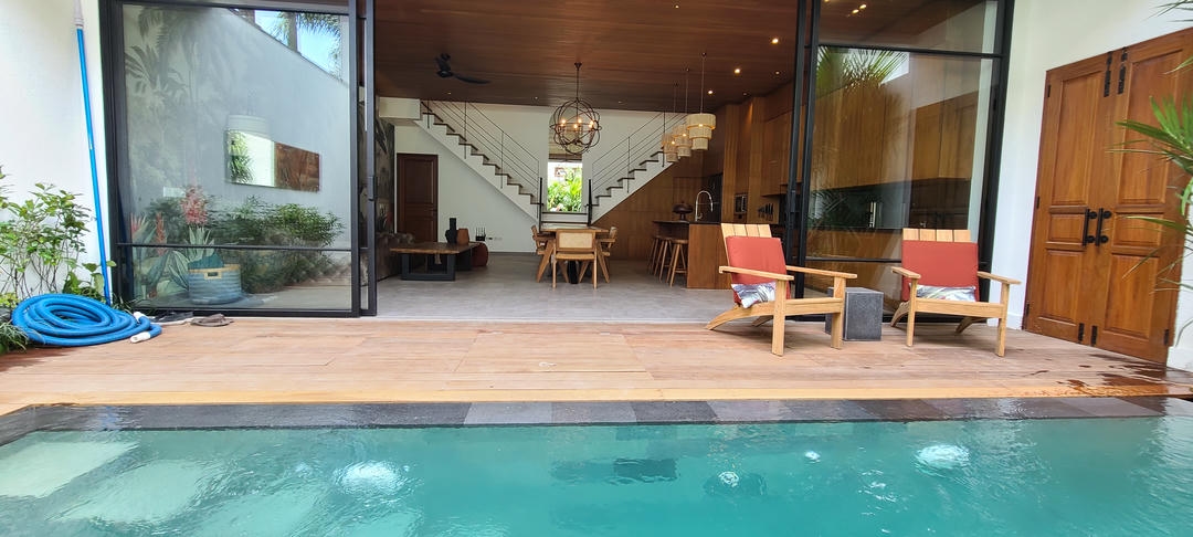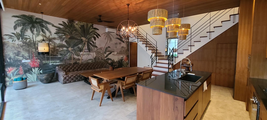 Designed in a modern Balinese style, this villa offers 3 spacious bedrooms, each with its own ensuite bathroom. The flexible open–enclosed living room features high ceilings that enhance the sense of space, while the dining area, kitchen island, and dedicated dining space create a seamless flow for everyday living and entertaining.