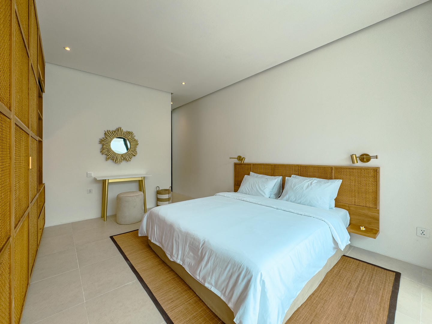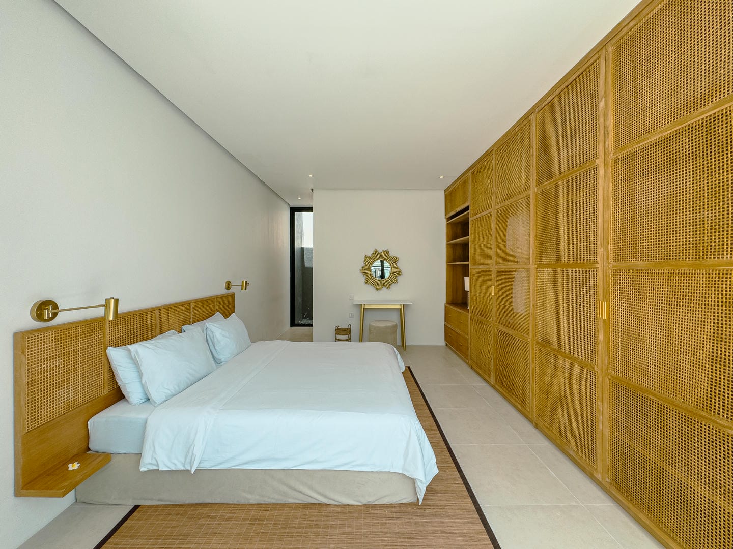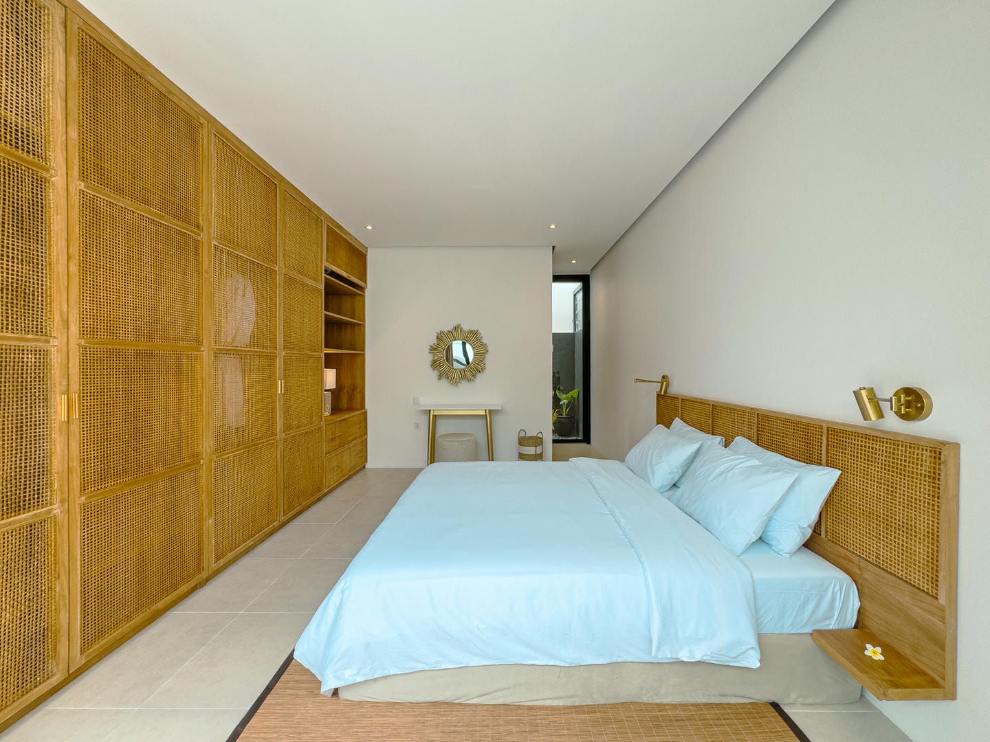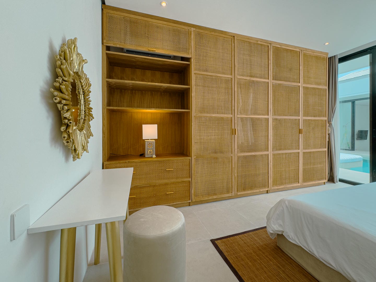 Outside, the villa presents a beautiful private pool framed by tropical landscaping and clean architectural lines. An in-pool daybed and vertical garden wall elevate the space, making it perfect for both lounging and entertaining.