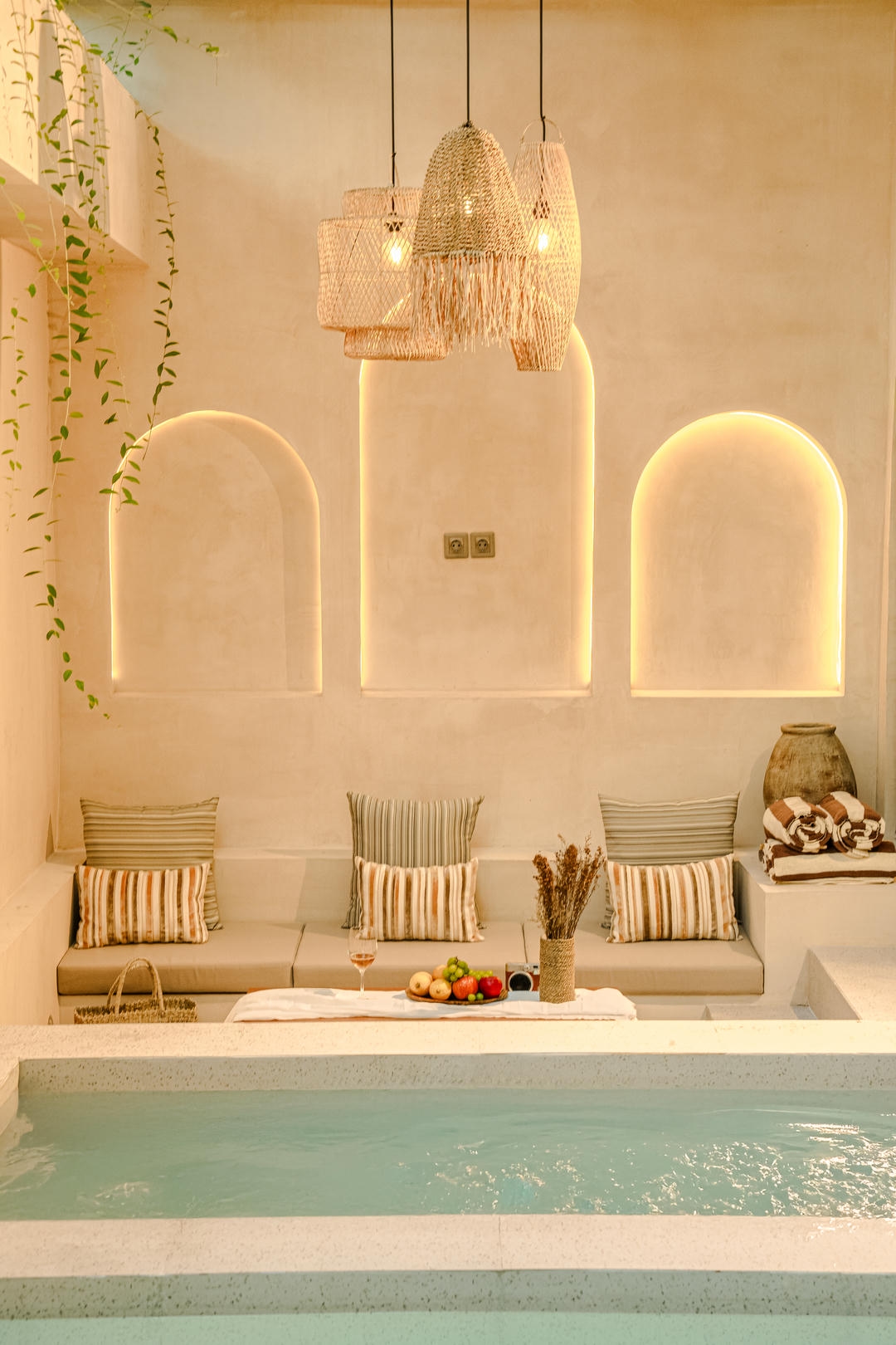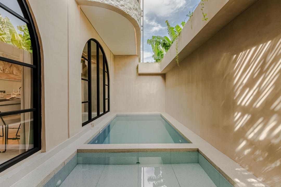 Step outside to a private pool with a lounge area, ideal for relaxing under the Bali sun.