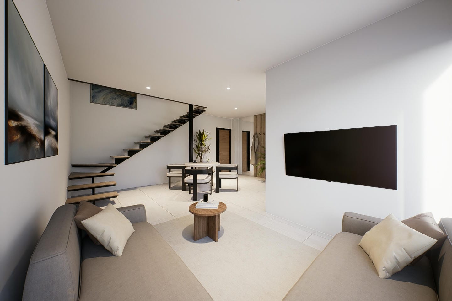 This modern 2-bedroom mezzanine villa features an ensuite bathroom and comes semi furnished. The thoughtfully designed interior includes a comfortable living area, dining space, and a kitchen, creating a functional yet stylish living environment. Expansive windows allow plenty of natural light to flow throughout, enhancing the open and airy feel of the home.