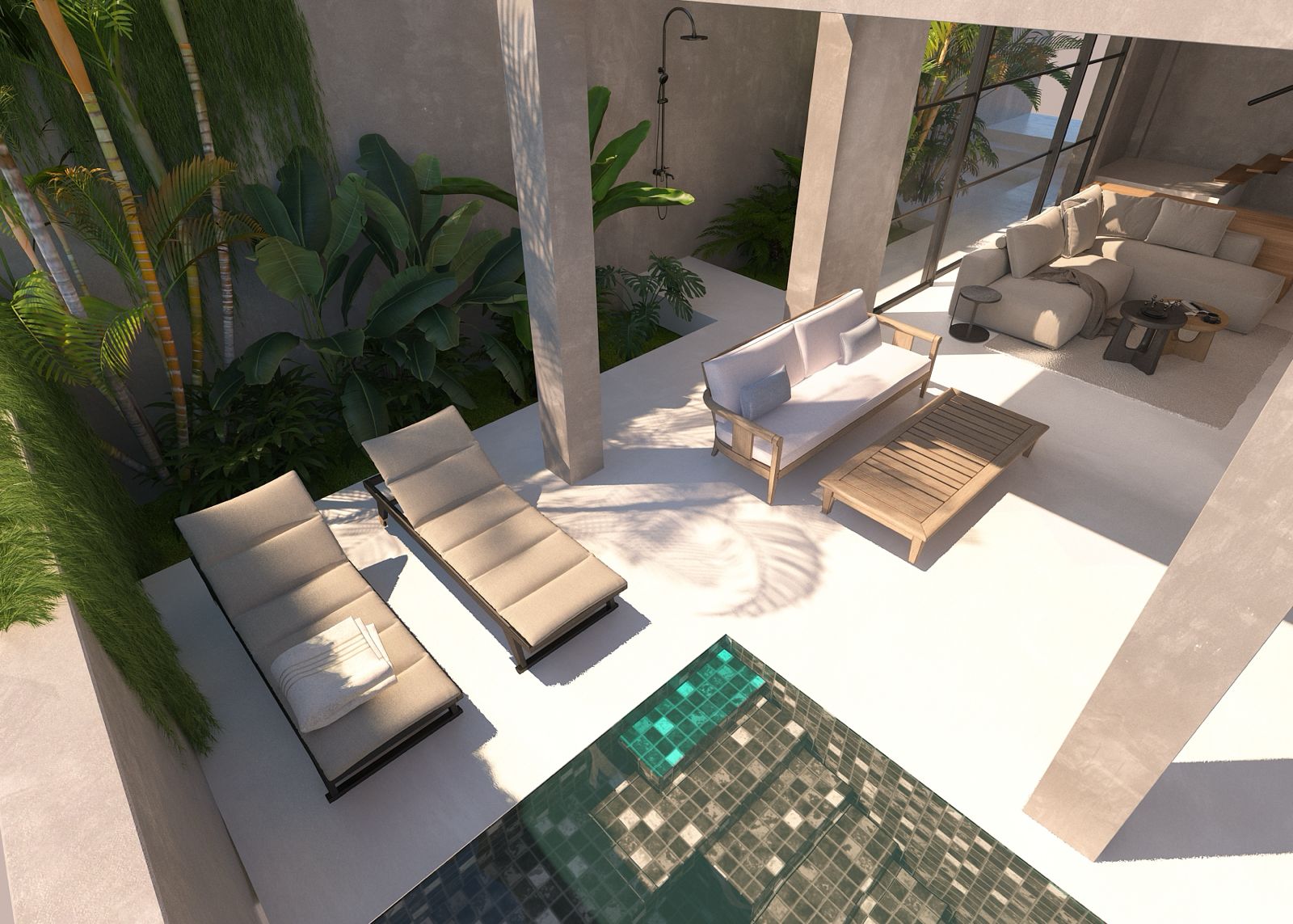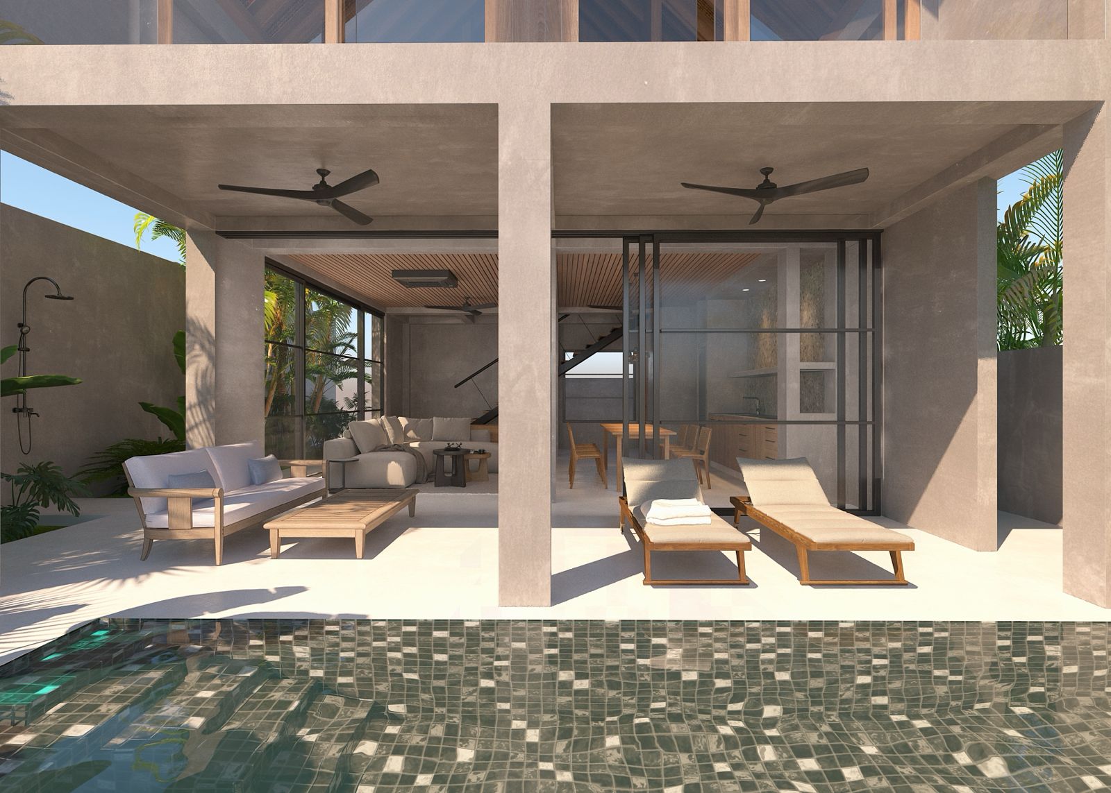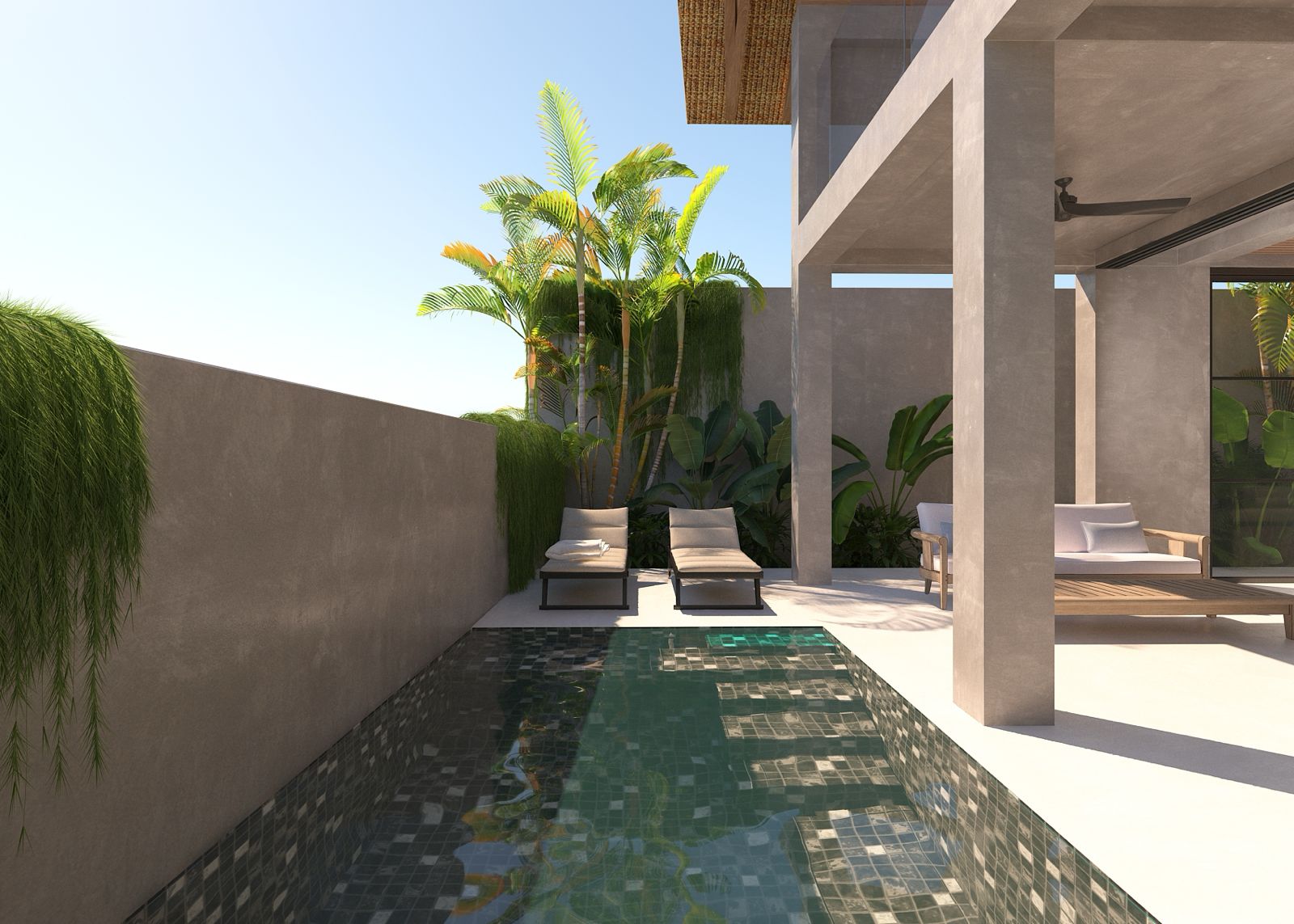Outside, enjoy a private pool with a relaxing lounge area and a terrace with a dining table, ideal for serene mornings or evening gatherings surrounded by nature.