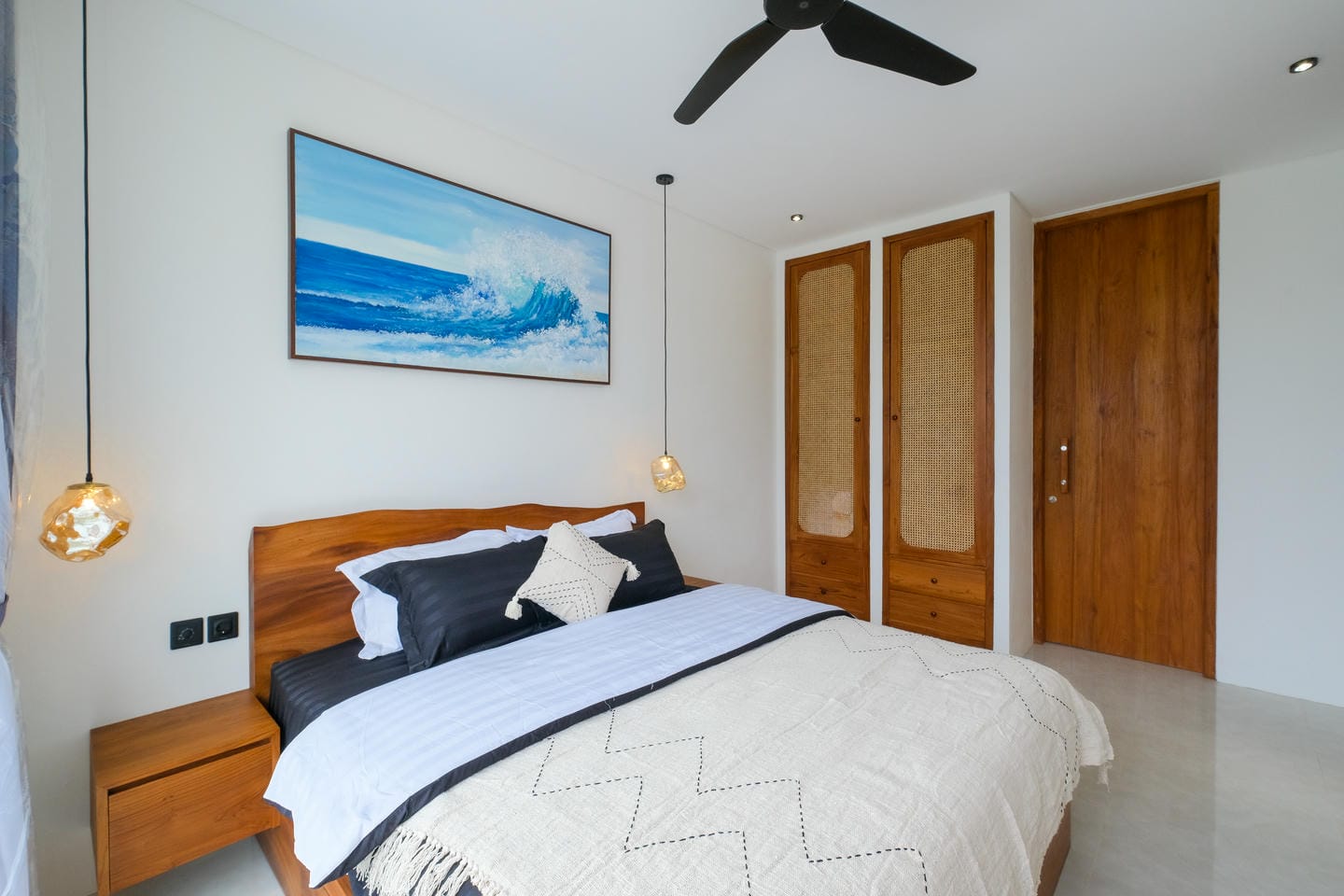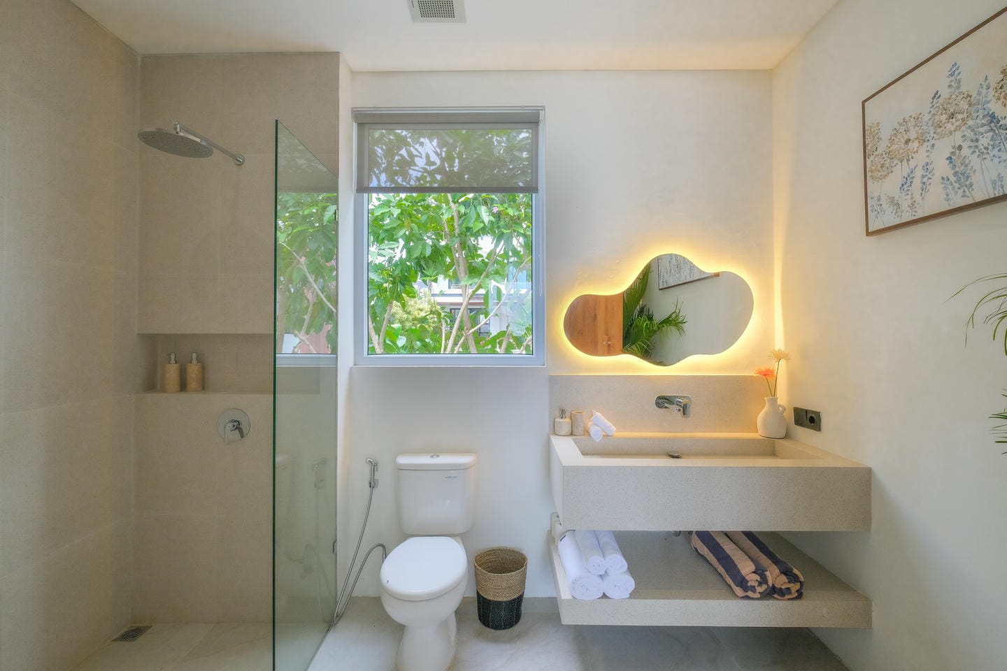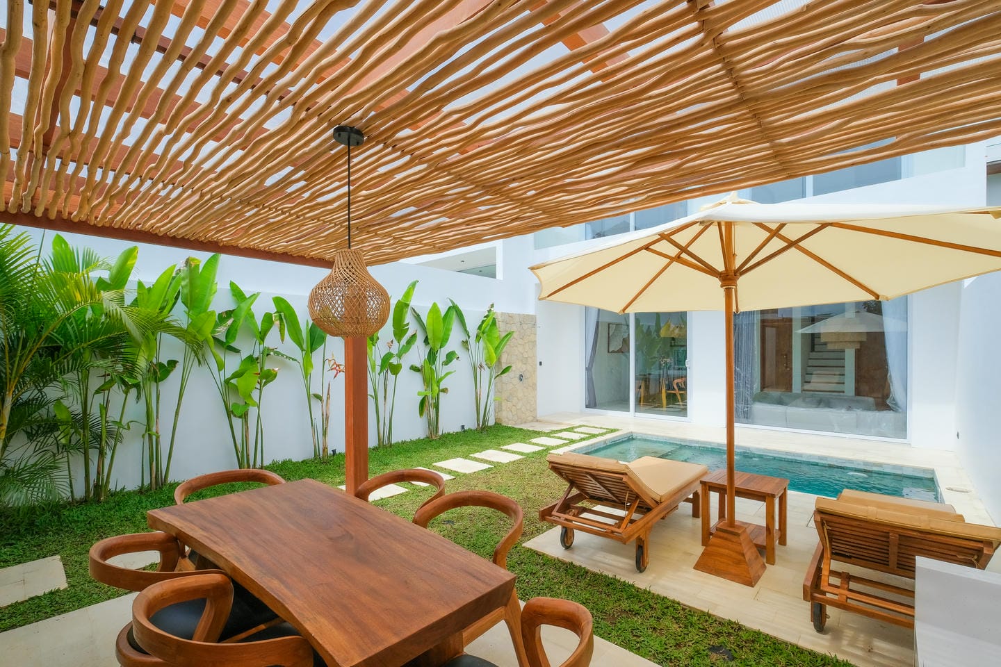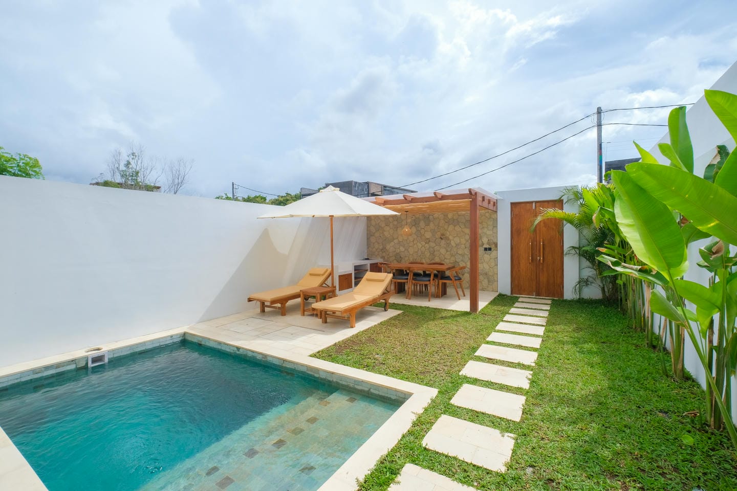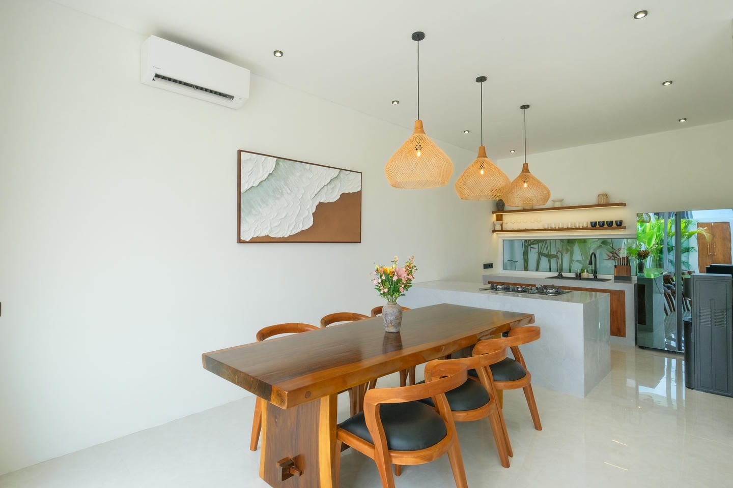This villa in Ungasan, Uluwatu, offers a perfect blend of minimalistic and Mediterranean design, located just 3 minutes from Karma Beach, and 8 minutes from Melasti Beach, Savaya, and Green Bowl Beach.