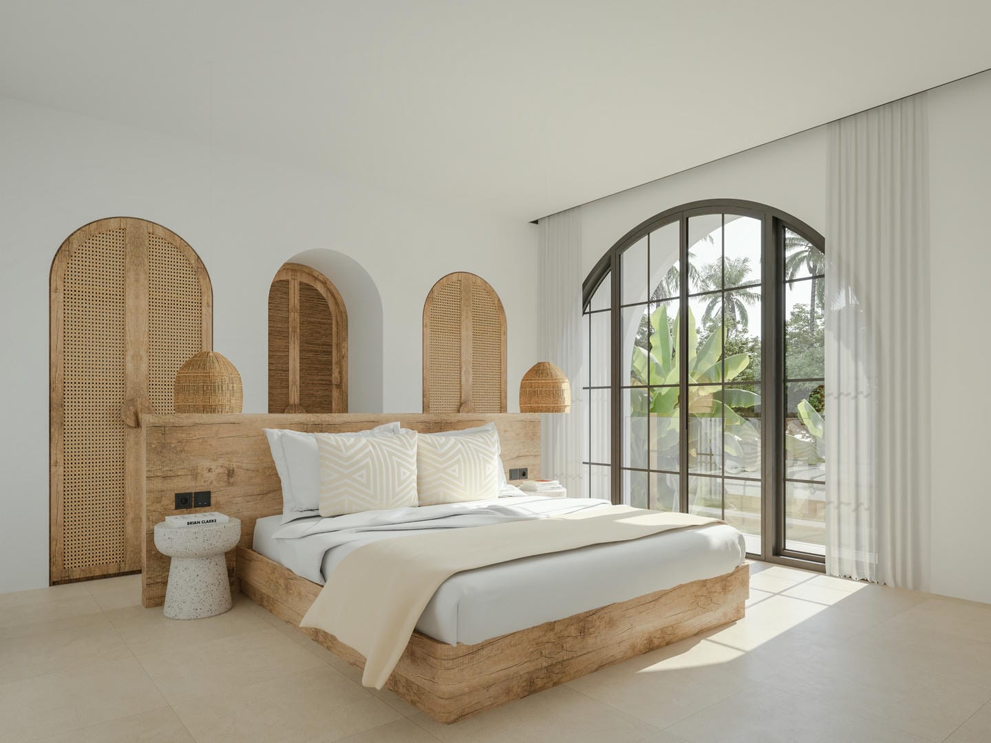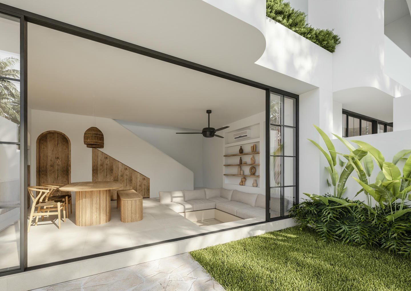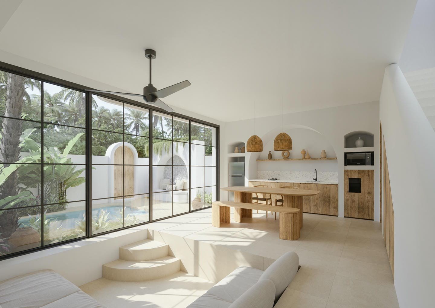 The indoor-outdoor flow is accentuated by large sliding doors, inviting in natural light and opening directly to the private pool area—your own sanctuary for sun-soaked days or tranquil evenings.