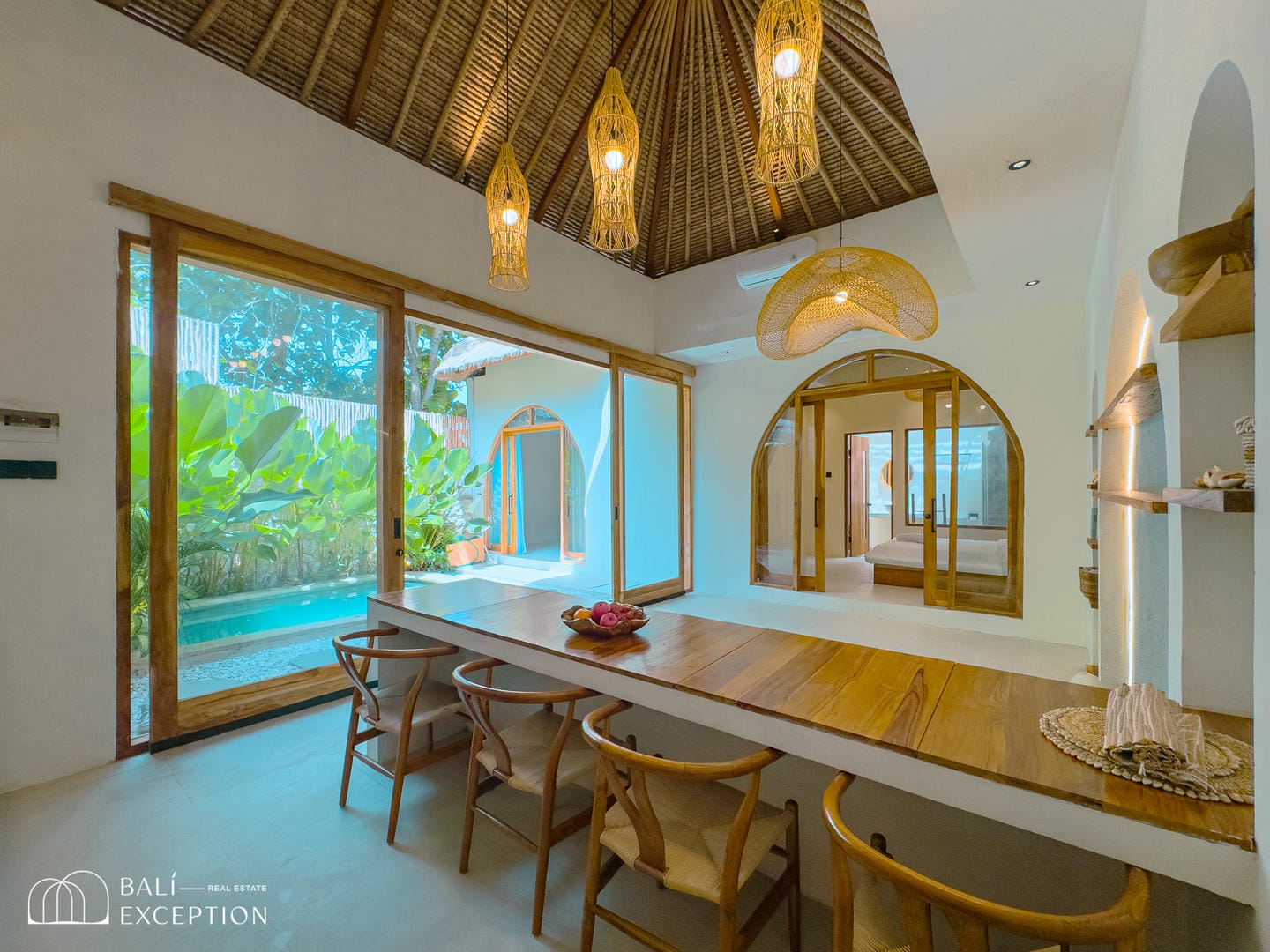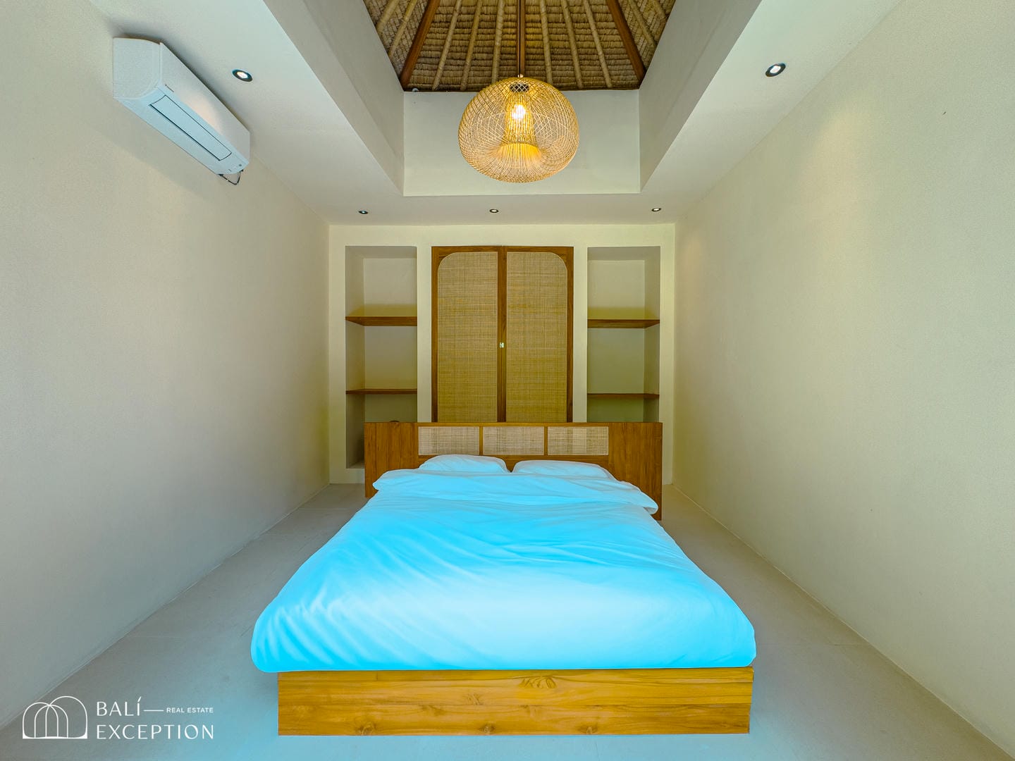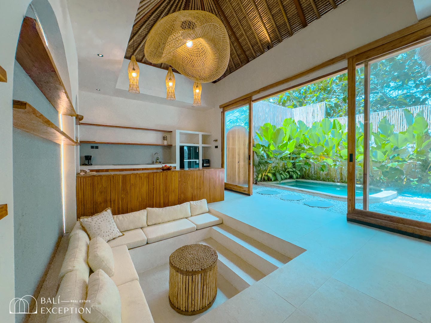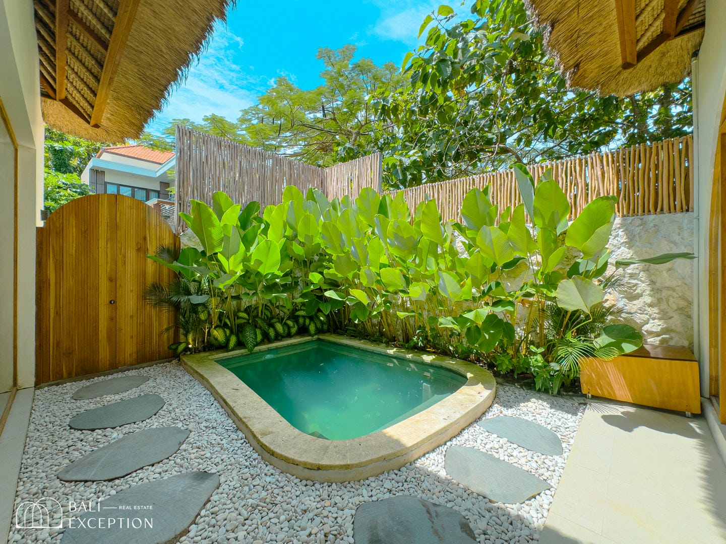It features two spacious bedrooms and two bathrooms, all fully furnished with high-quality materials for your convenience. The open living room, designed to embrace the natural light, seamlessly connects with a cozy garden, creating a relaxing and inviting atmosphere. Designed with a modern tropical aesthetic, this villa is perfect for a couple or a small family. The property exudes a serene and peaceful ambiance, making it an ideal retreat from the hustle and bustle of everyday life.