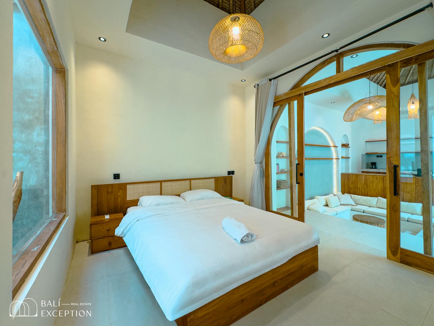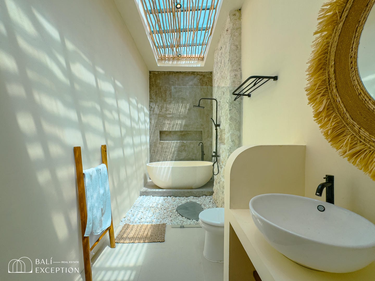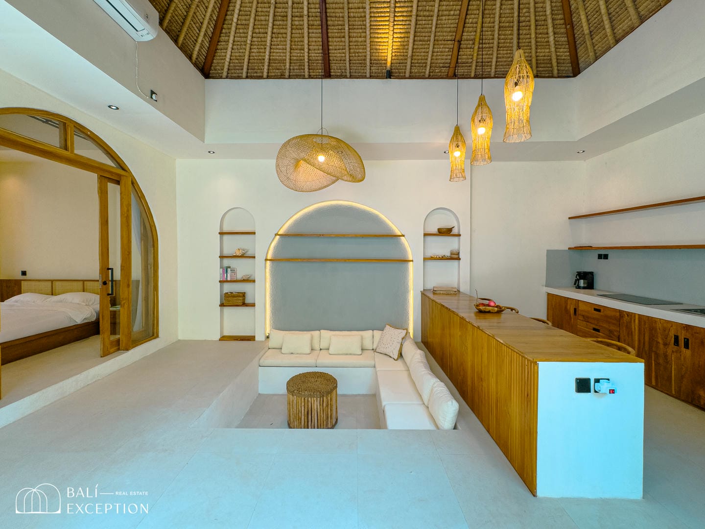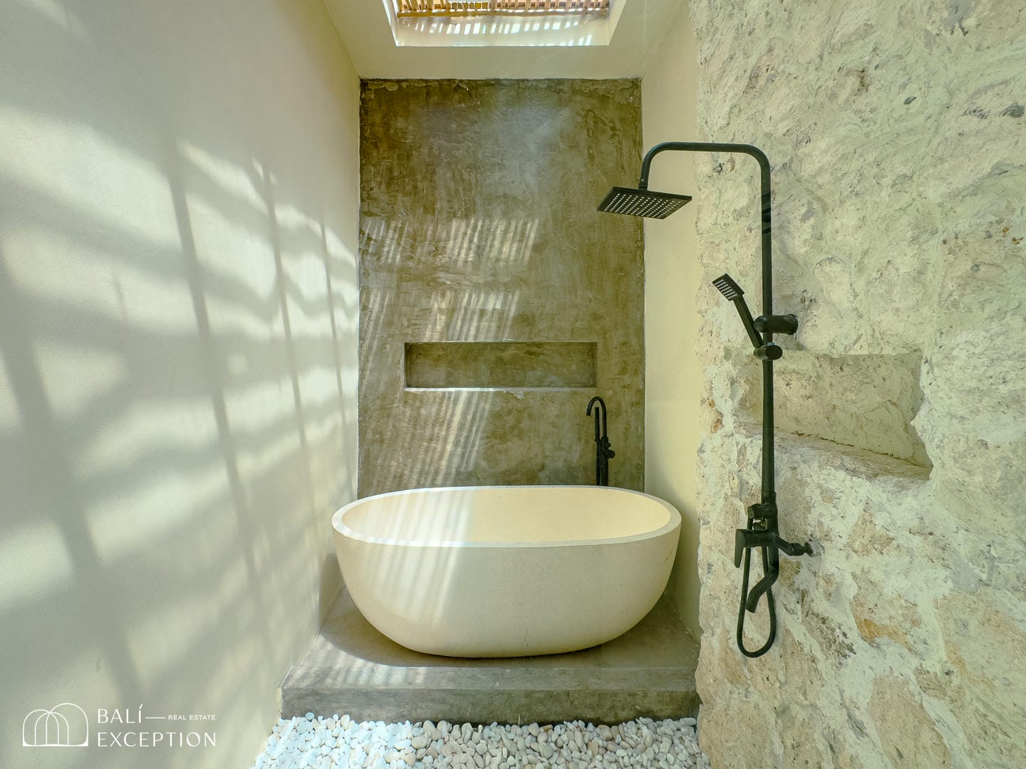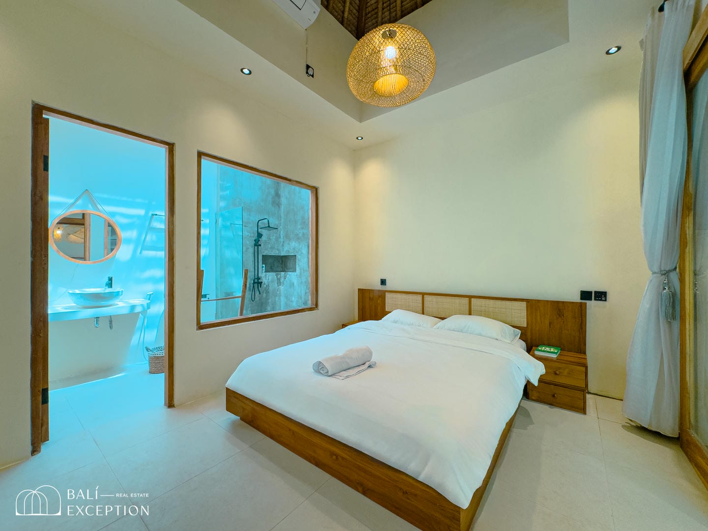 It features two spacious bedrooms and two bathrooms, all fully furnished with high-quality materials for your convenience. The open living room, designed to embrace the natural light, seamlessly connects with a cozy garden, creating a relaxing and inviting atmosphere. Designed with a modern tropical aesthetic, this villa is perfect for a couple or a small family. The property exudes a serene and peaceful ambiance, making it an ideal retreat from the hustle and bustle of everyday life.