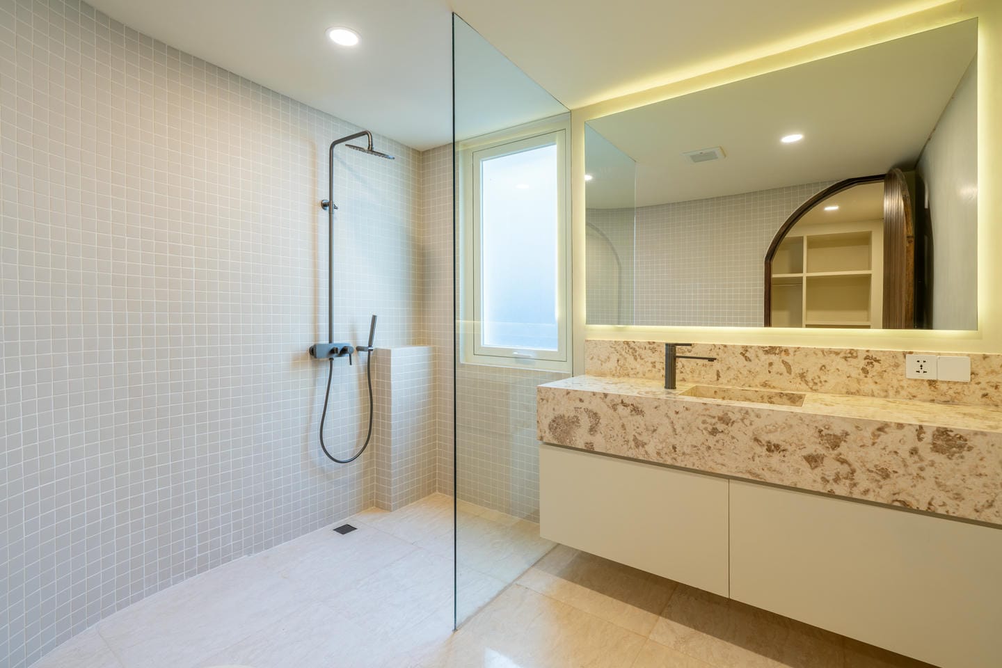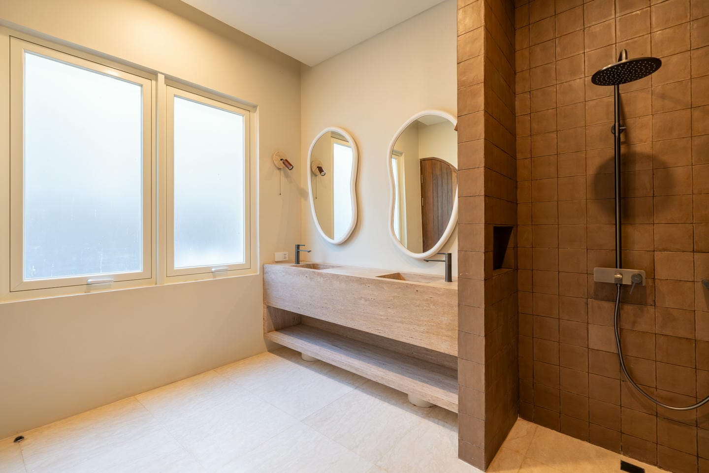 For outdoor living, the centerpiece infinity pool is complemented by breathtaking ocean views, providing a serene escape and a focal point for relaxation. The villa also includes a self-contained laundry room, ensuring that every need is met without compromise.
