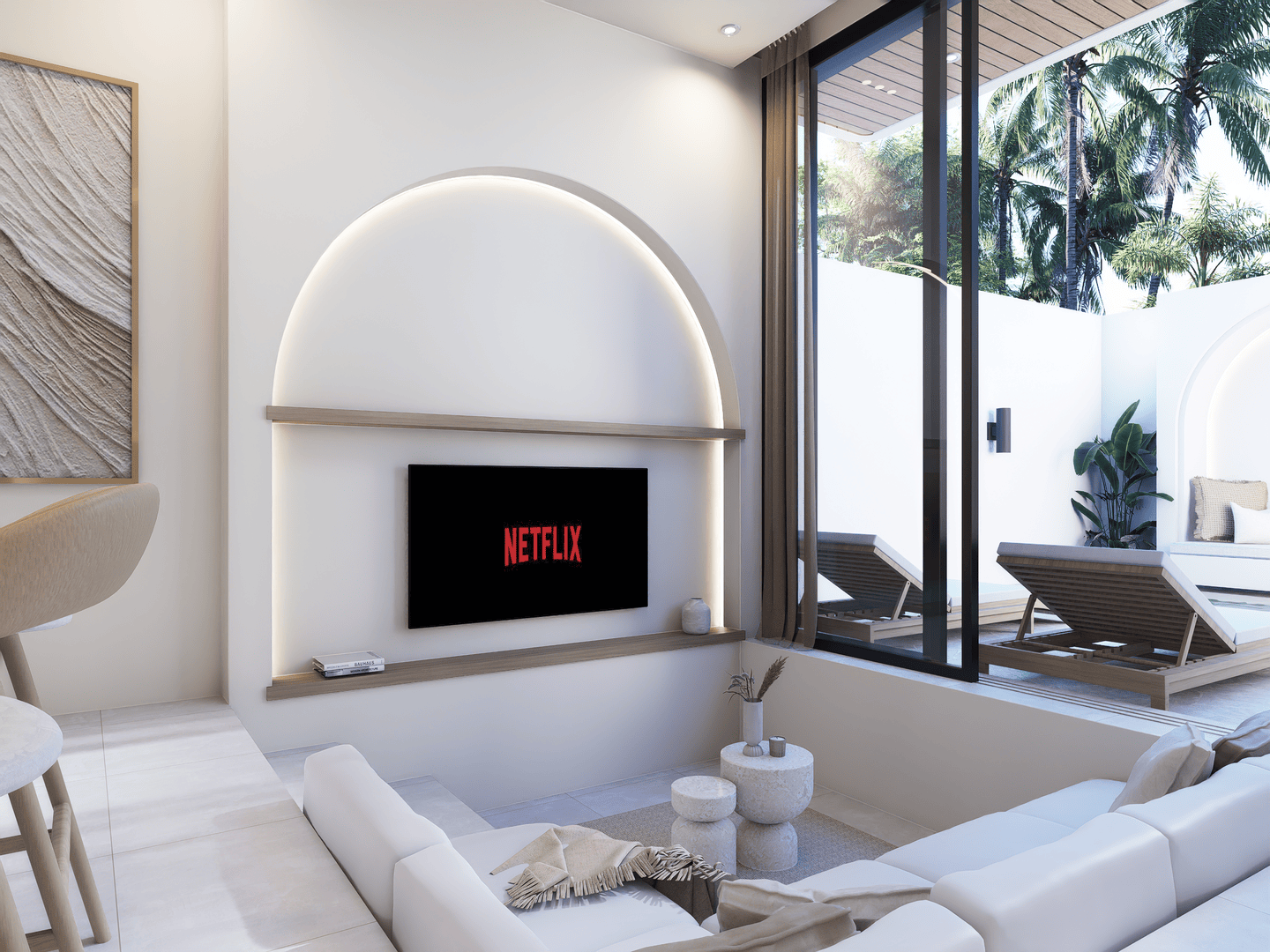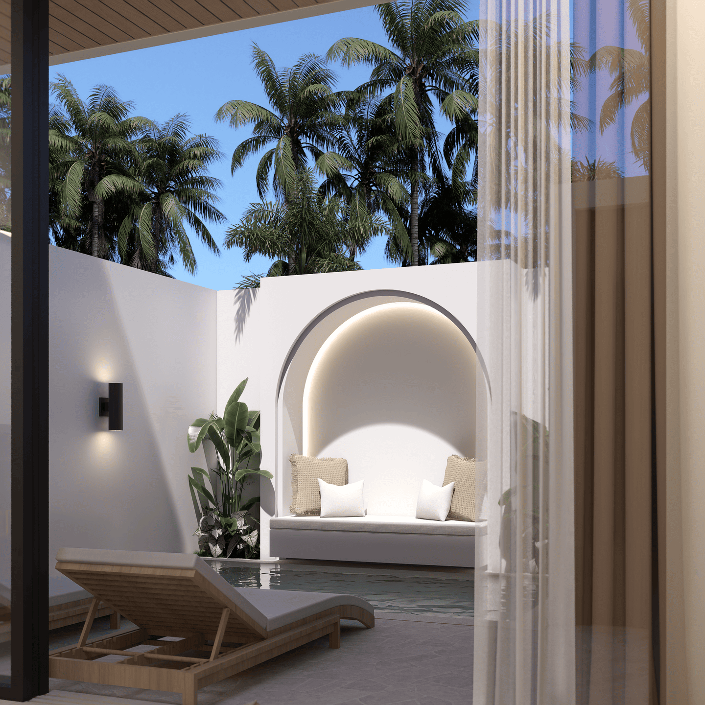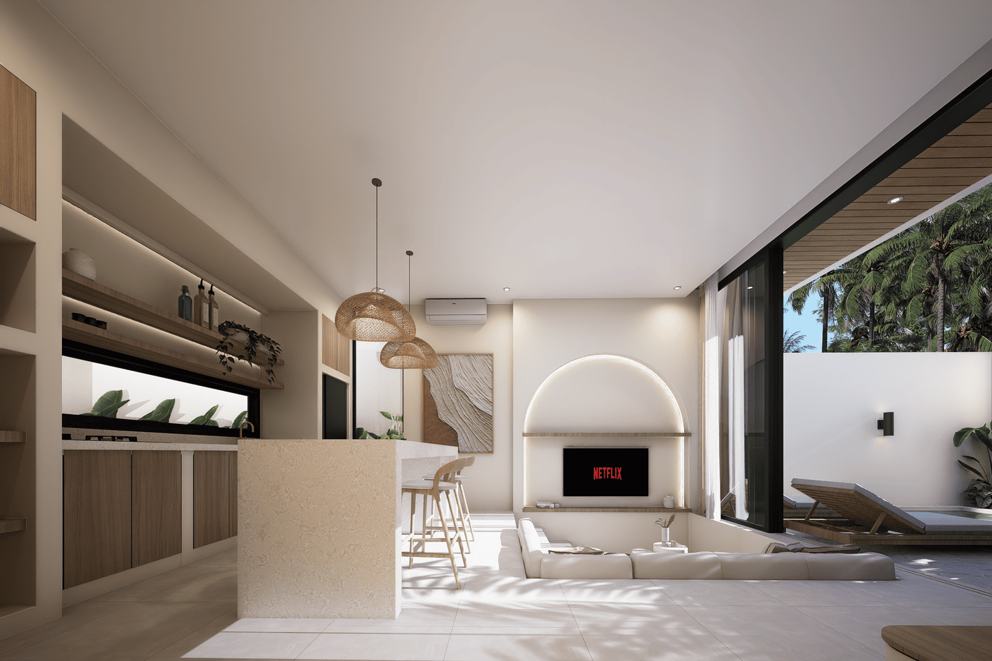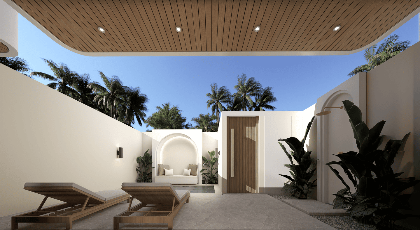 Outside, enjoy a private pool surrounded by a relaxing lounge area and sunbeds — the perfect setting for unwinding under the Bali sun.