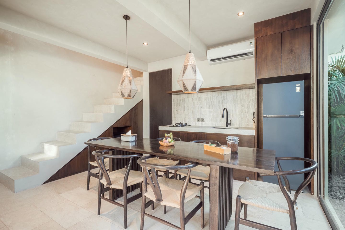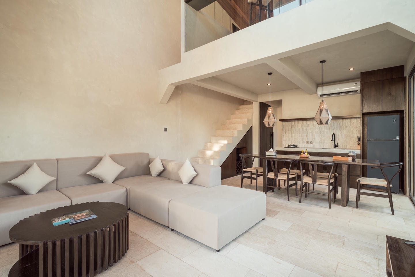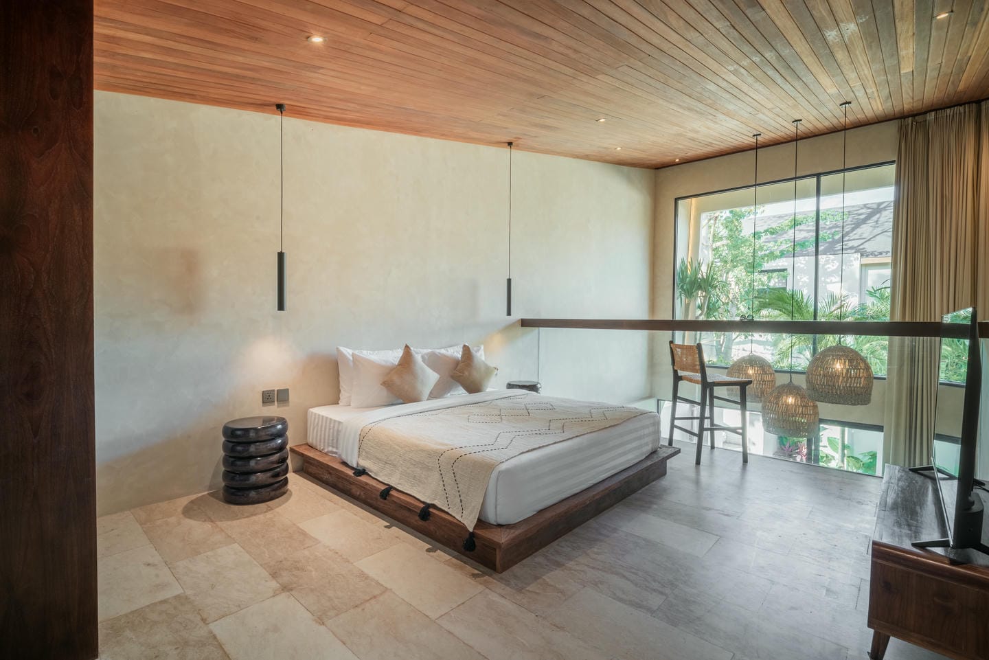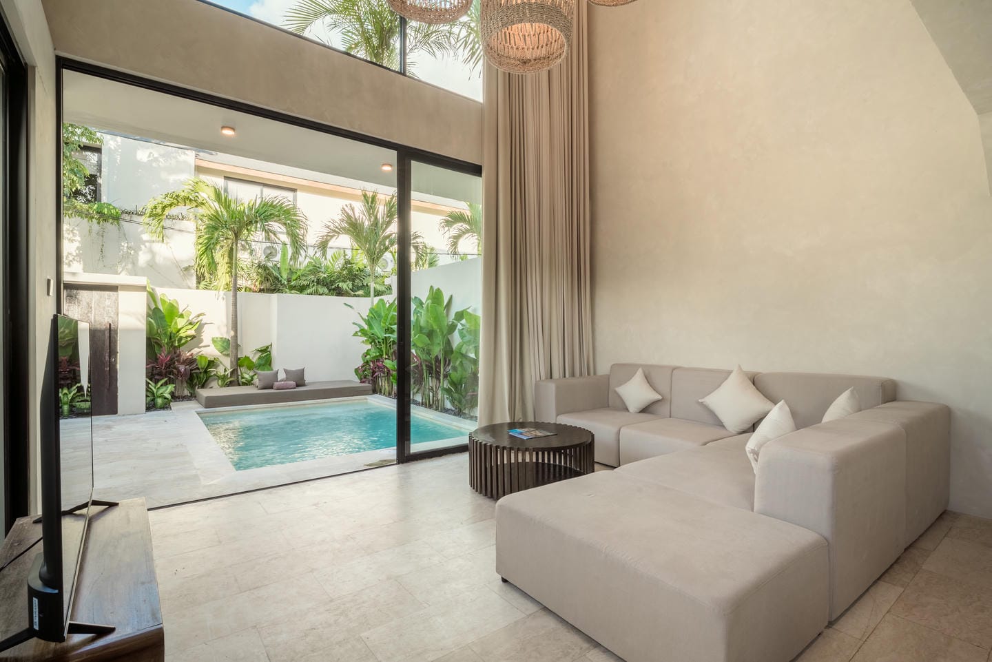 Designed in a contemporary tropical concept, the villa combines clean architectural lines with warm natural textures. High ceilings, wooden accents, and large windows allow abundant sunlight, creating a bright and airy atmosphere.