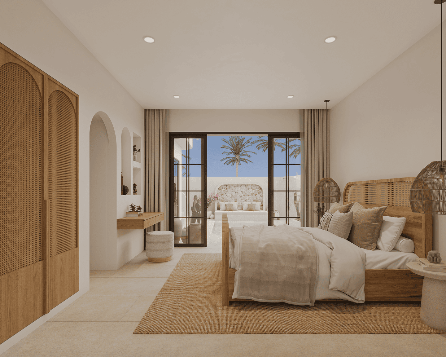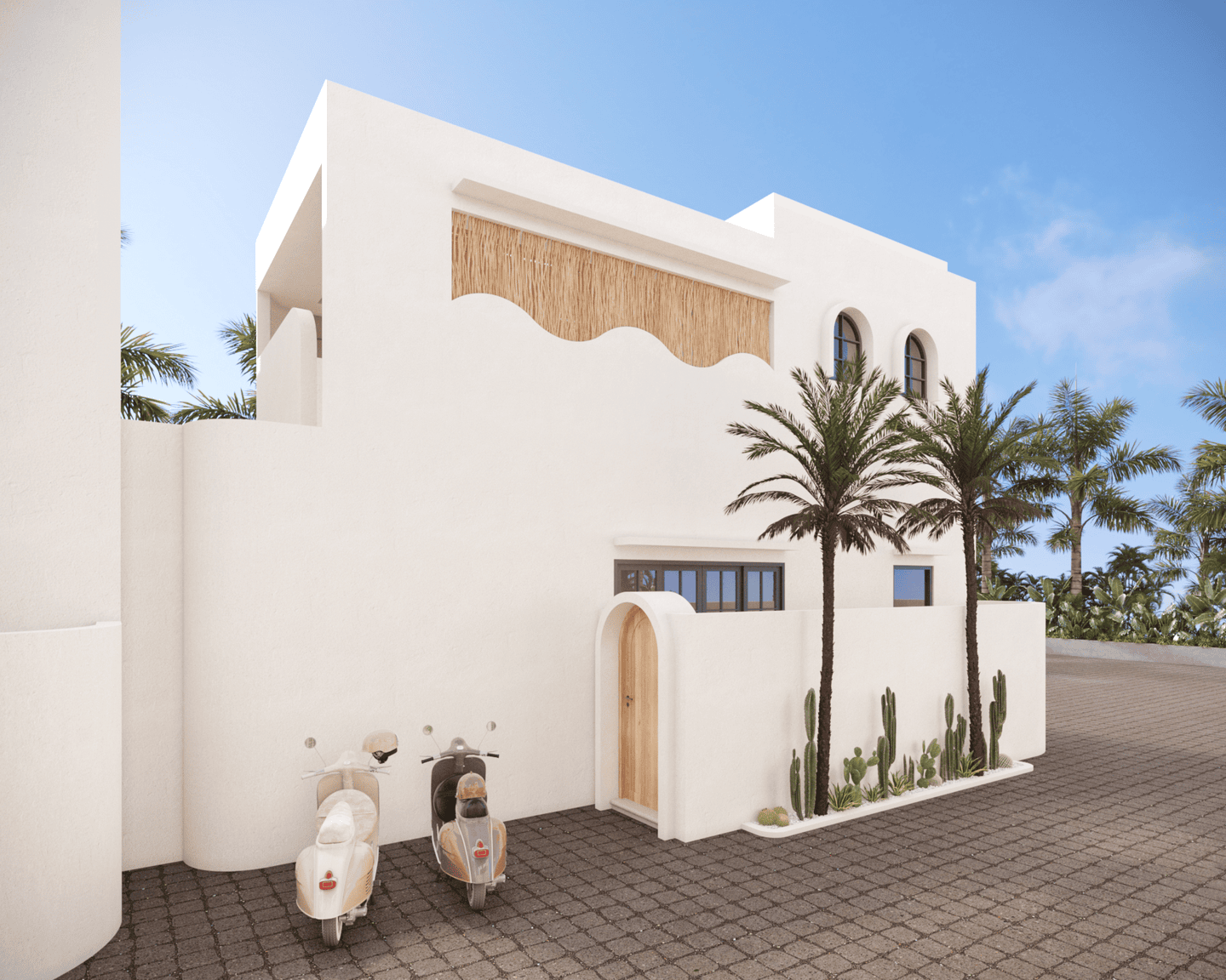 Experience the charm of this fully furnished Mediterranean-style villa, thoughtfully designed across two stories and standing on approximately 126-137 sqm of land. It features a fully equipped kitchen with warm wooden accents, a spacious sunken living area perfect for relaxing, and two comfortable bedrooms, each with its own en-suite bathroom.