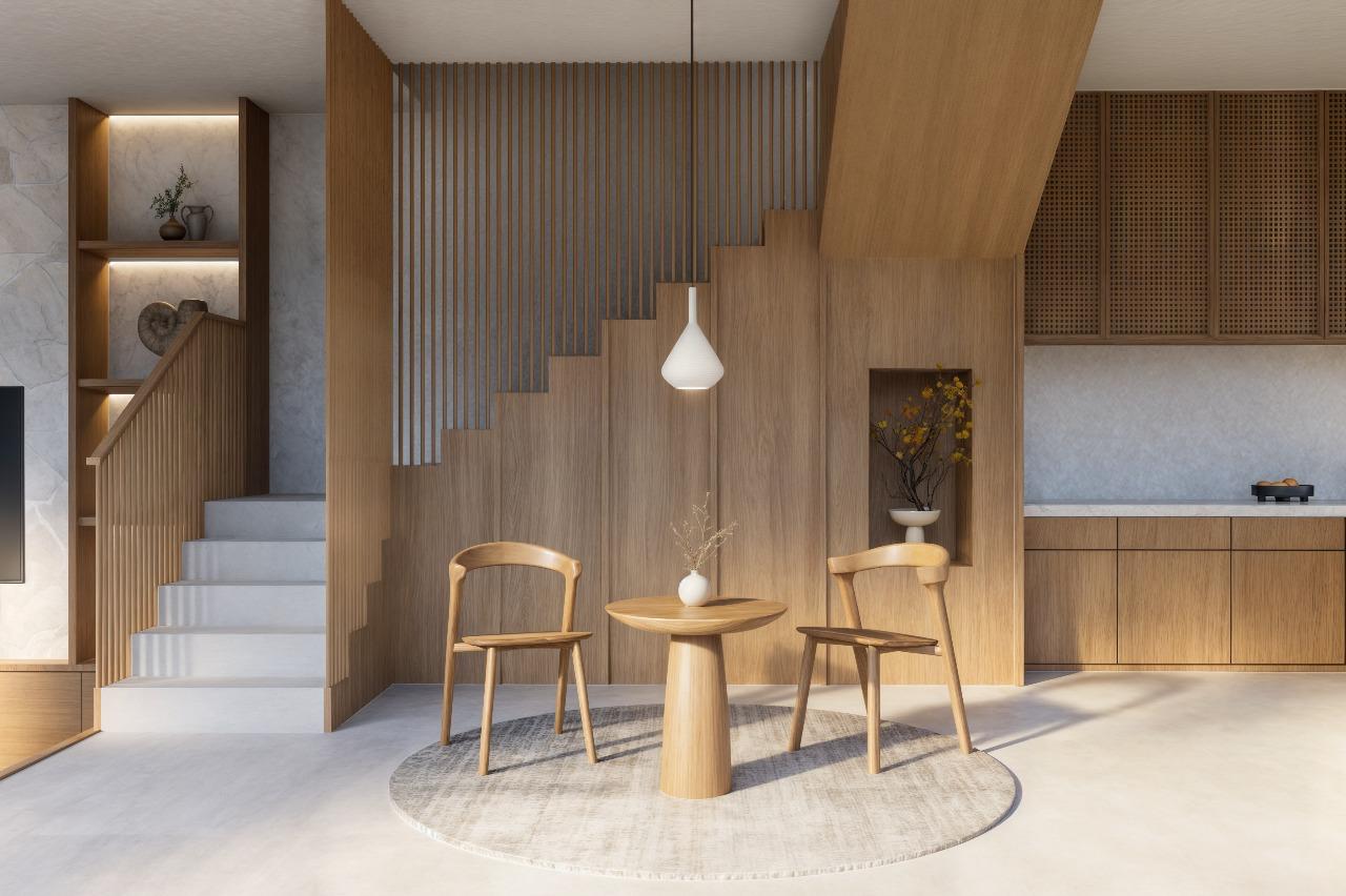 Step outside to your private pool, framed by a lounge area and a dining space on the terrace, ideal for sunset gatherings or intimate dinners under the stars. A garage ensures secure parking for your car and bikes, adding convenience to this luxurious retreat.