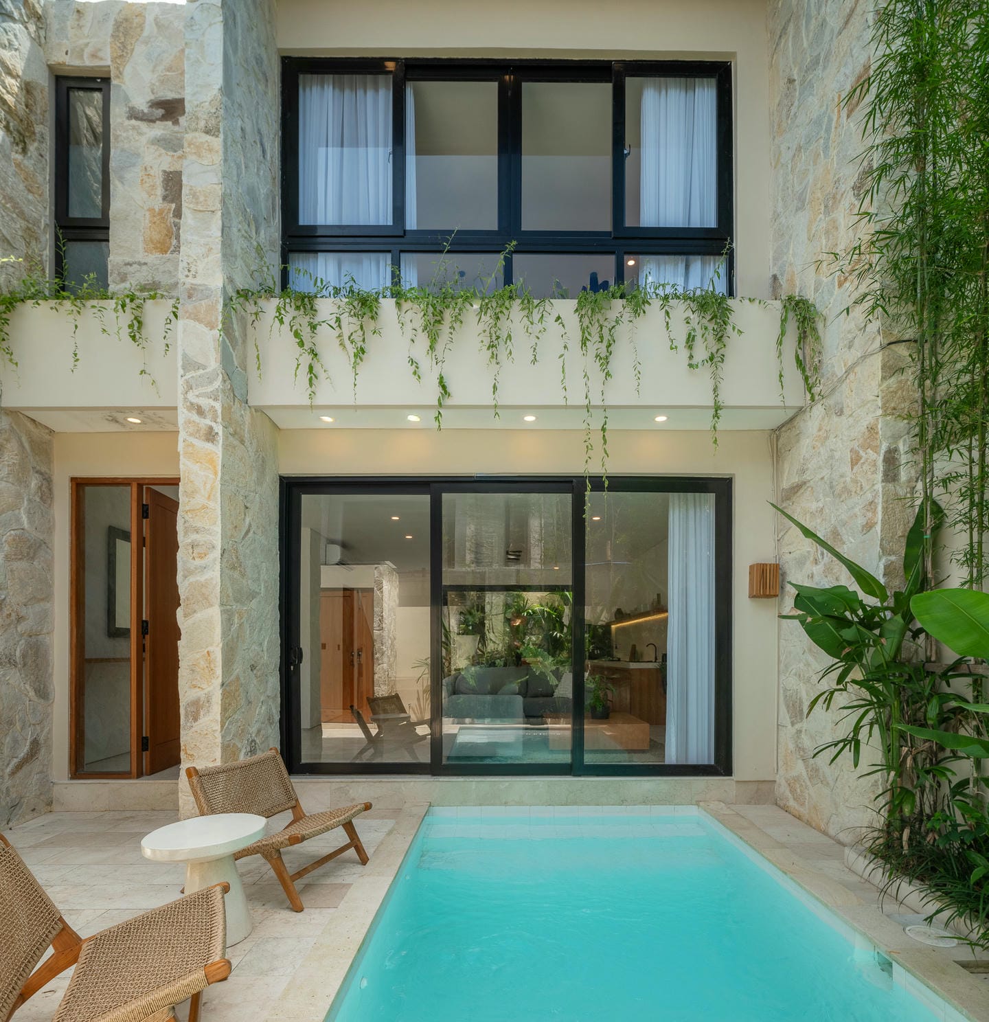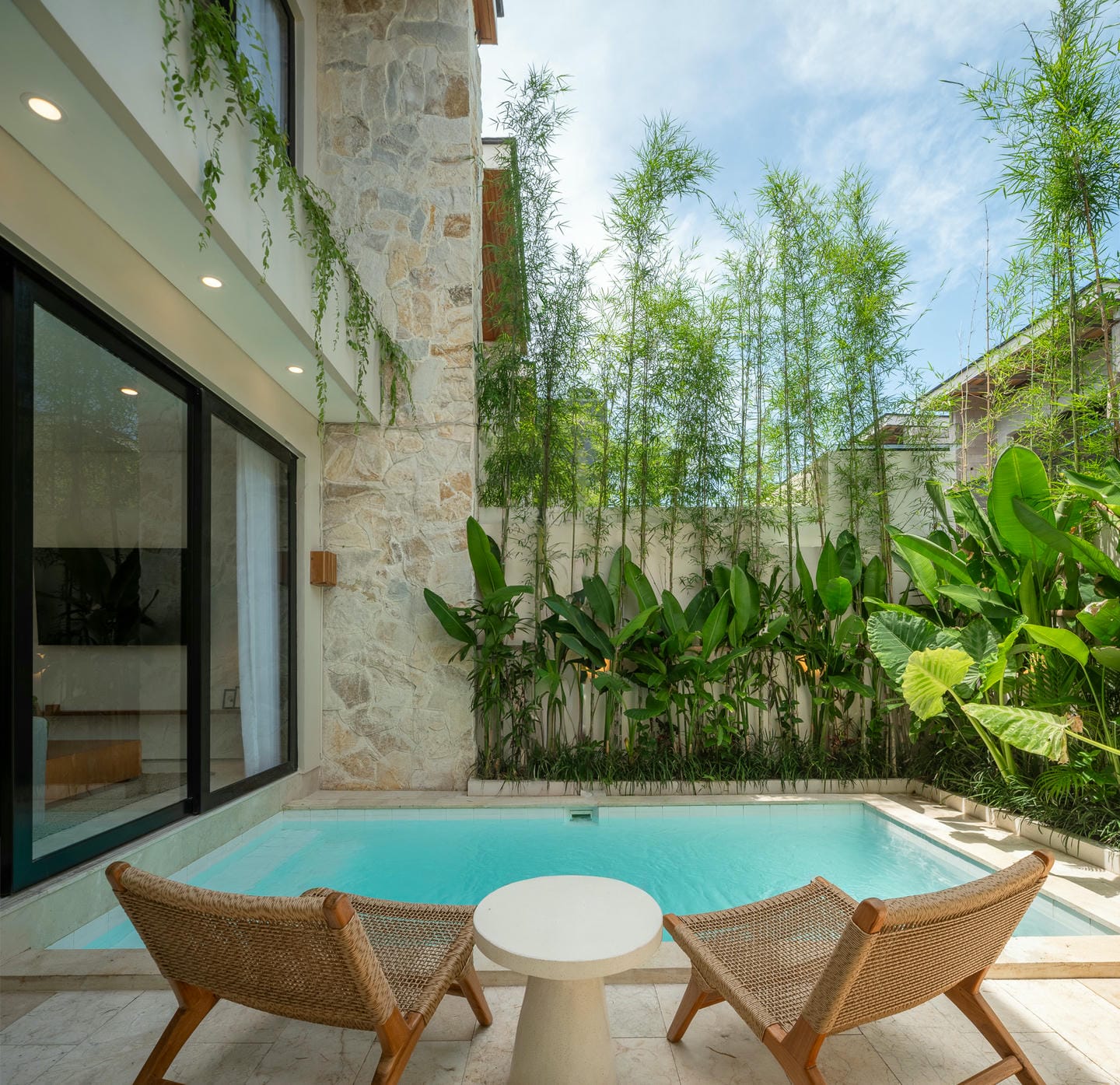 Step outside to your own private oasis, complete with a refreshing pool and a lush garden lounge area. Whether you prefer sunbathing or evening gatherings under the stars, this space is designed for relaxation and enjoyment.
