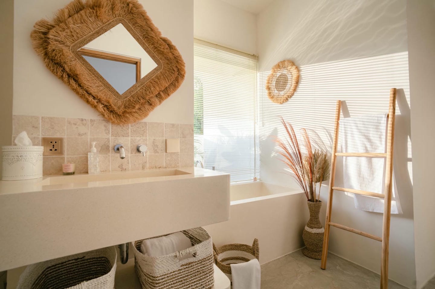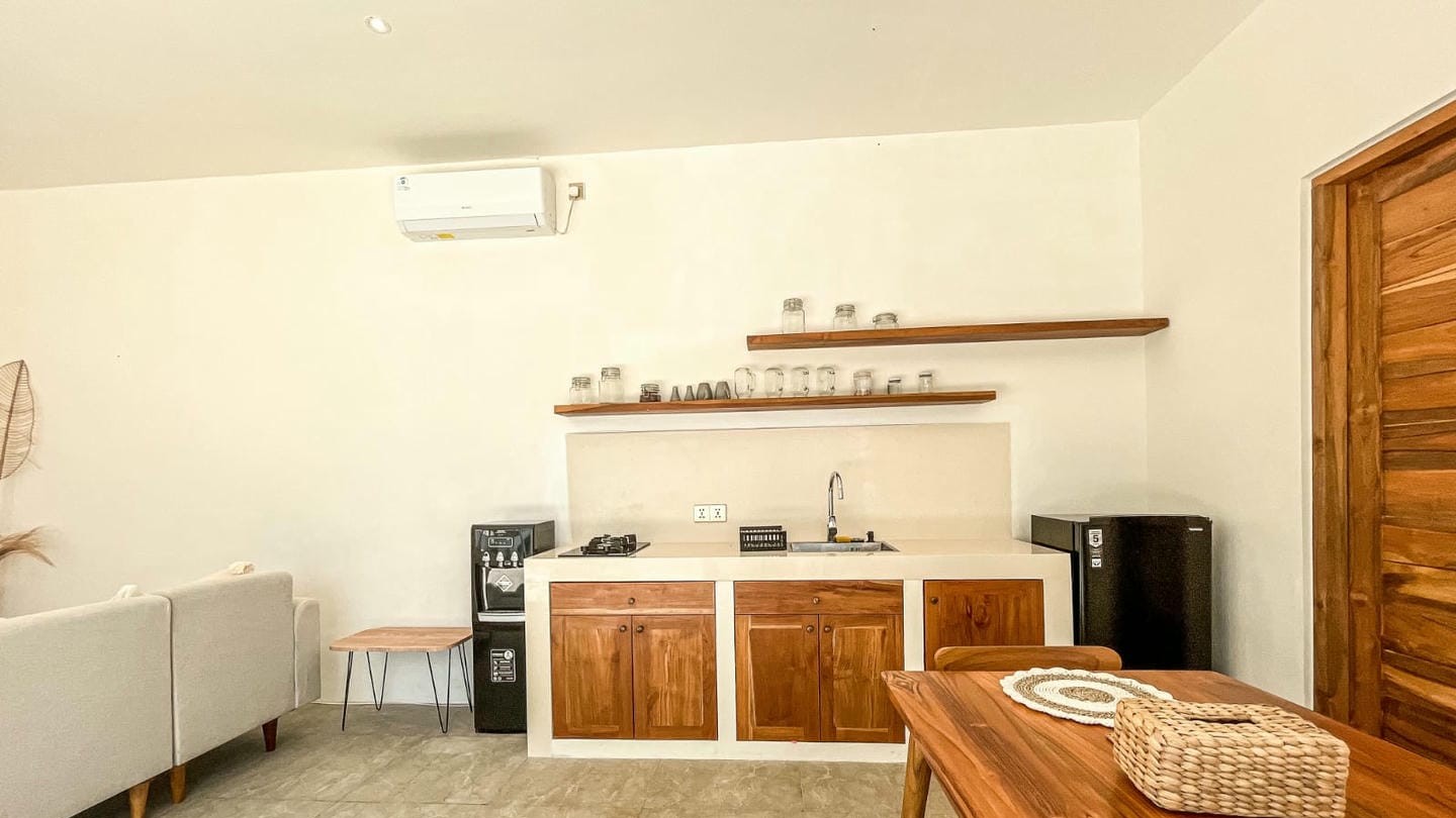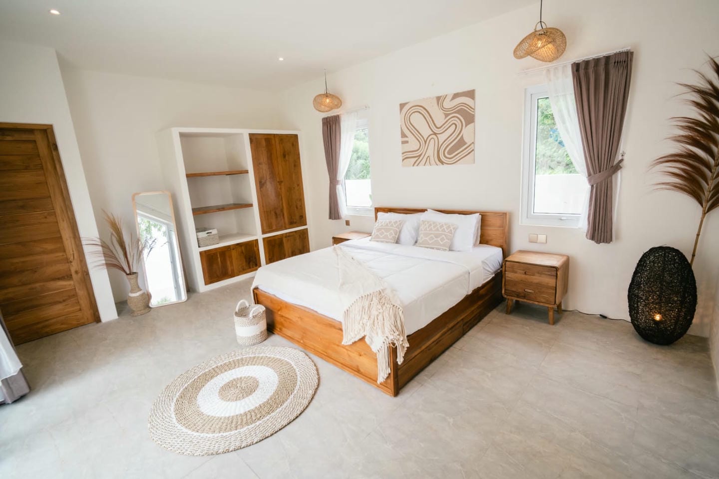 The villa features two well-appointed bedrooms, each with its own ensuite bathroom, designed to provide comfort and privacy. Fully furnished and thoughtfully styled, the interior combines clean lines, natural materials, and functional living spaces, creating a warm and inviting atmosphere.