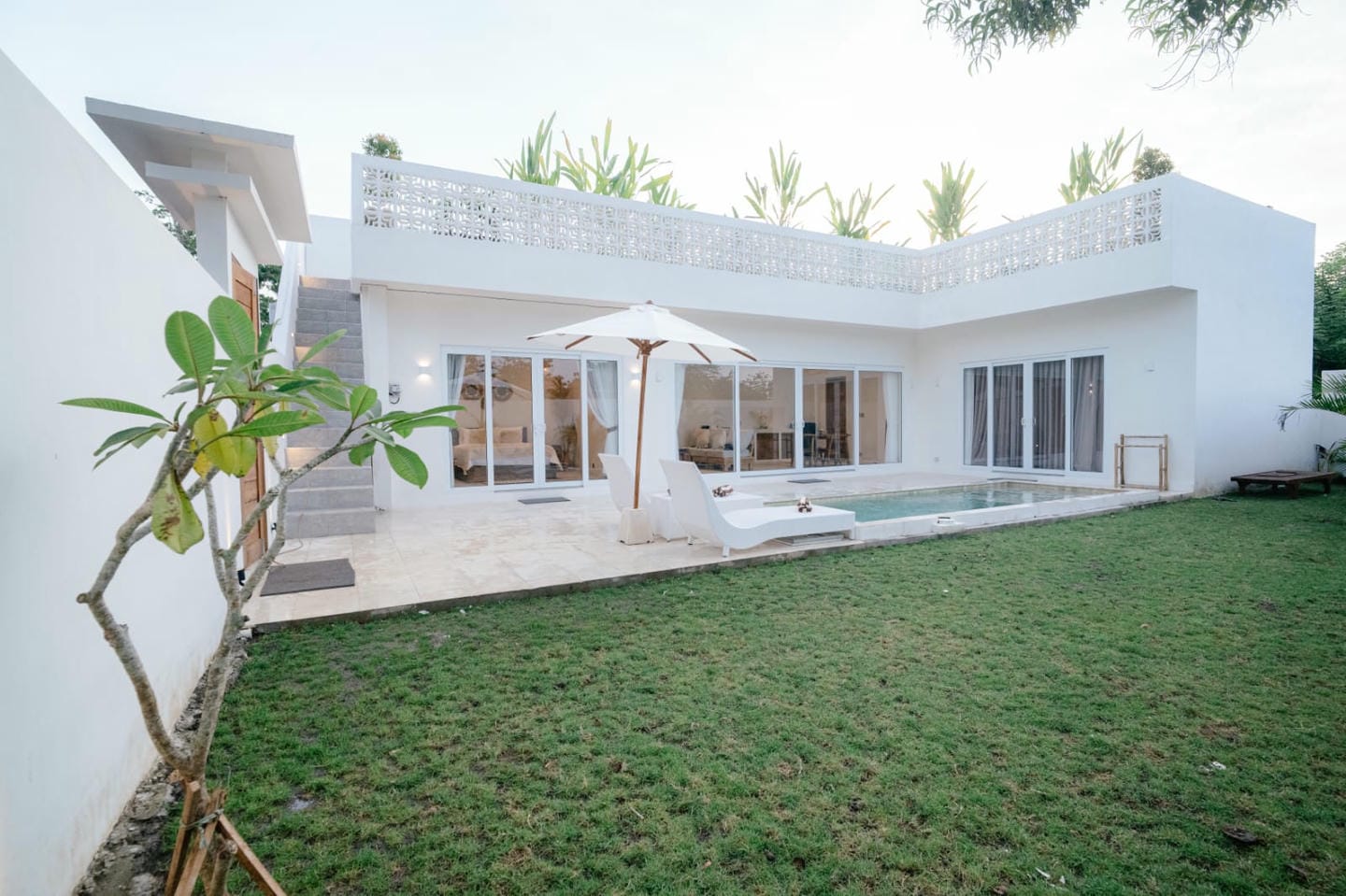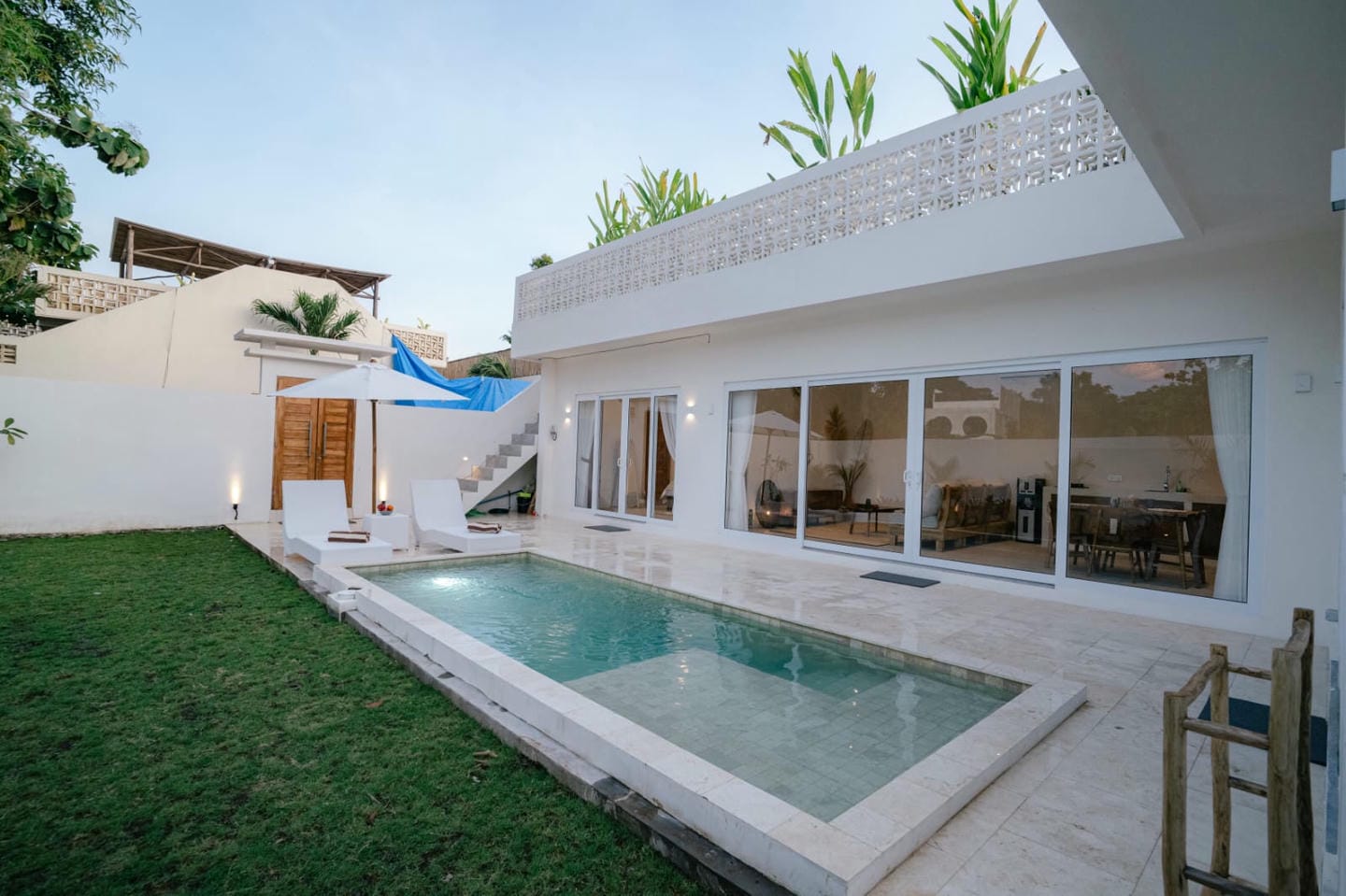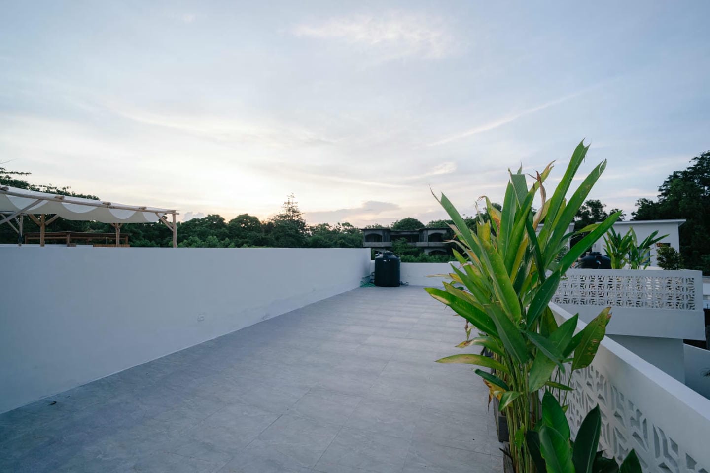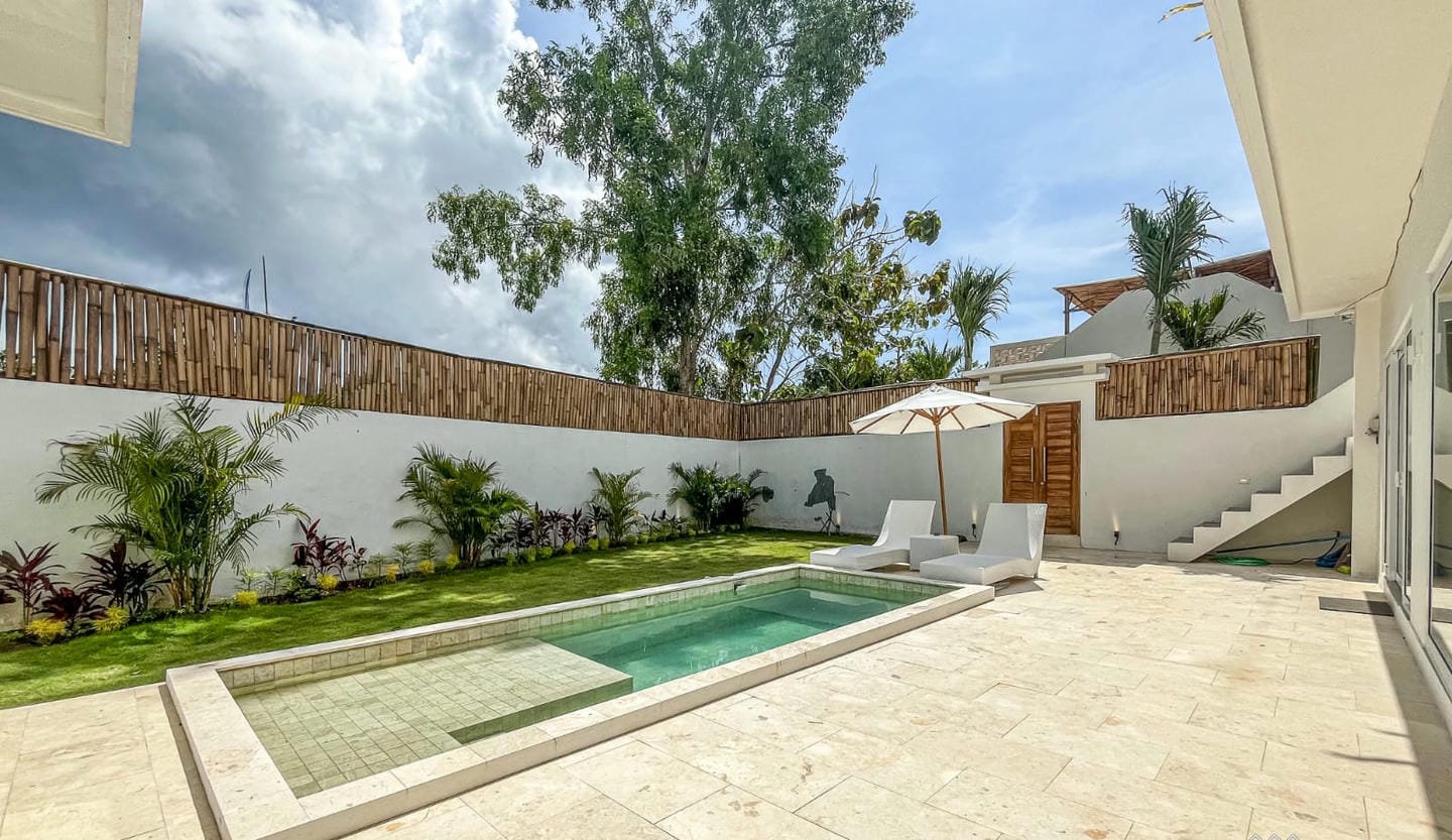 The outdoor spaces are designed for elevated tropical living, featuring a private swimming pool and a rooftop patio with open views. The rooftop area is ideal for relaxing, entertaining, or enjoying sunsets.