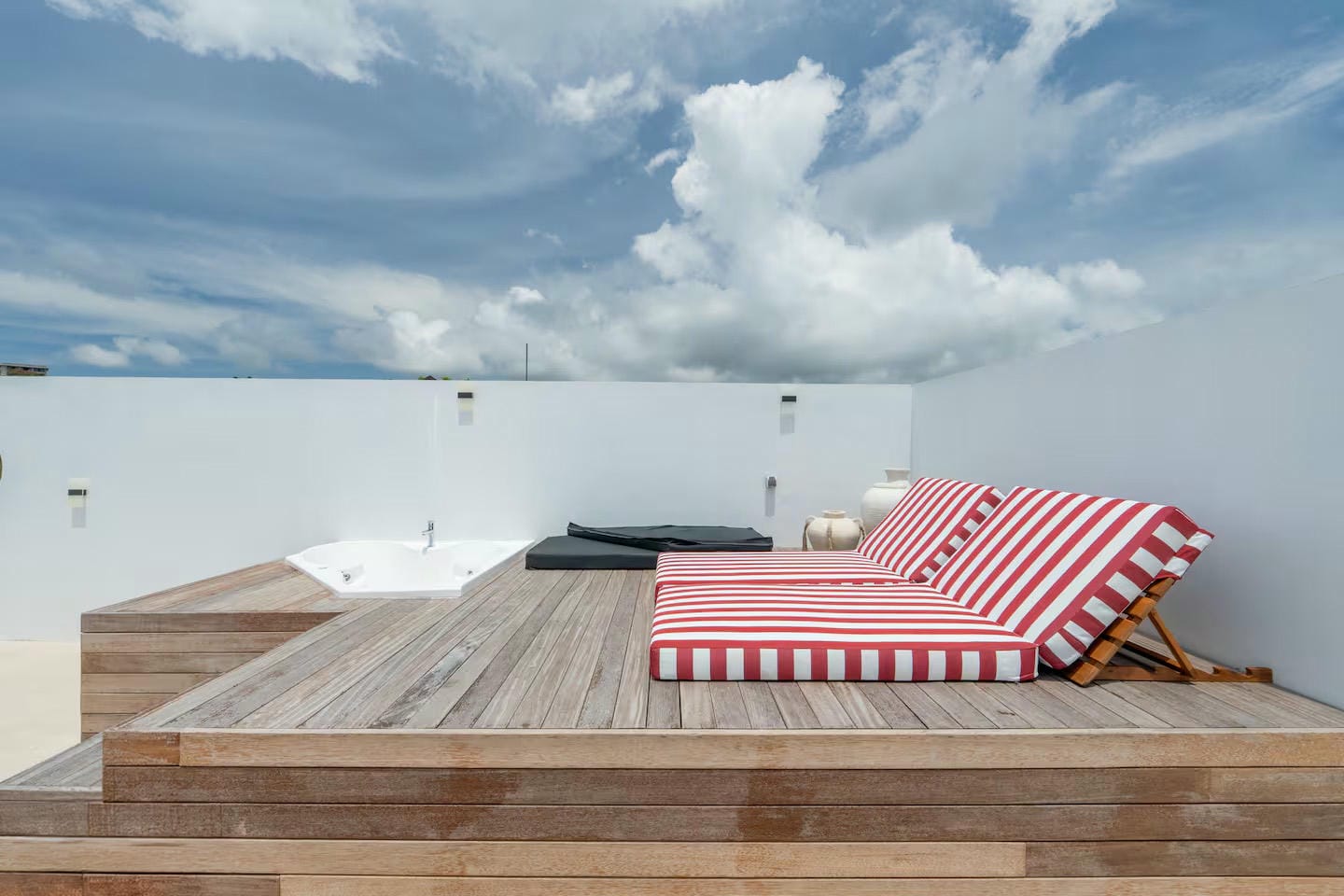 Rooftop jacuzzi with pergola, perfect for sunset moments and relaxation